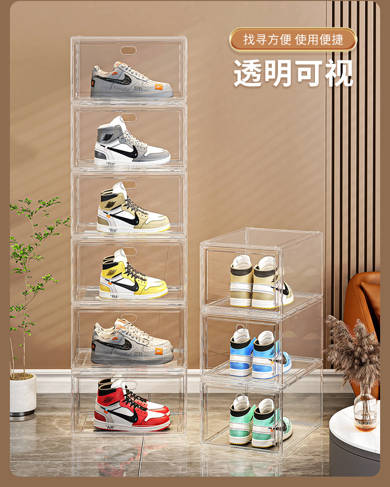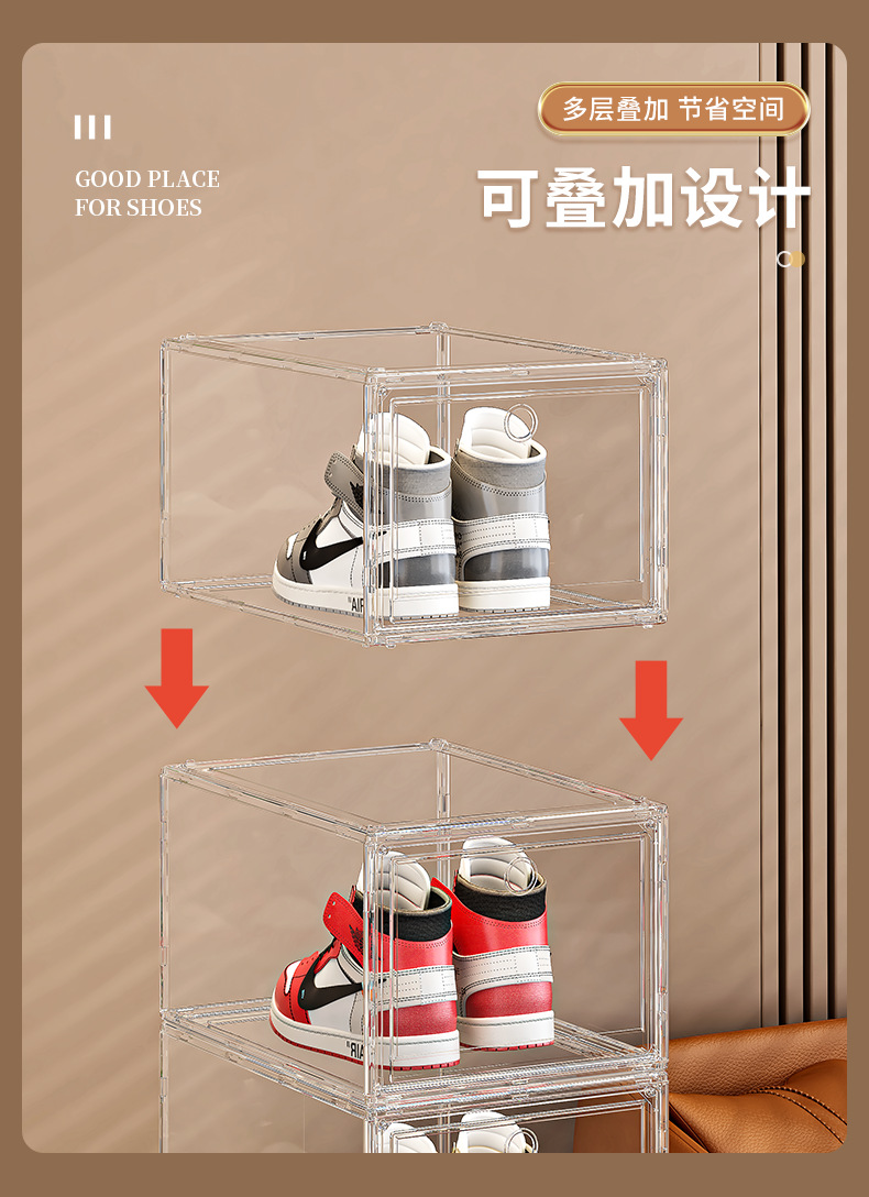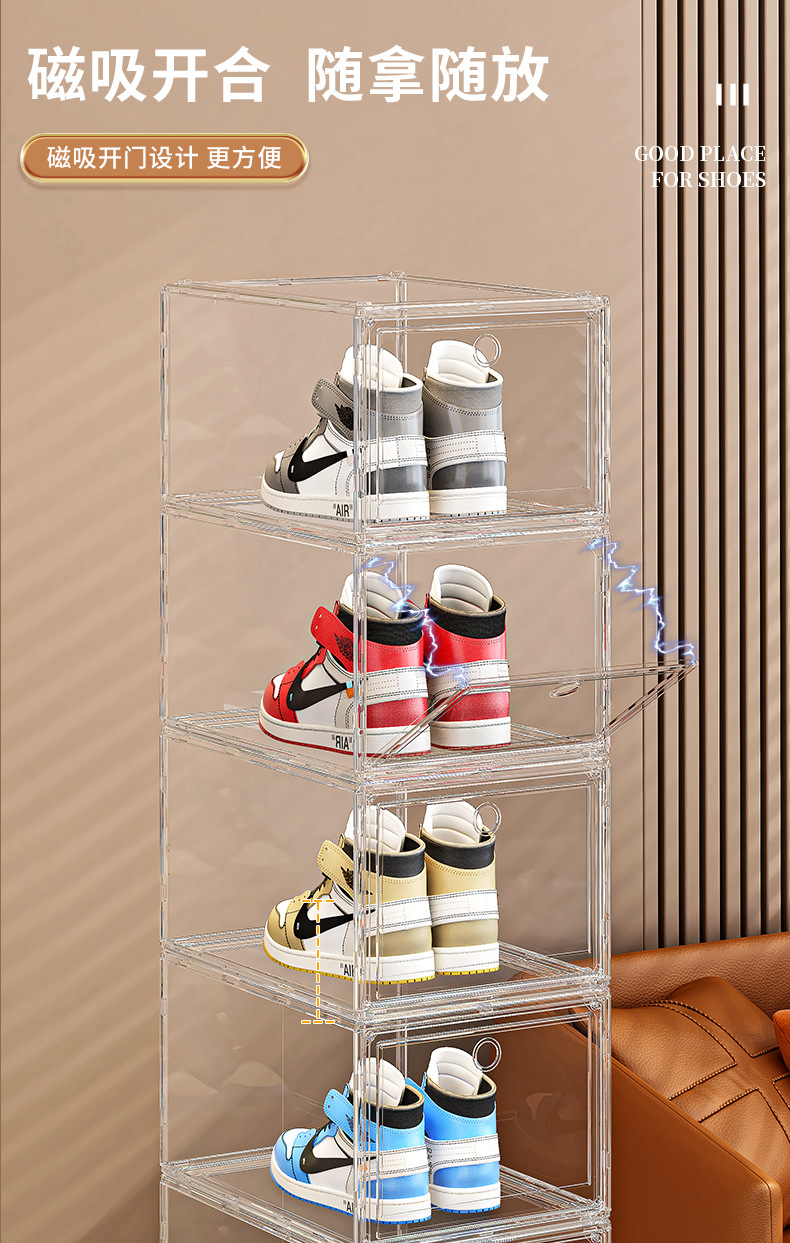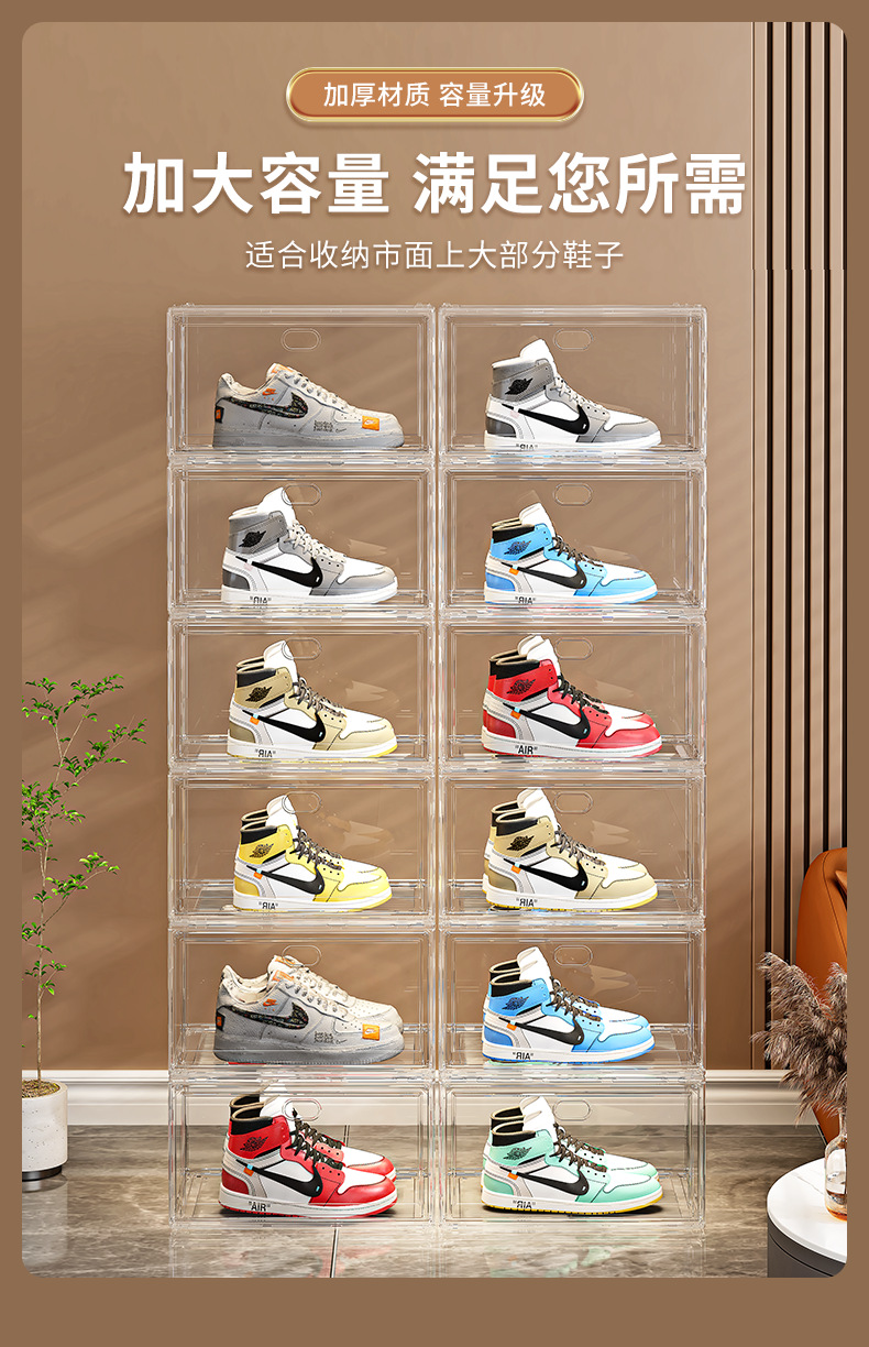 鞋盒硬盒磁吸正侧开收纳透明亚克力aj包包手办收纳盒加厚大号鞋柜