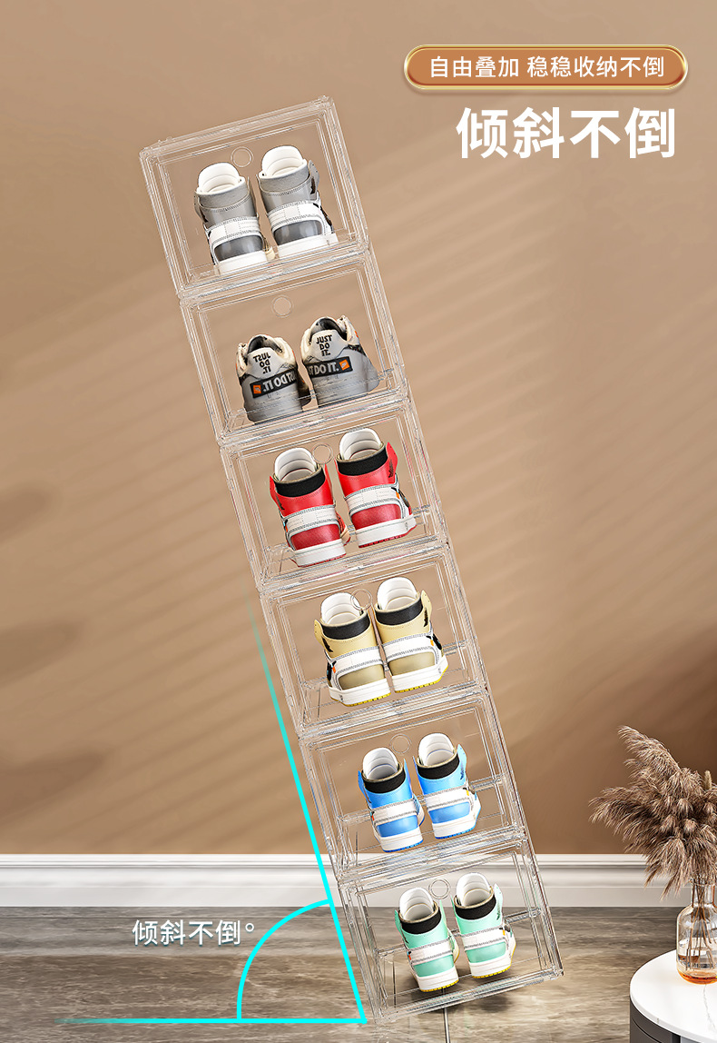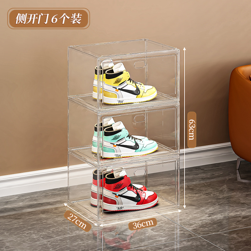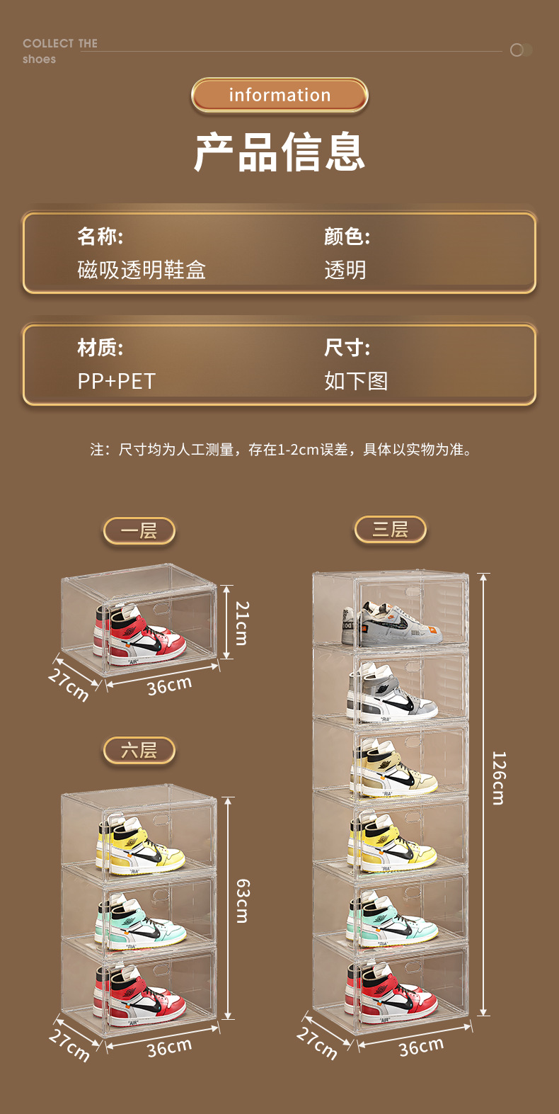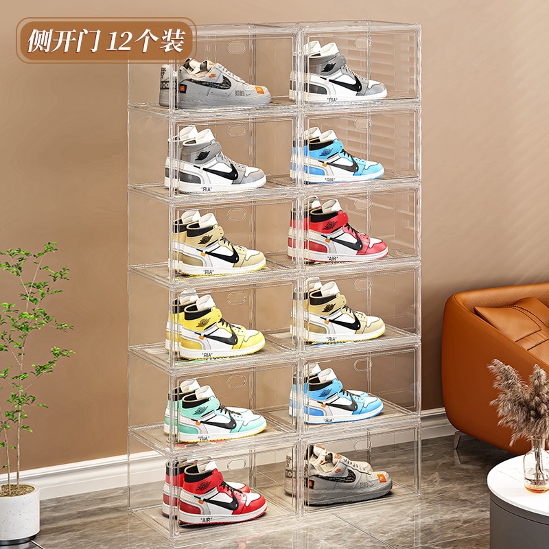 鞋盒硬盒磁吸正侧开收纳透明亚克力aj包包手办收纳盒加厚大号鞋柜