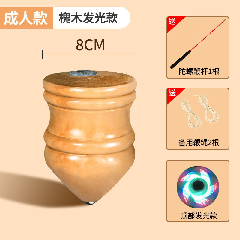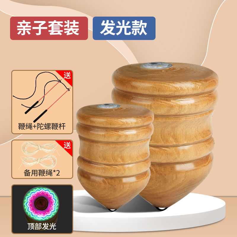 木陀螺木制健身实木发光陀螺玩具健身老式成人大号打陀螺专用鞭绳