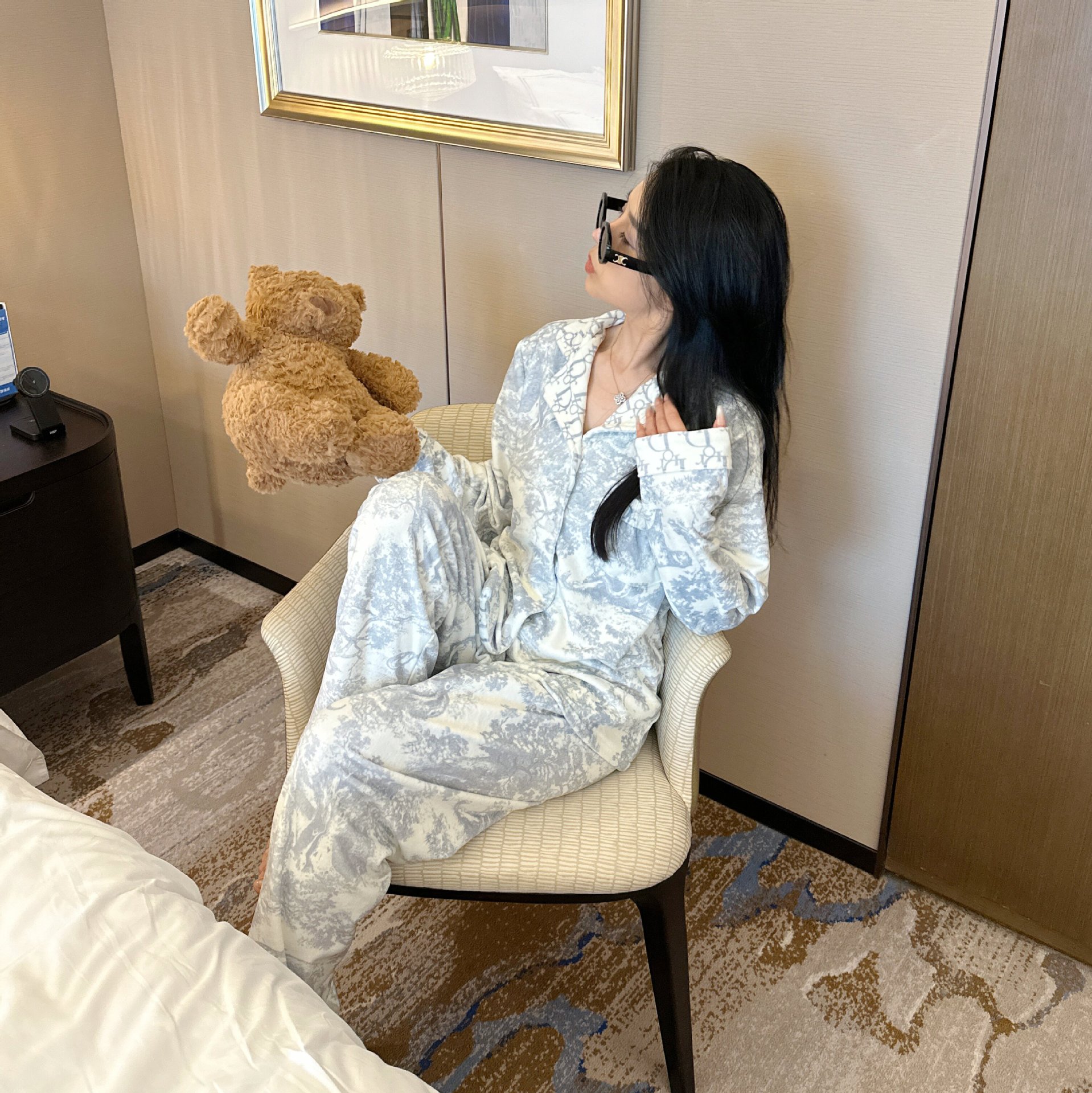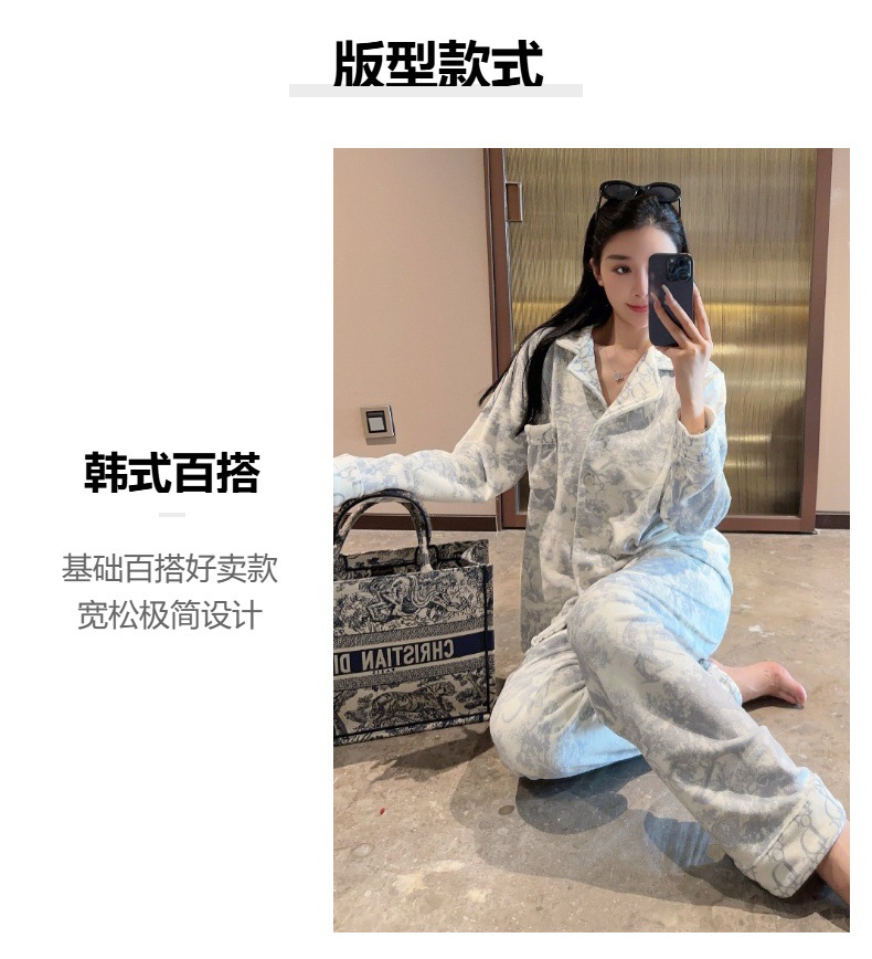 【水韵】秋冬新款海岛绒长袖长裤轻奢高级感睡衣家居服