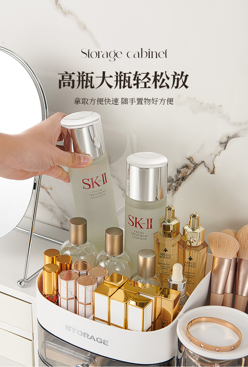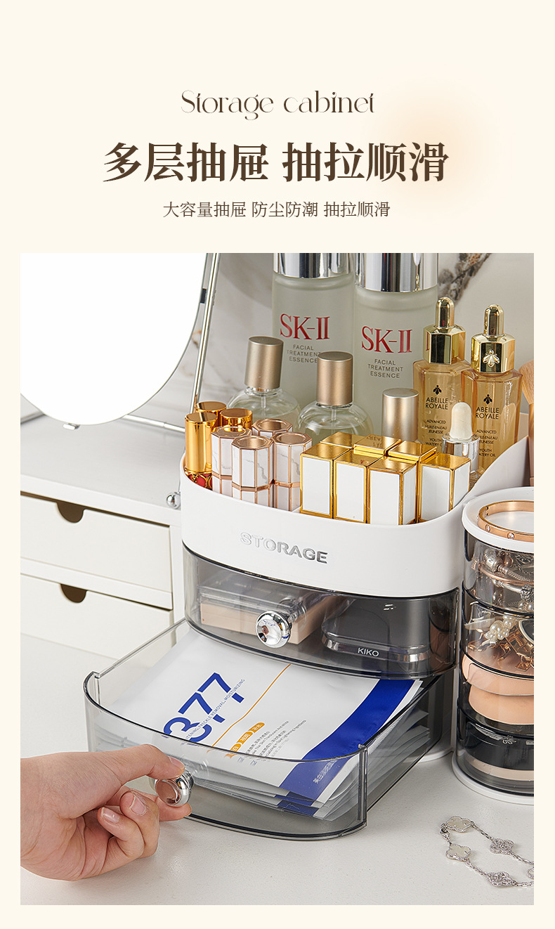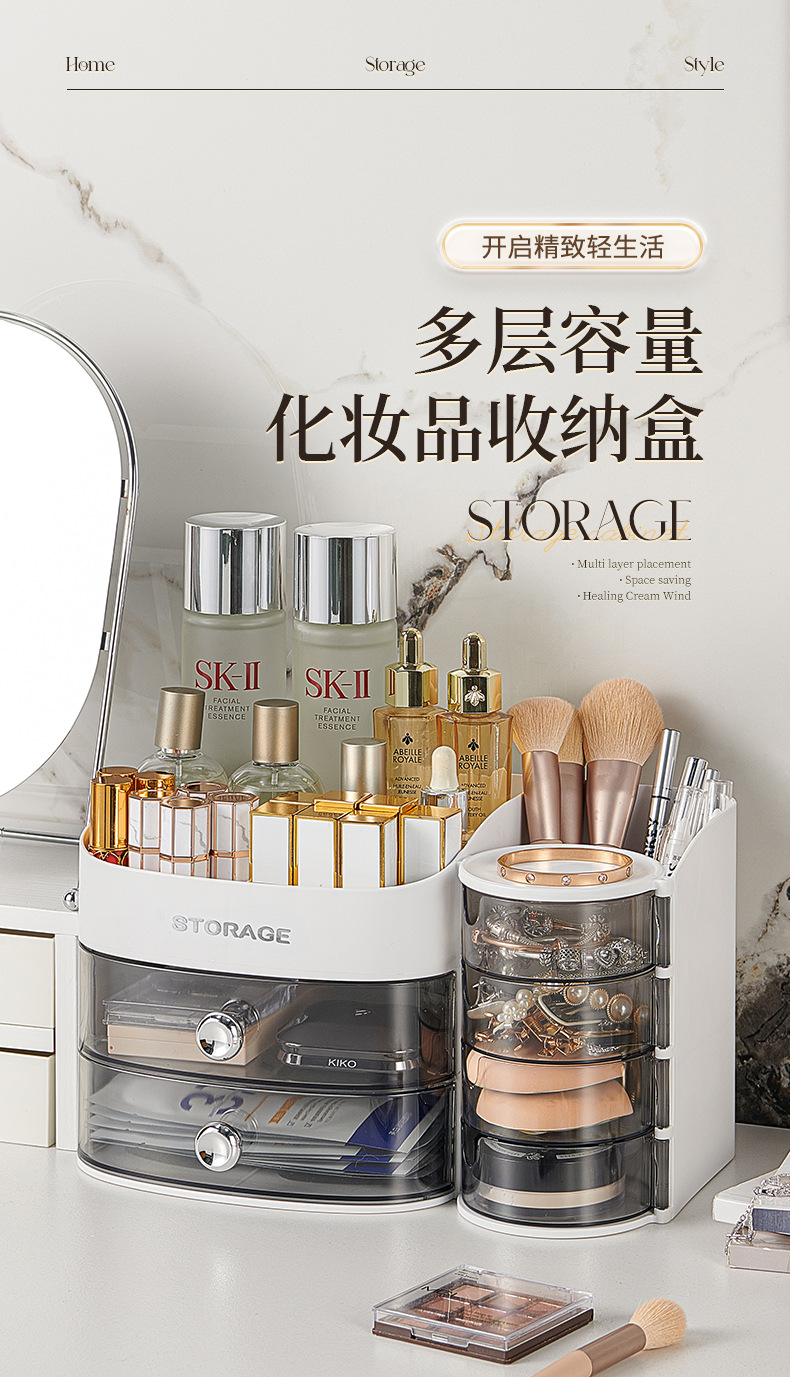 分格收纳大号化妆盒子化妆品收纳架桌上梳妆台首饰盒置物架带抽屉