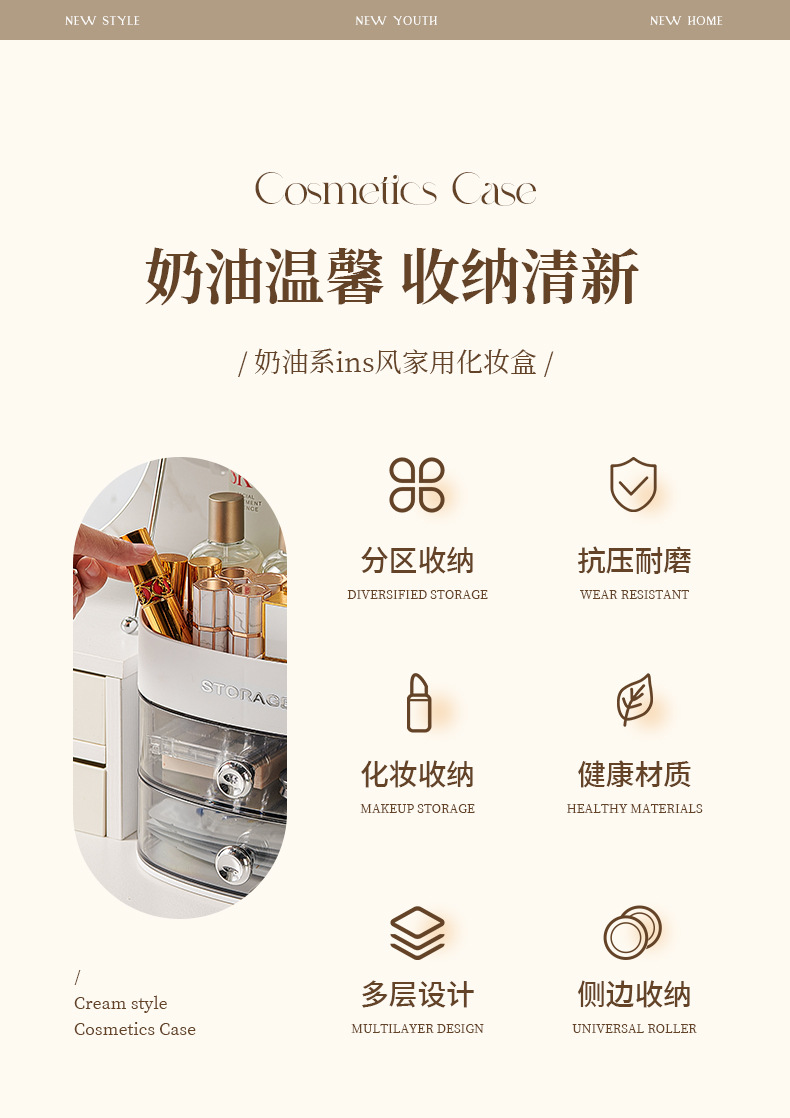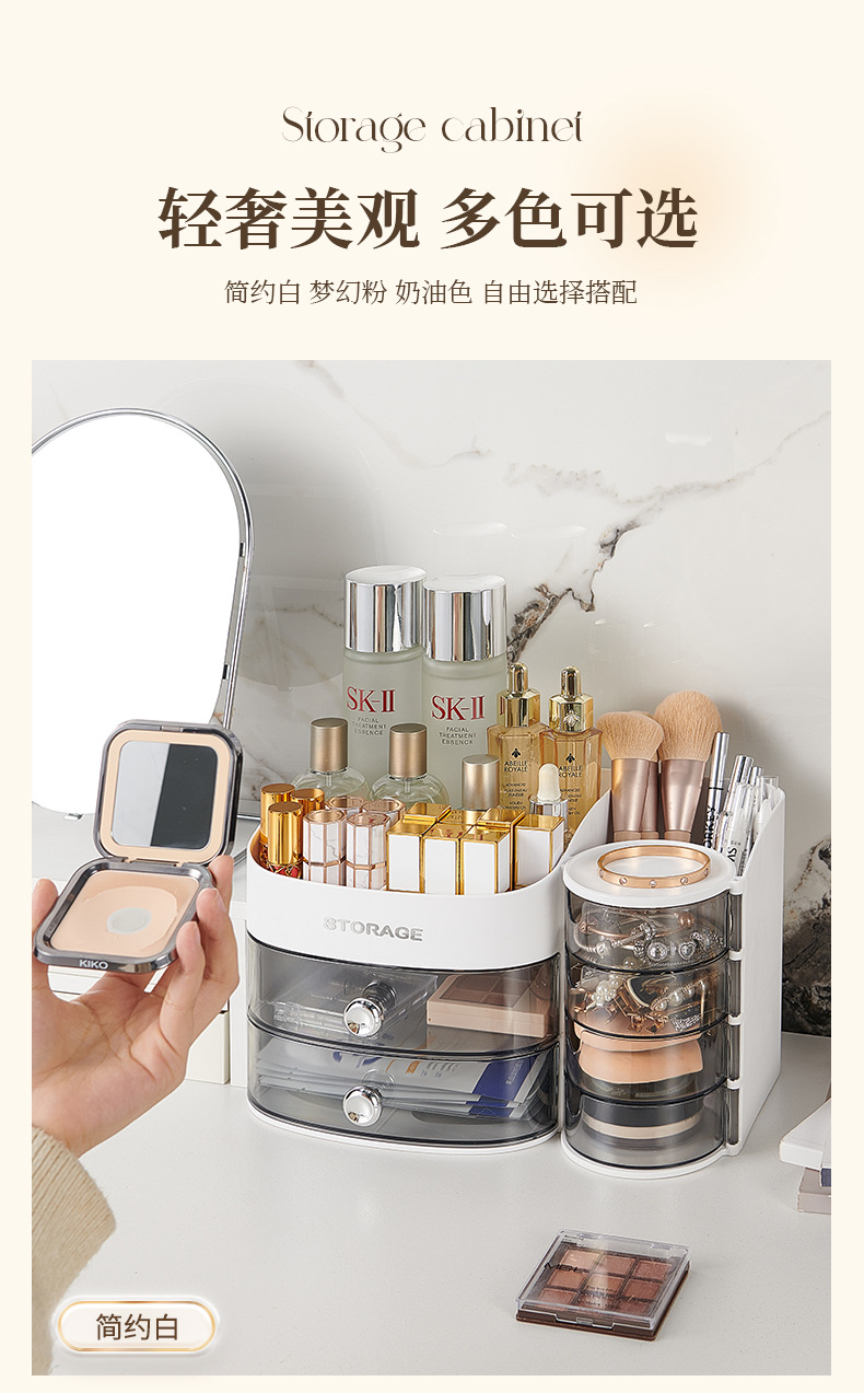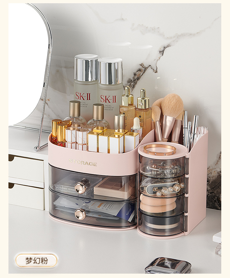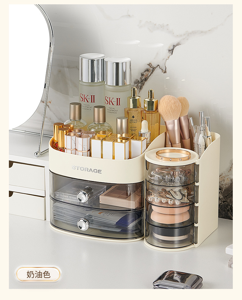 分格收纳大号化妆盒子化妆品收纳架桌上梳妆台首饰盒置物架带抽屉