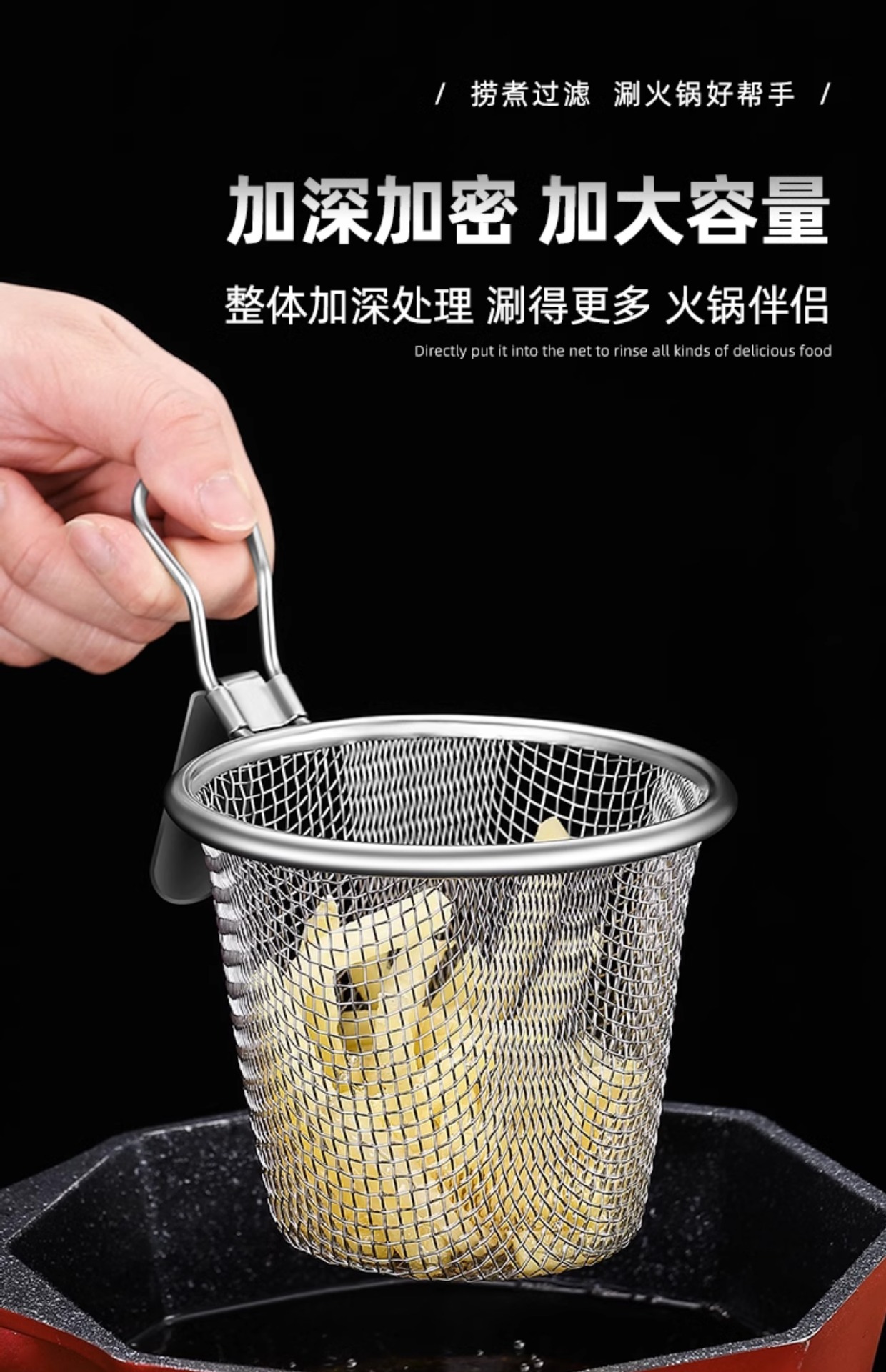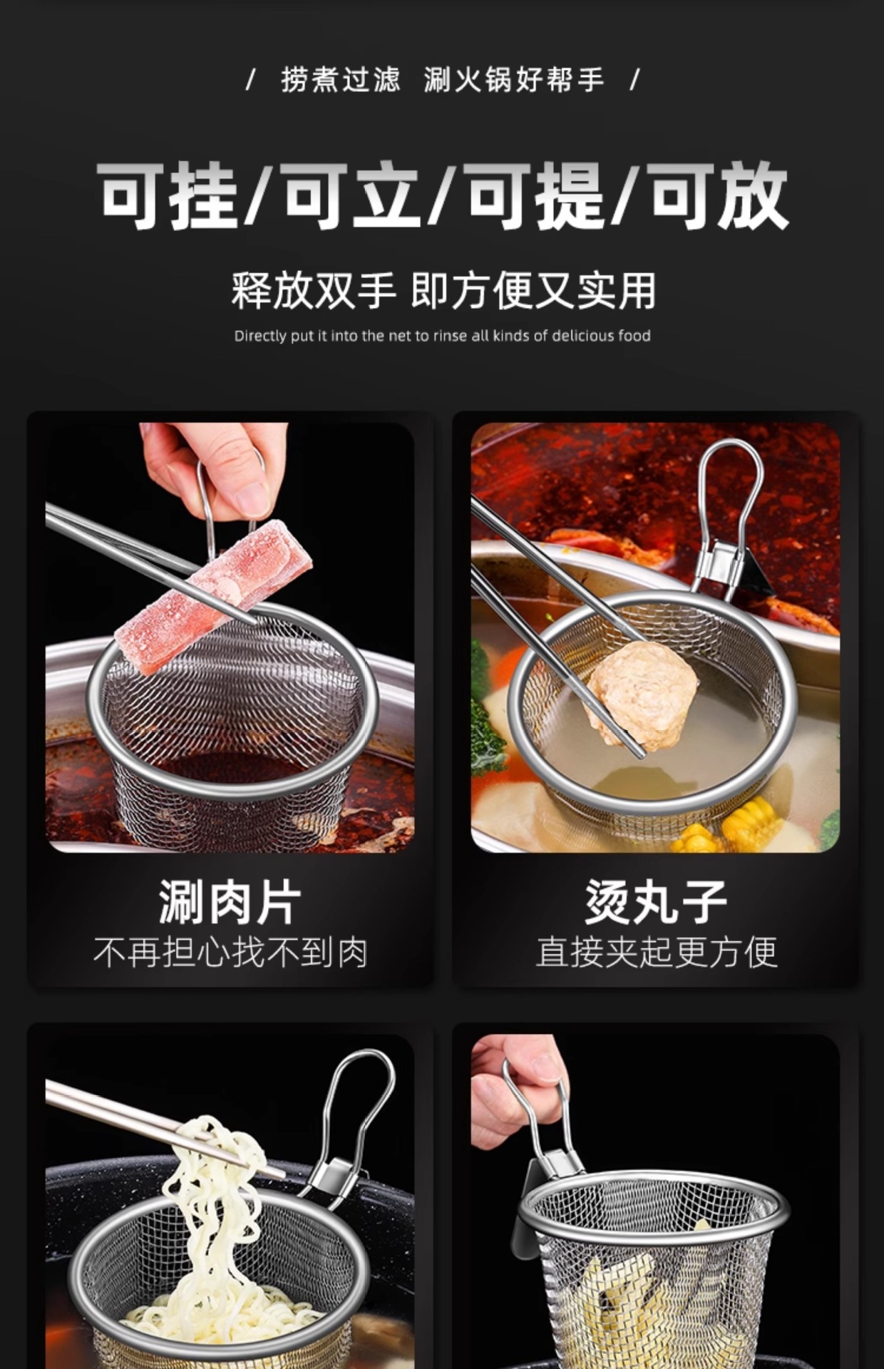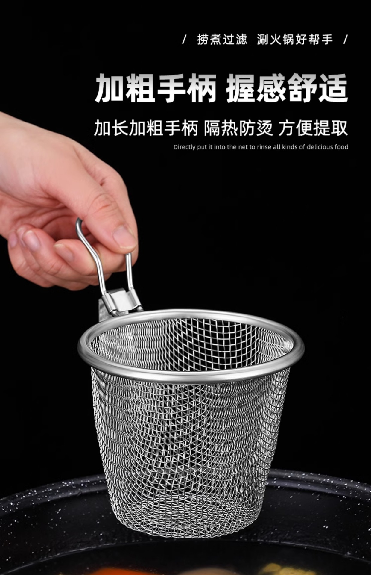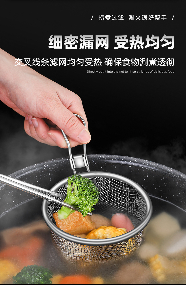 火锅专用漏勺细网家用带挂钩粉篱捞面勺漏网油炸滤网篮不锈钢漏筐