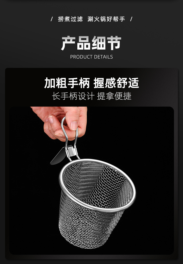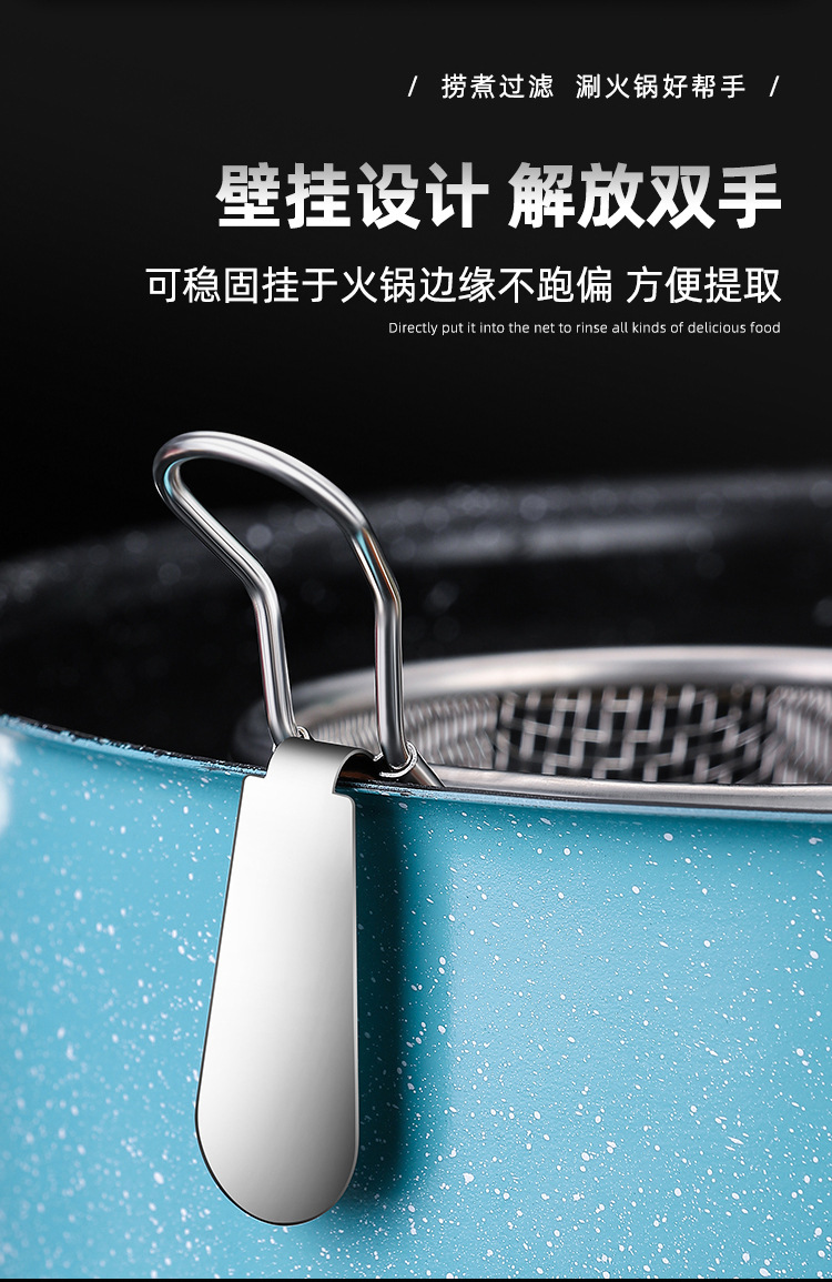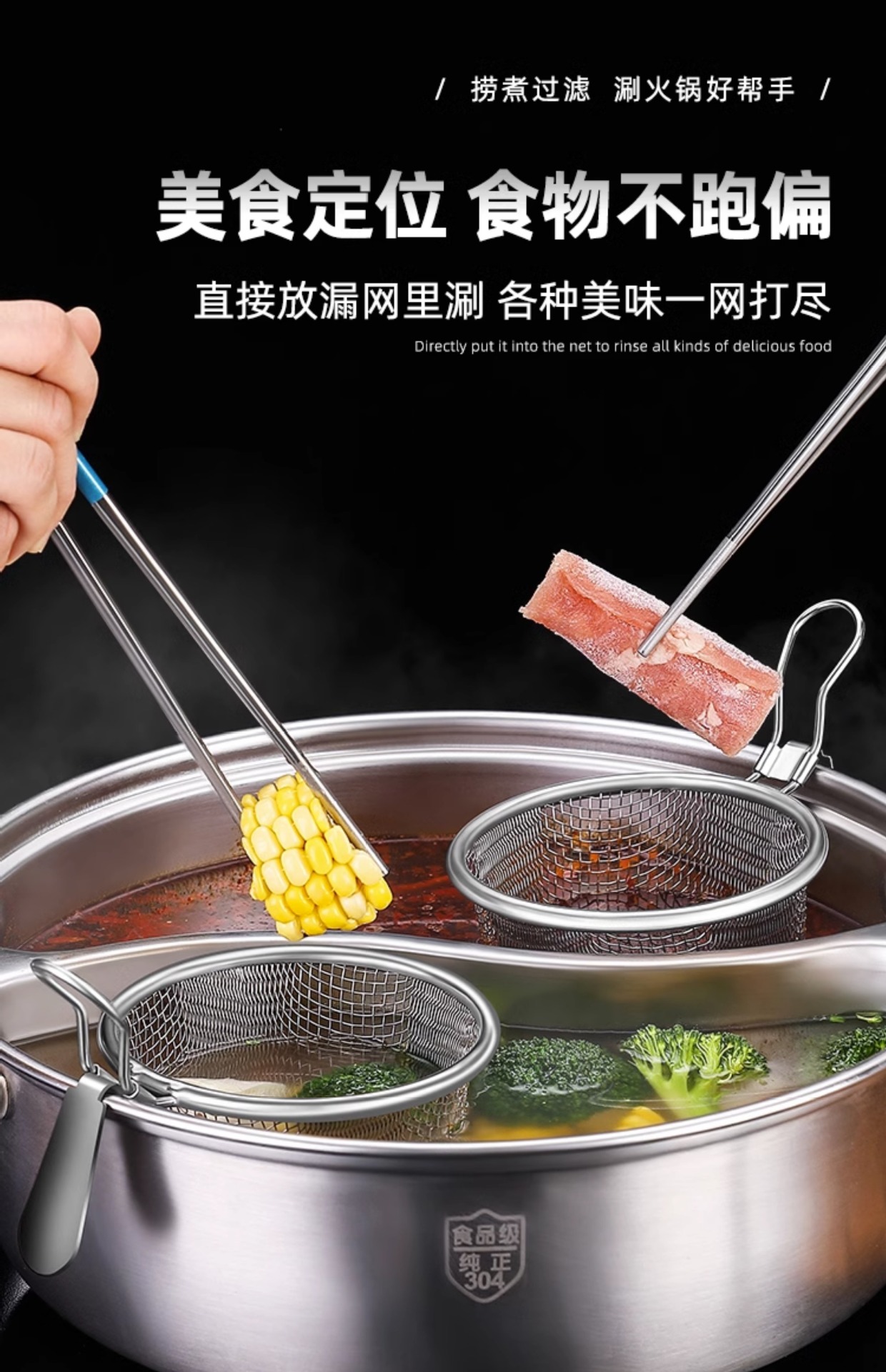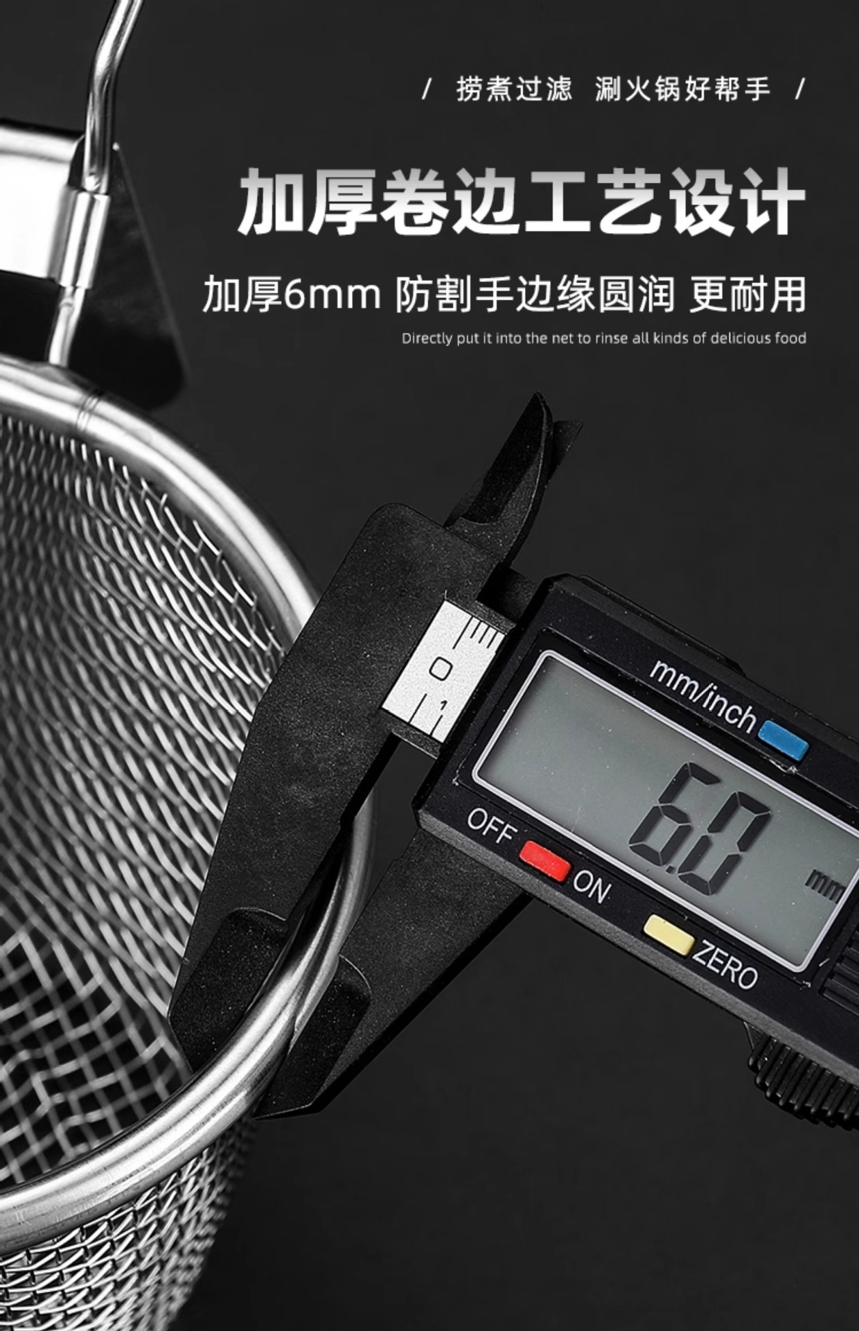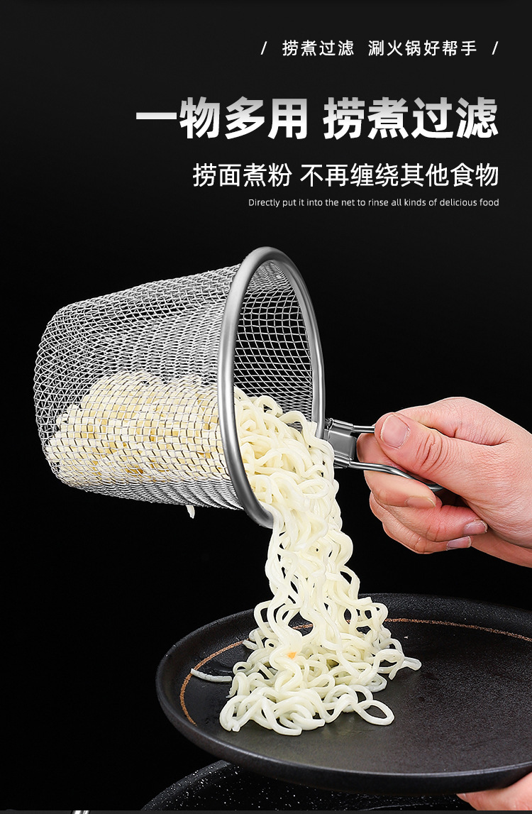 火锅专用漏勺细网家用带挂钩粉篱捞面勺漏网油炸滤网篮不锈钢漏筐