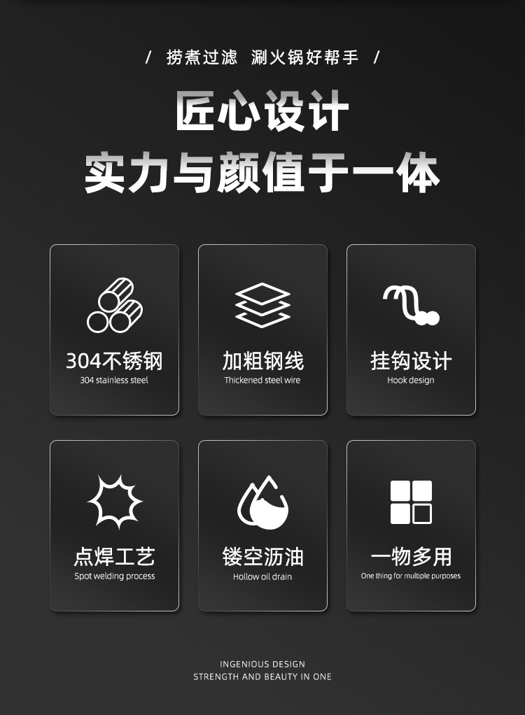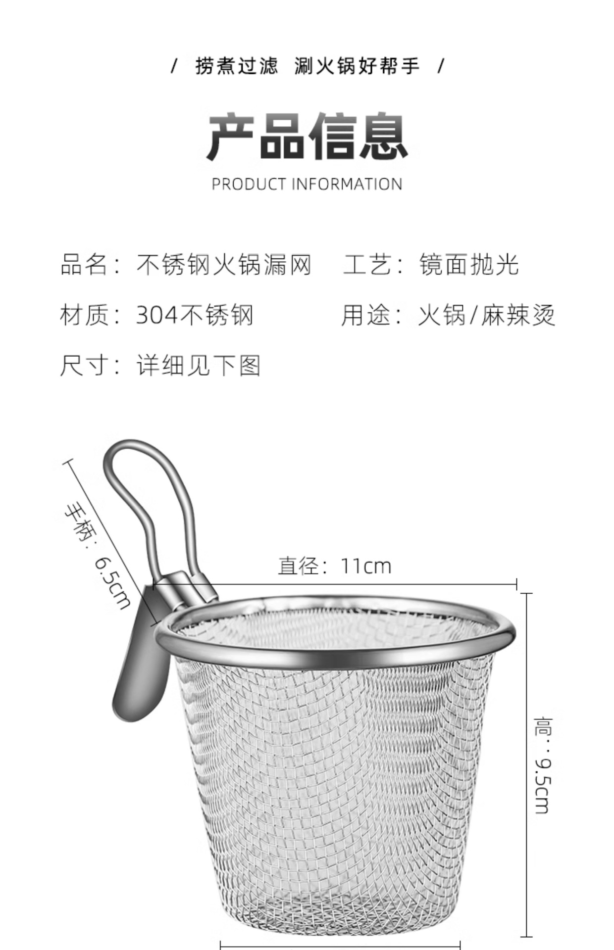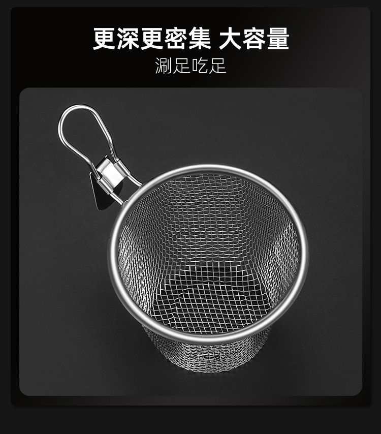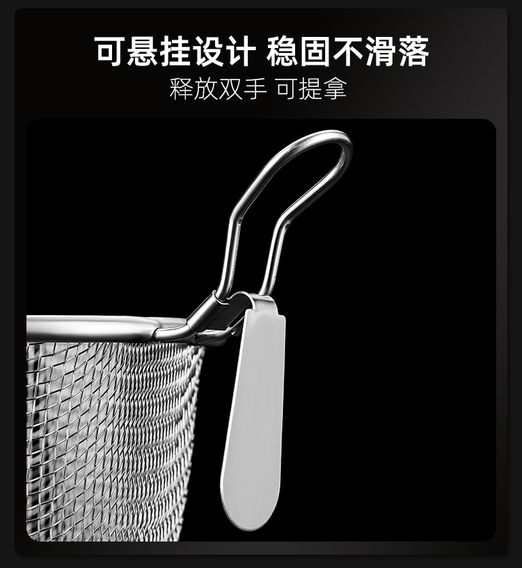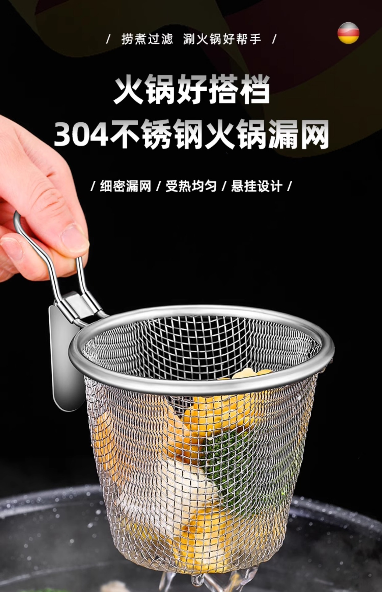 火锅专用漏勺细网家用带挂钩粉篱捞面勺漏网油炸滤网篮不锈钢漏筐