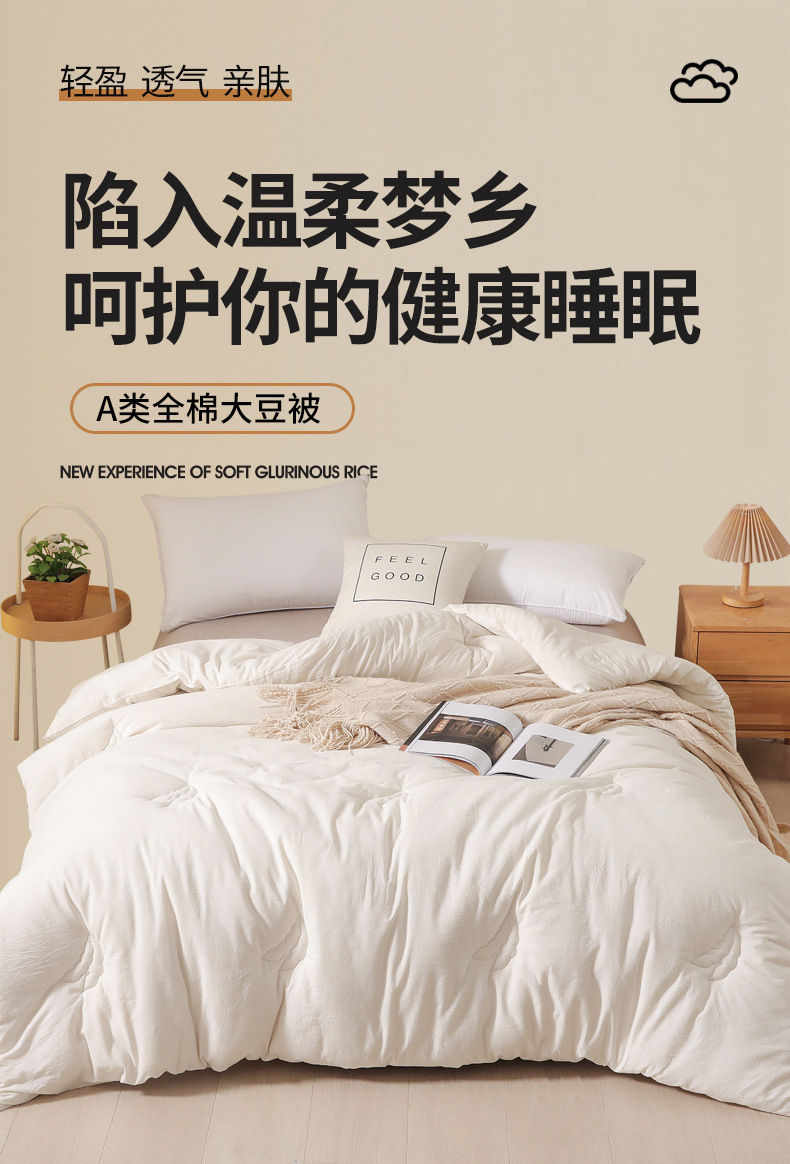 A类母婴全棉大豆被30%蛋白改性聚已烯醇纤维被芯冬季保暖子母被子