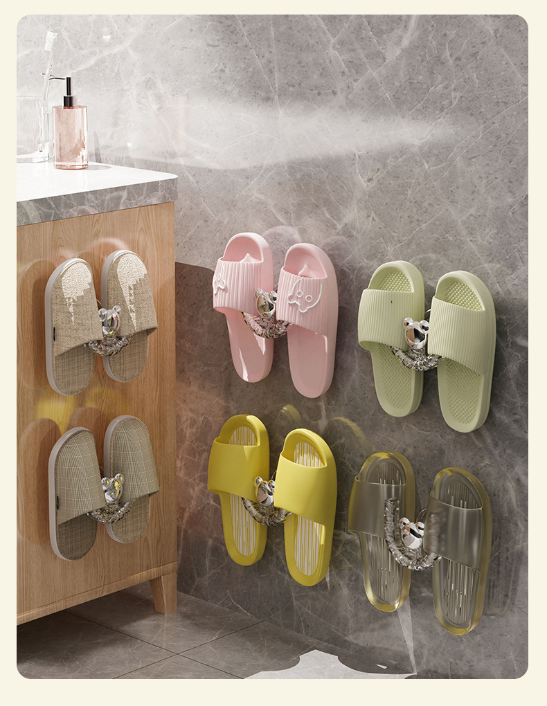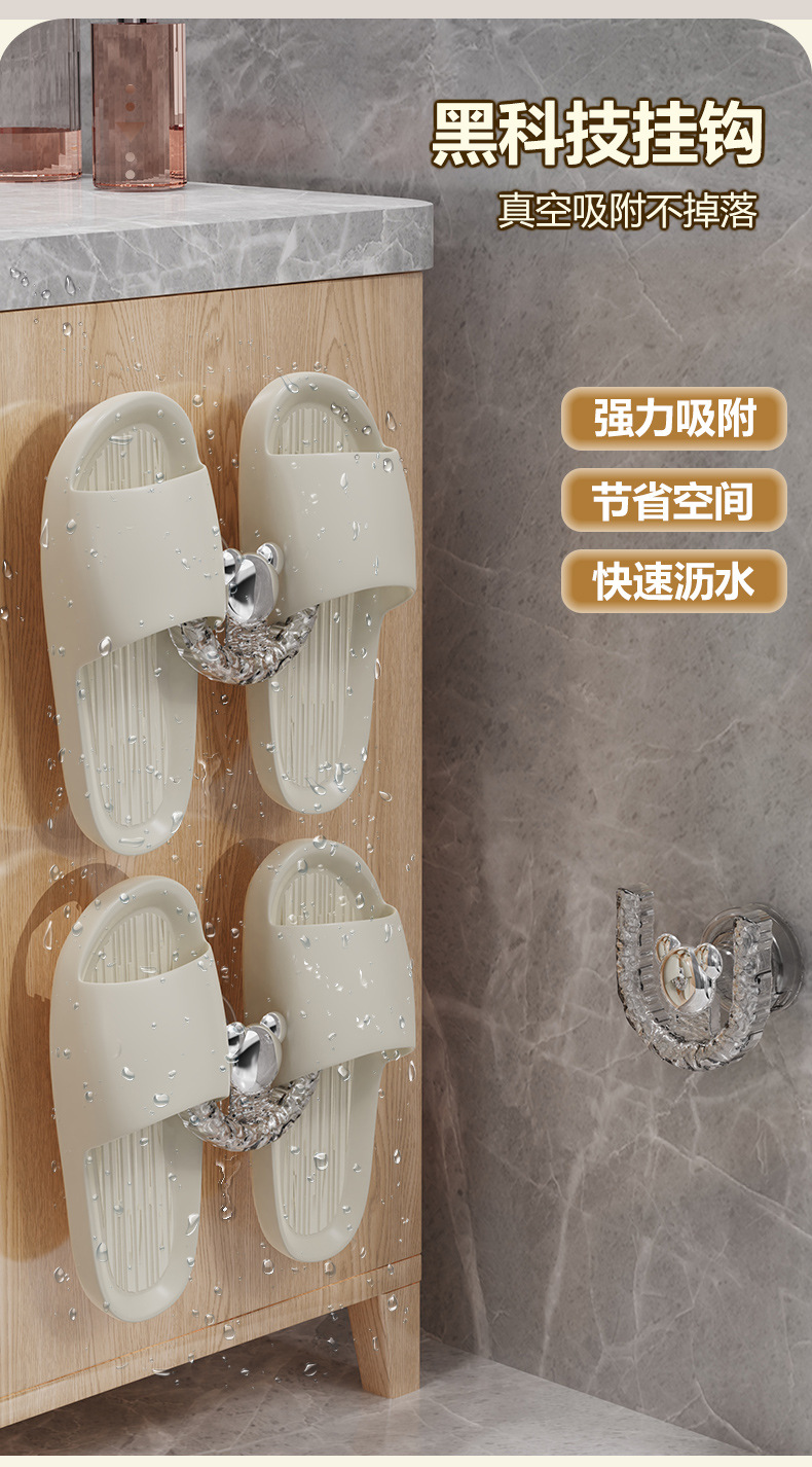 居家鞋子收纳神器吸盘鞋架浴室拖鞋架水波纹免打孔房间收纳架