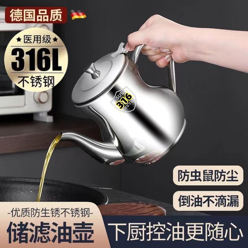 德国不挂油不锈钢316油壶大容量滤油储油家用厨房欧式油罐壶