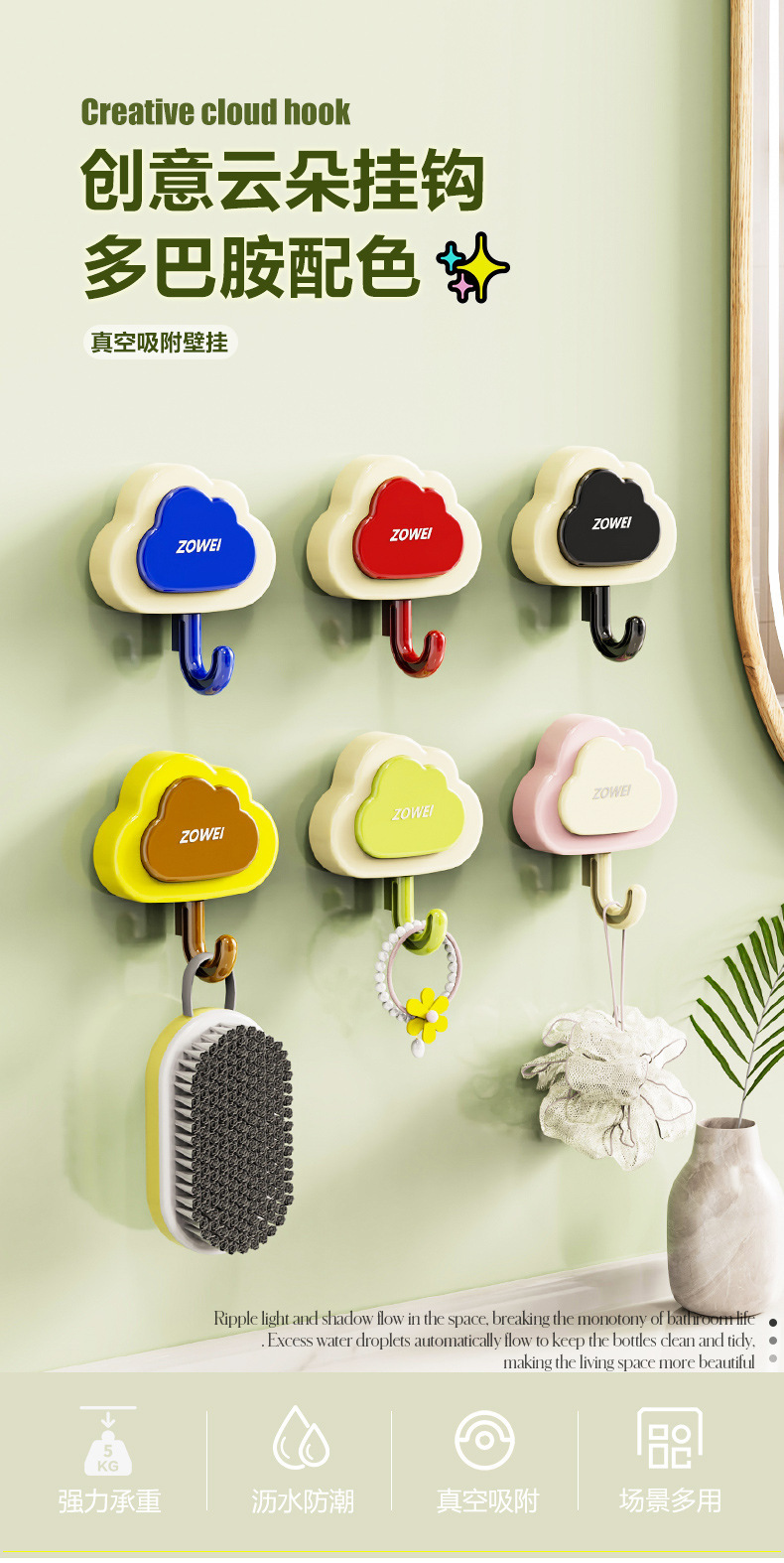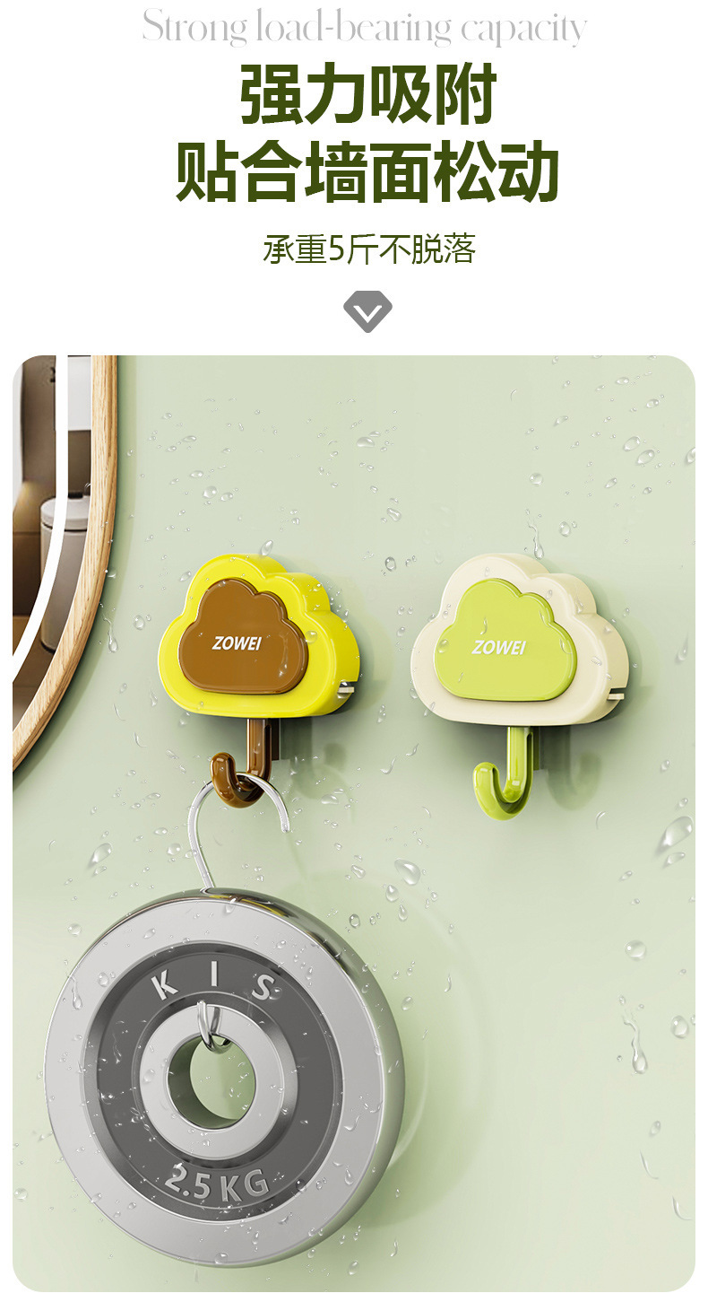 新款按压式墙壁卫生间厨房毛巾粘钩吸盘挂钩免打孔浴室痕挂钩