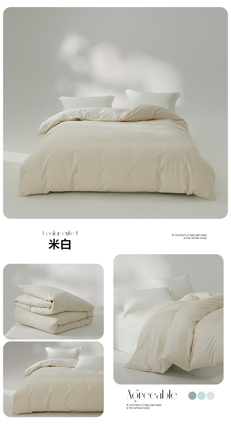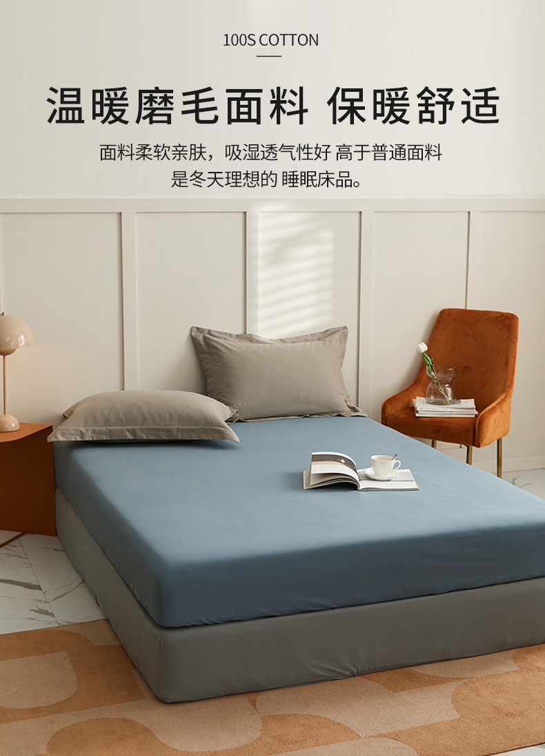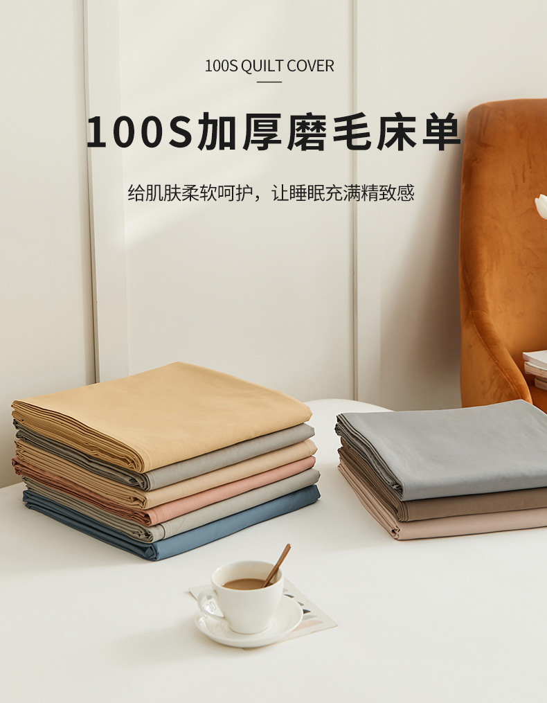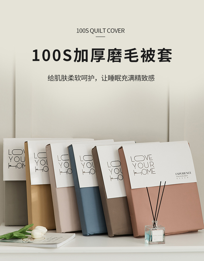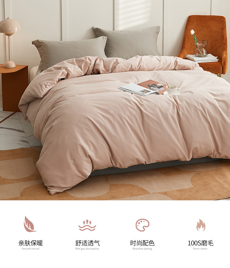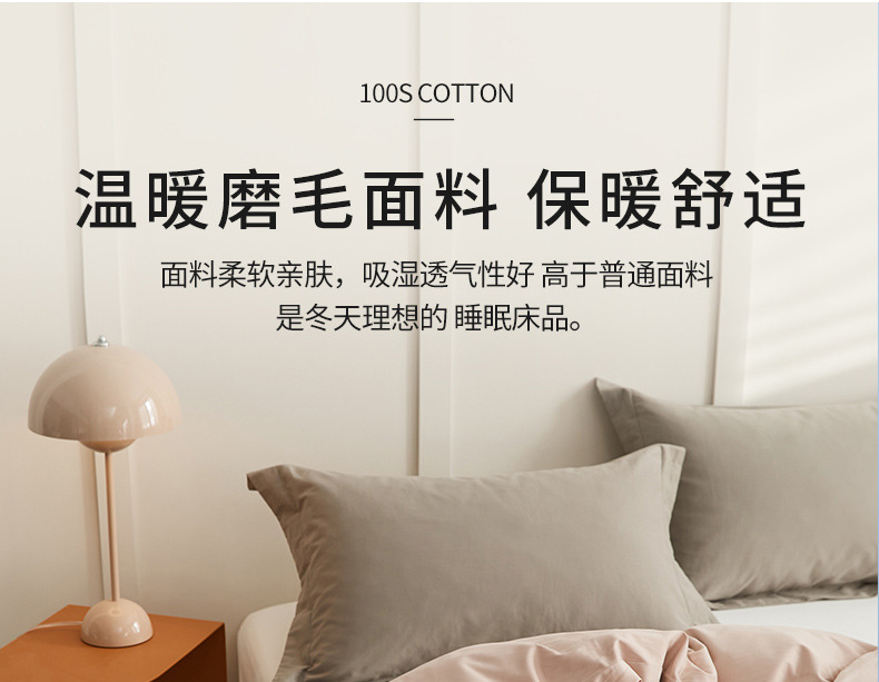 100支全棉磨毛被套 秋冬加厚纯色简约新疆长绒棉单品床笠床单枕套