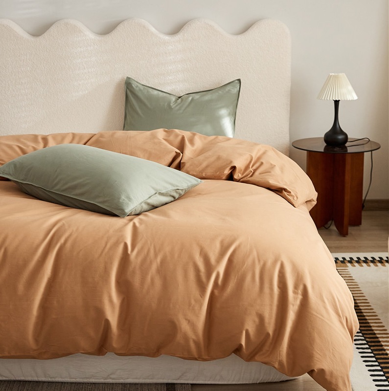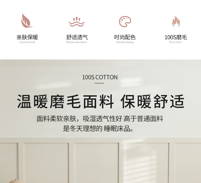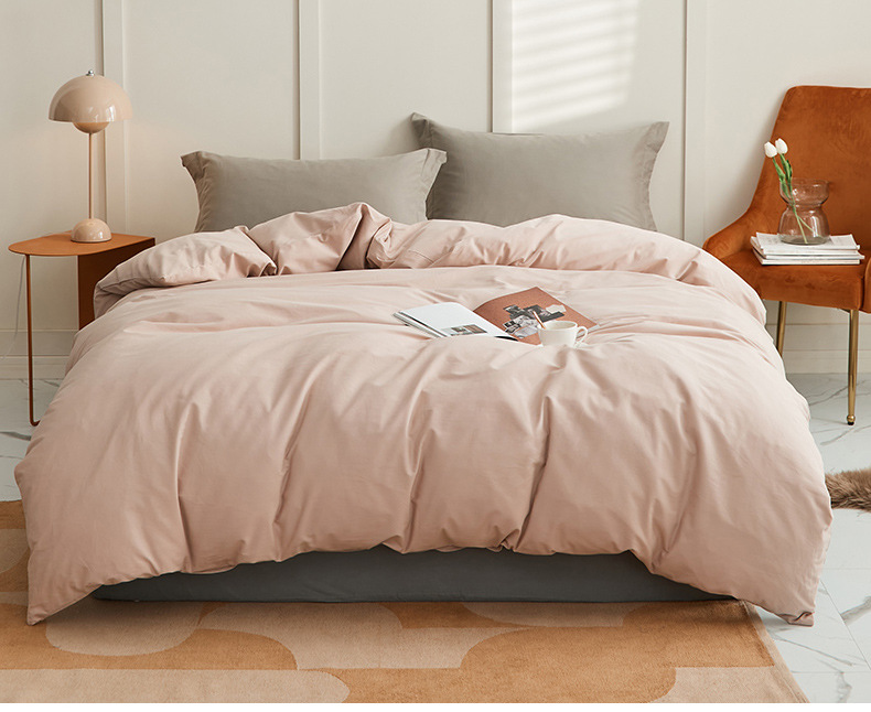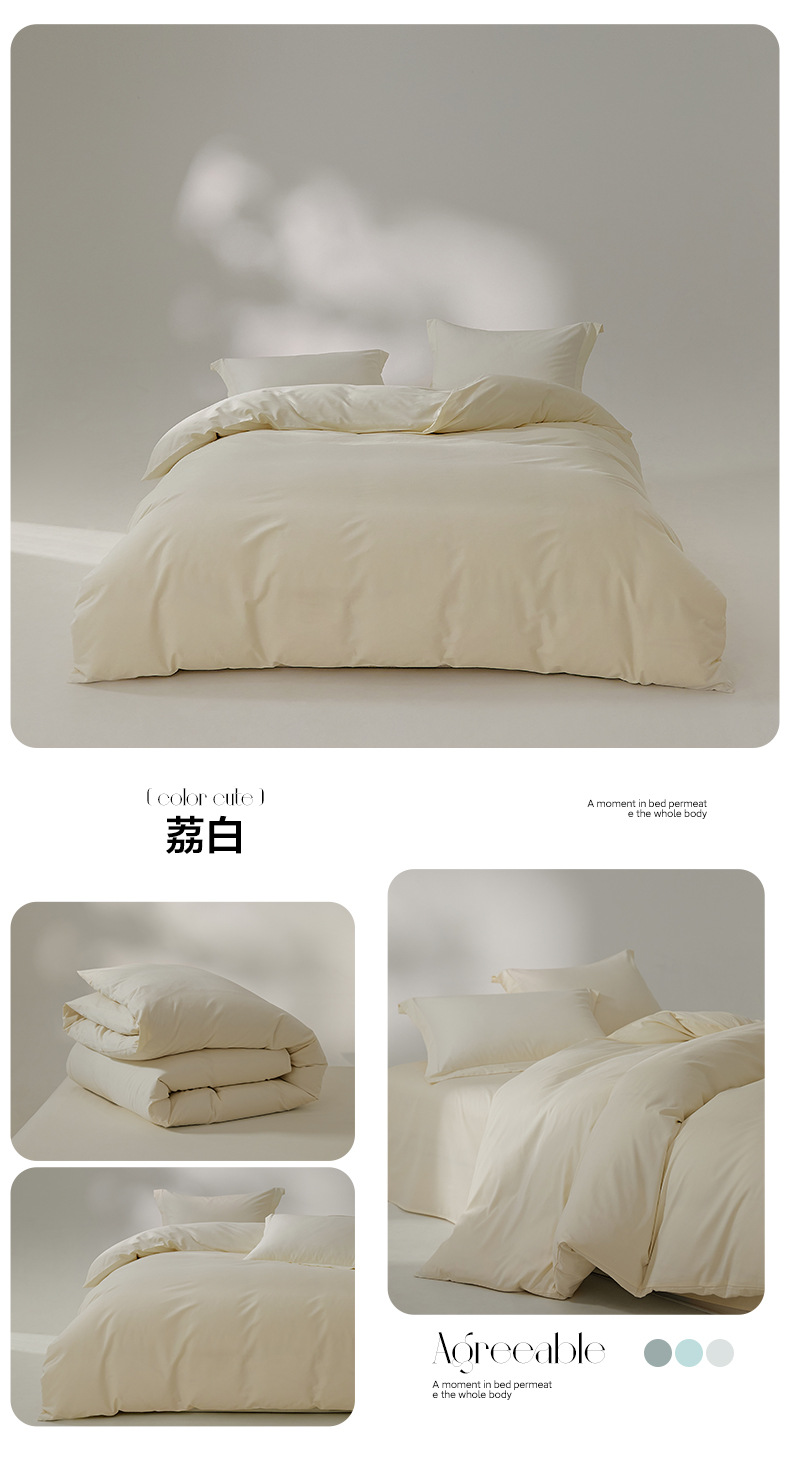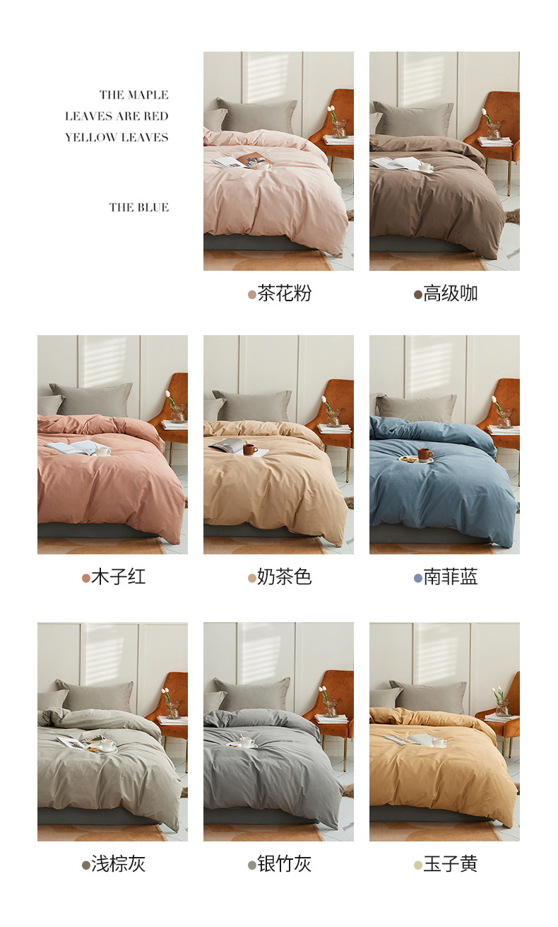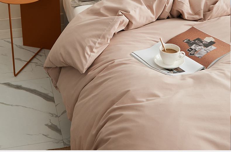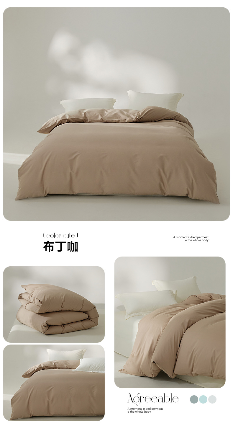 100支全棉磨毛被套 秋冬加厚纯色简约新疆长绒棉单品床笠床单枕套
