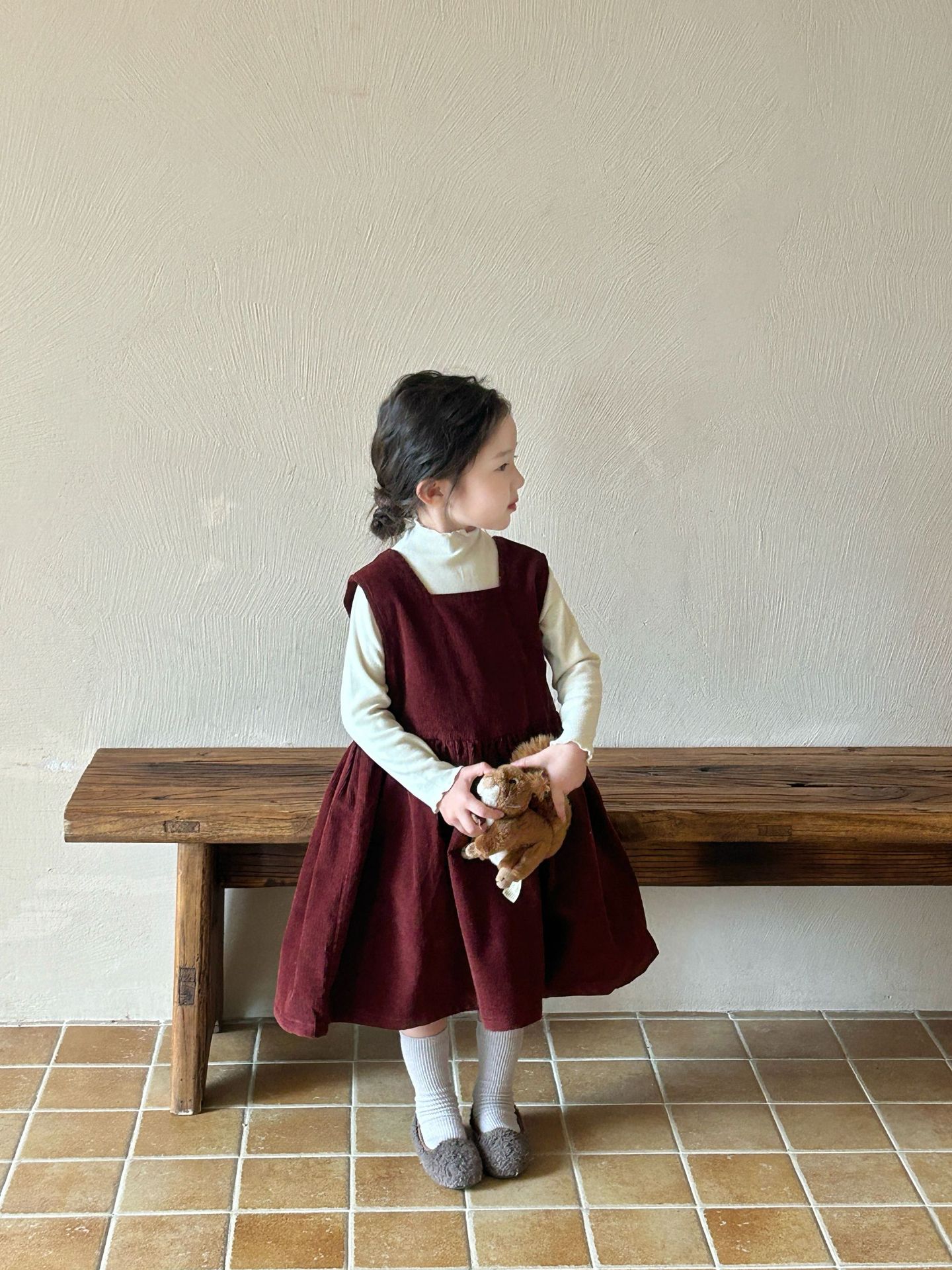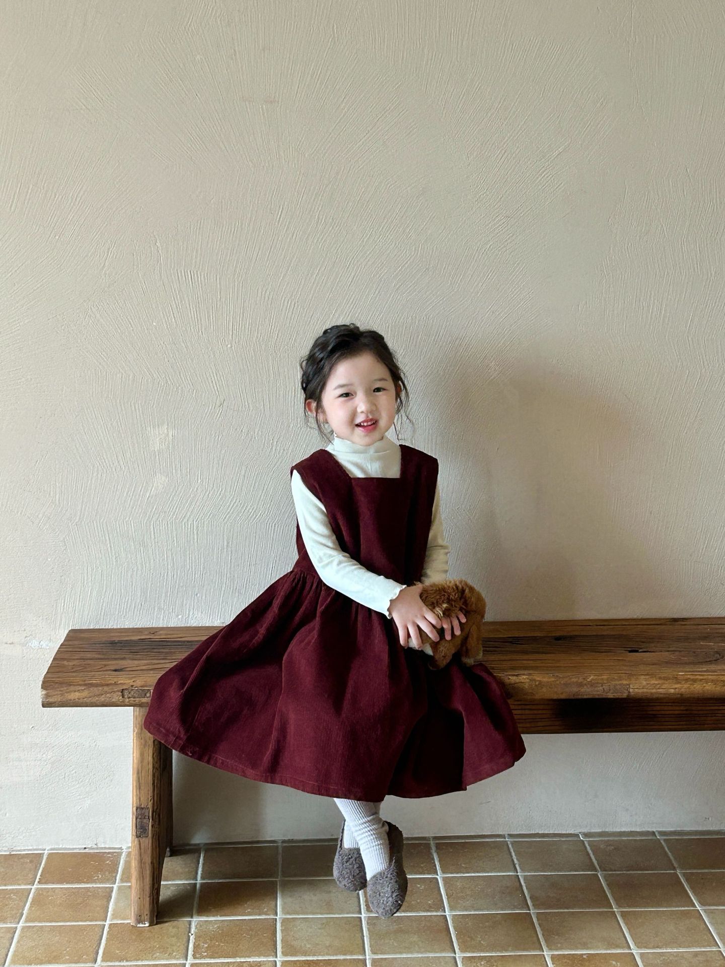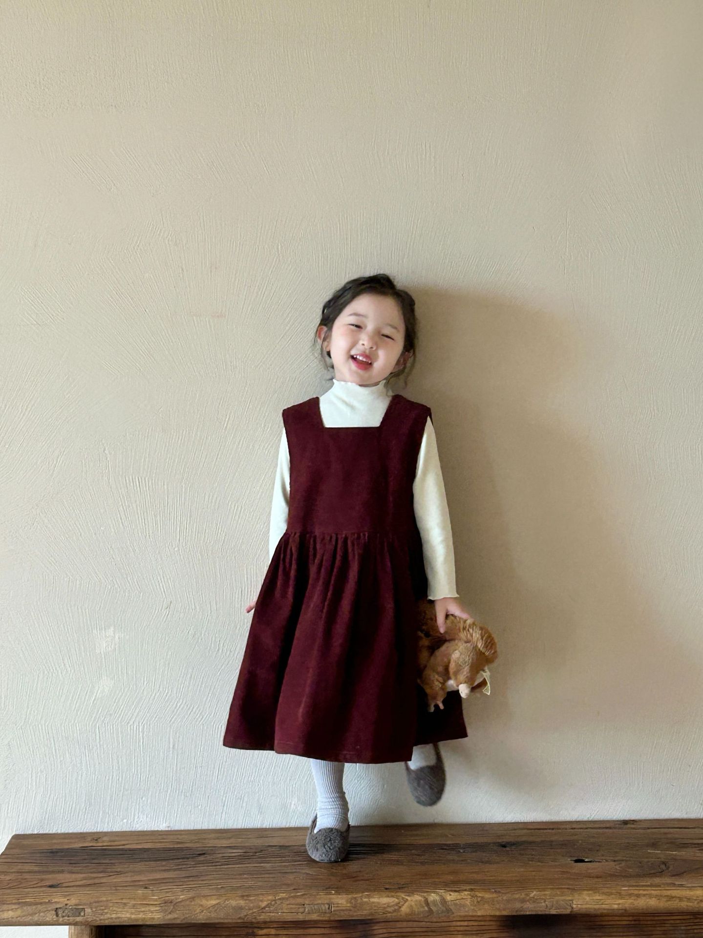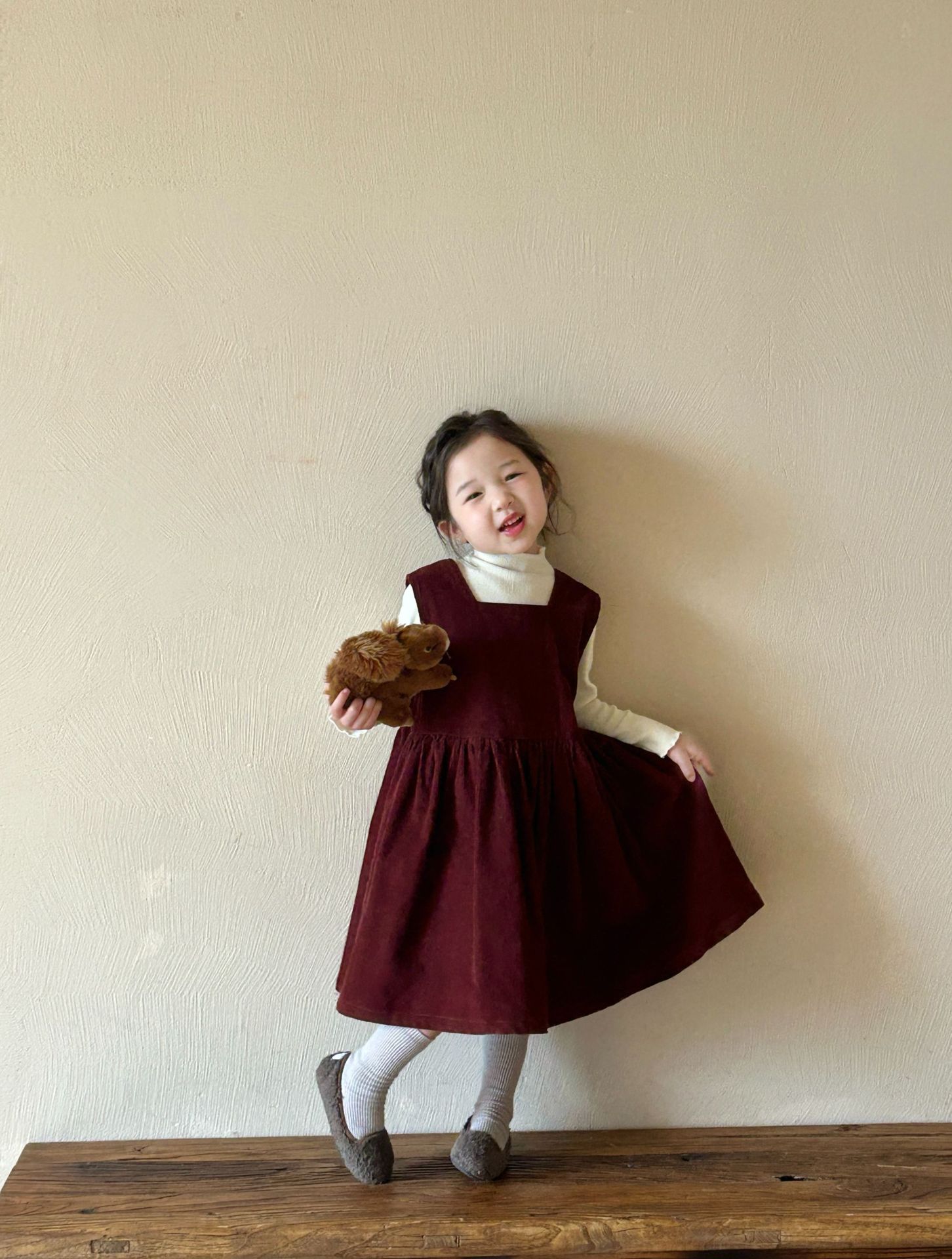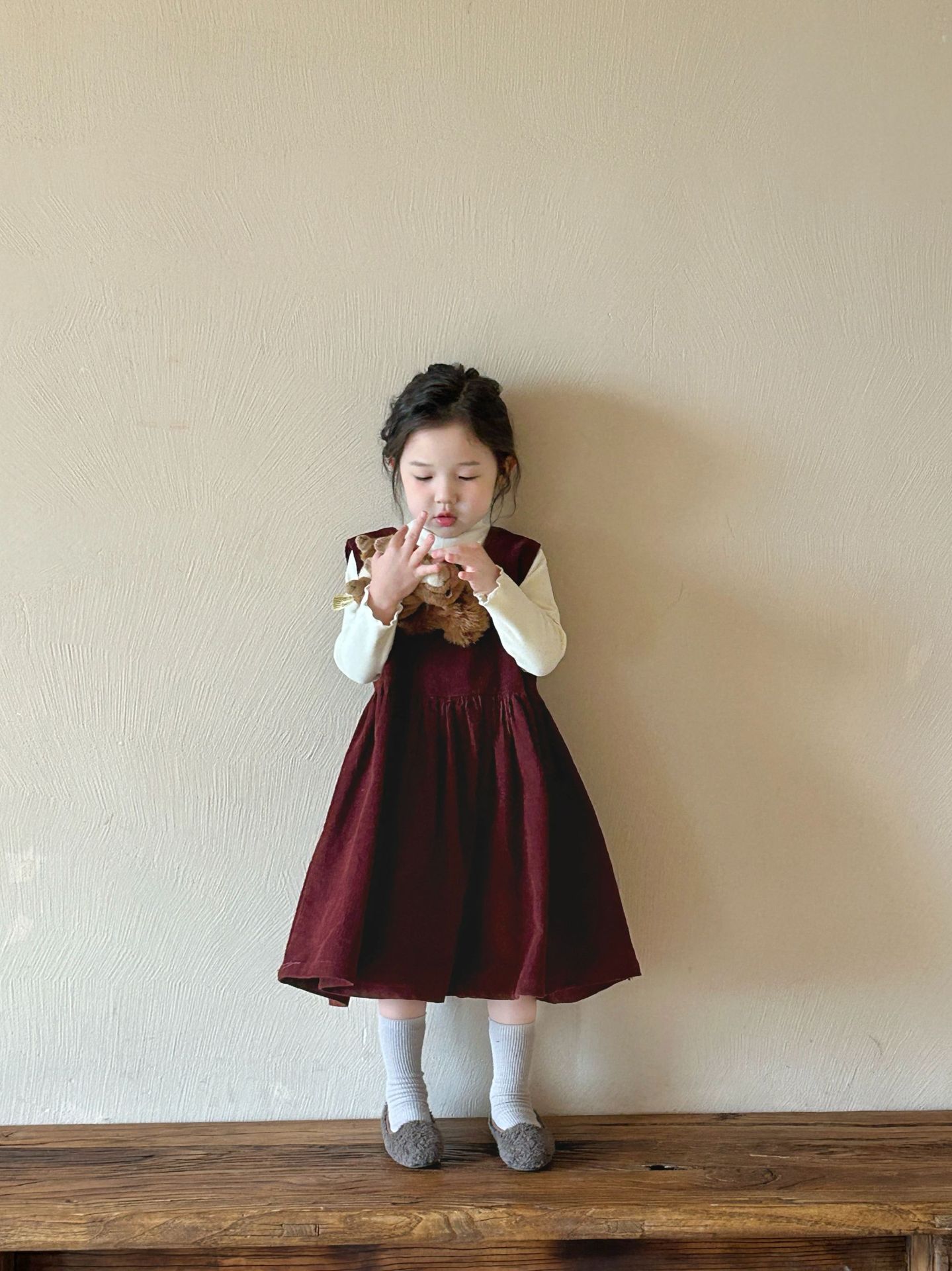 2024秋季新款童装 韩版童装 女童纯色灯芯绒背心裙 中长款连衣裙