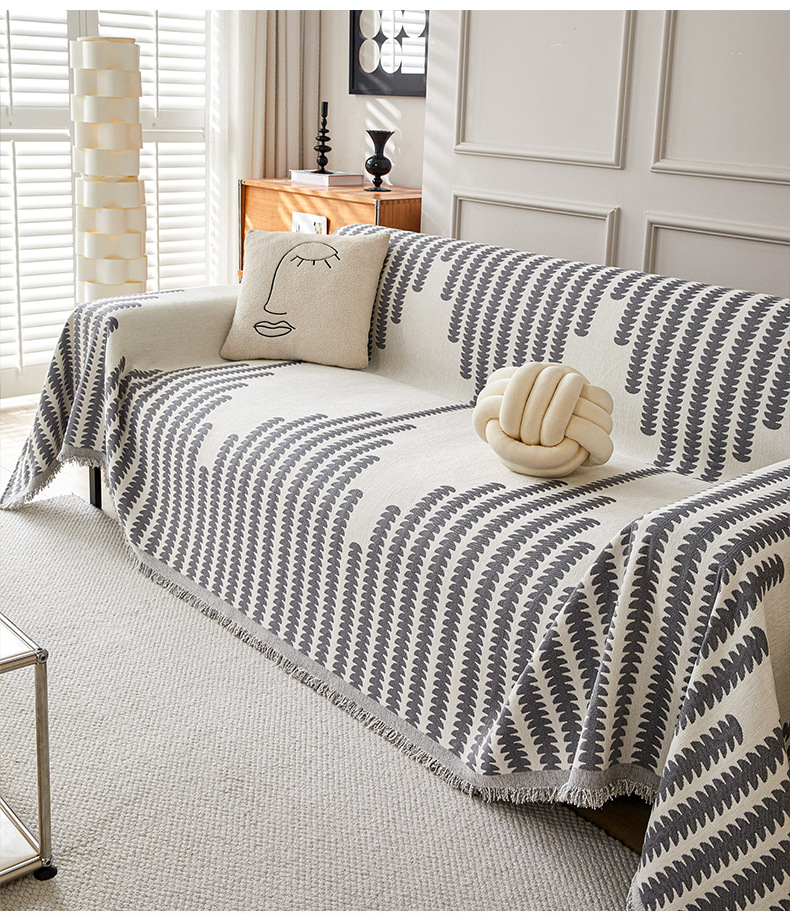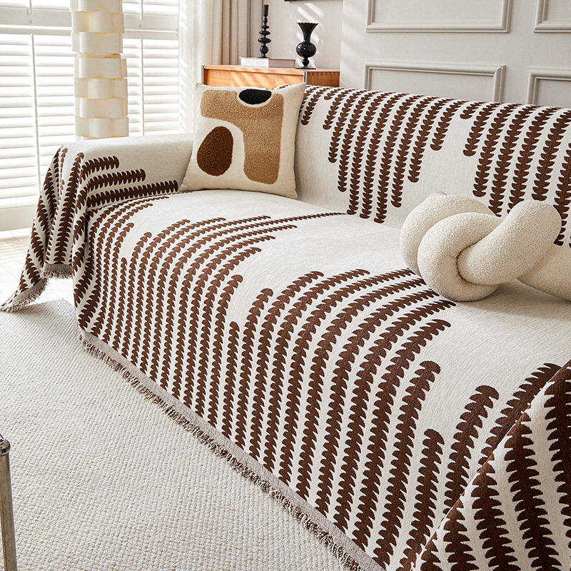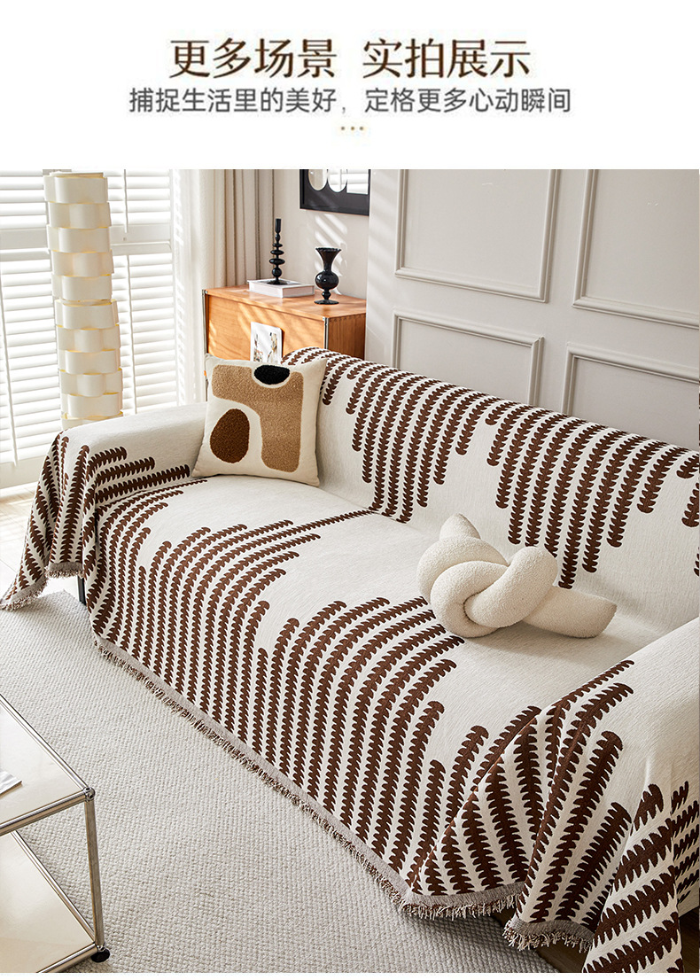 雪尼尔线条沙发巾现代防滑简约高级感沙发盖布全盖沙发垫沙发套罩