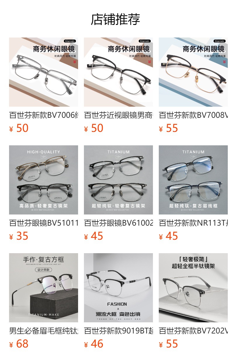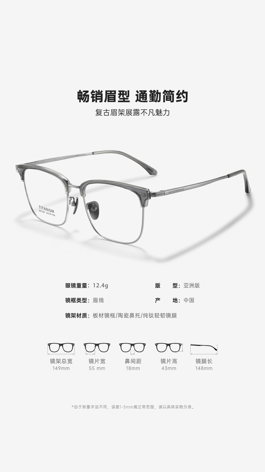 百世芬BW7207V商务眉毛框近视眼镜框男超轻纯钛镜架丹阳眼镜批发