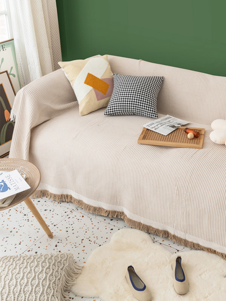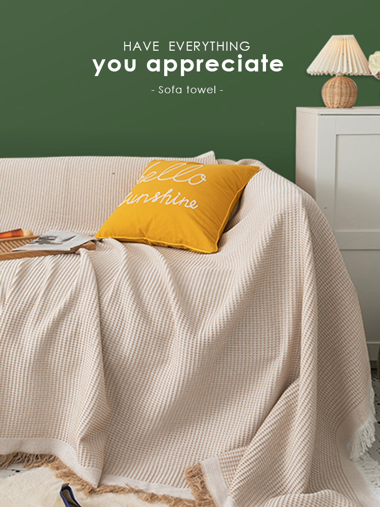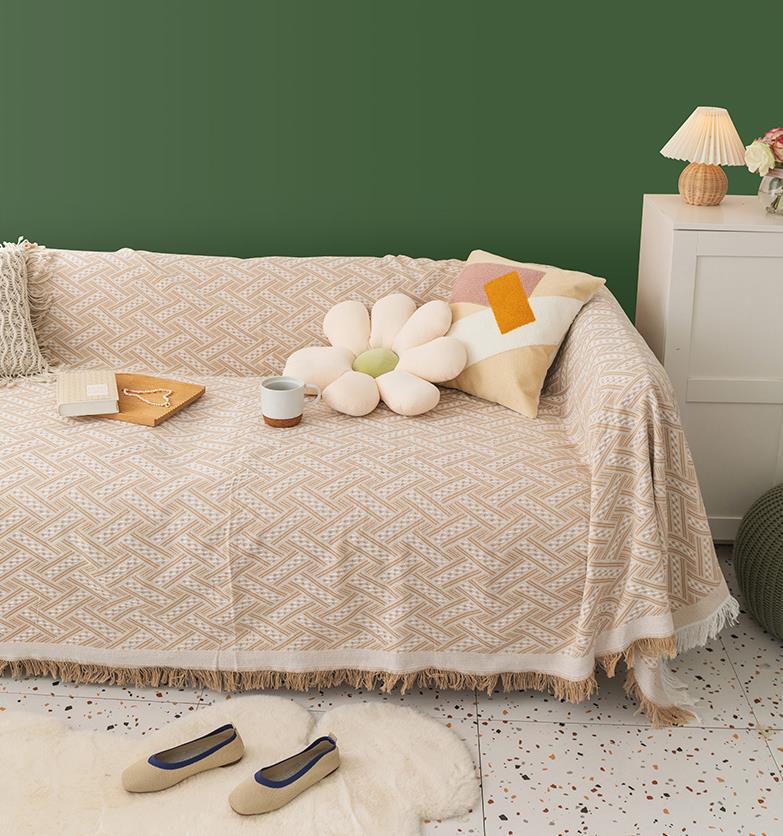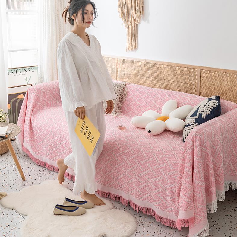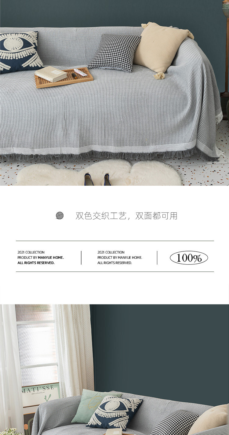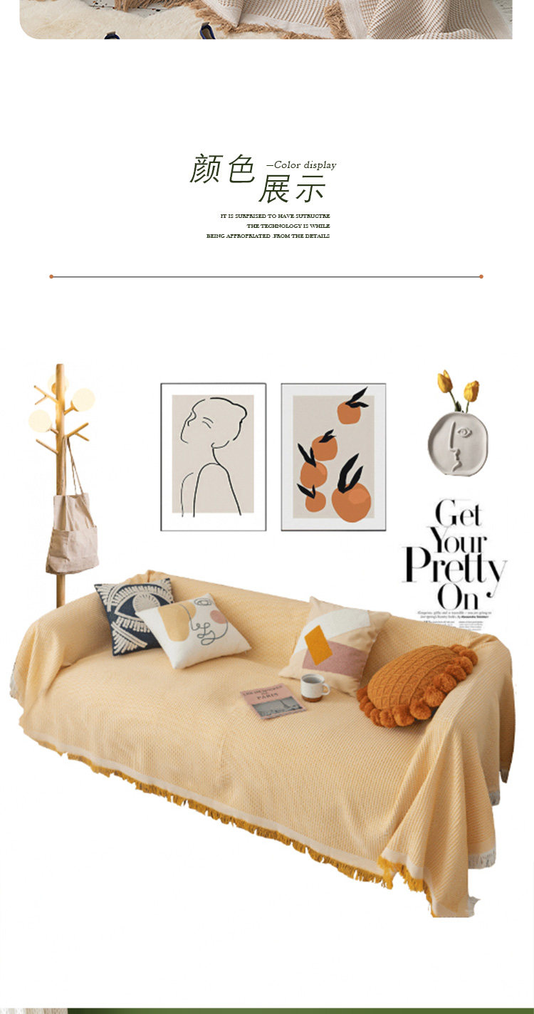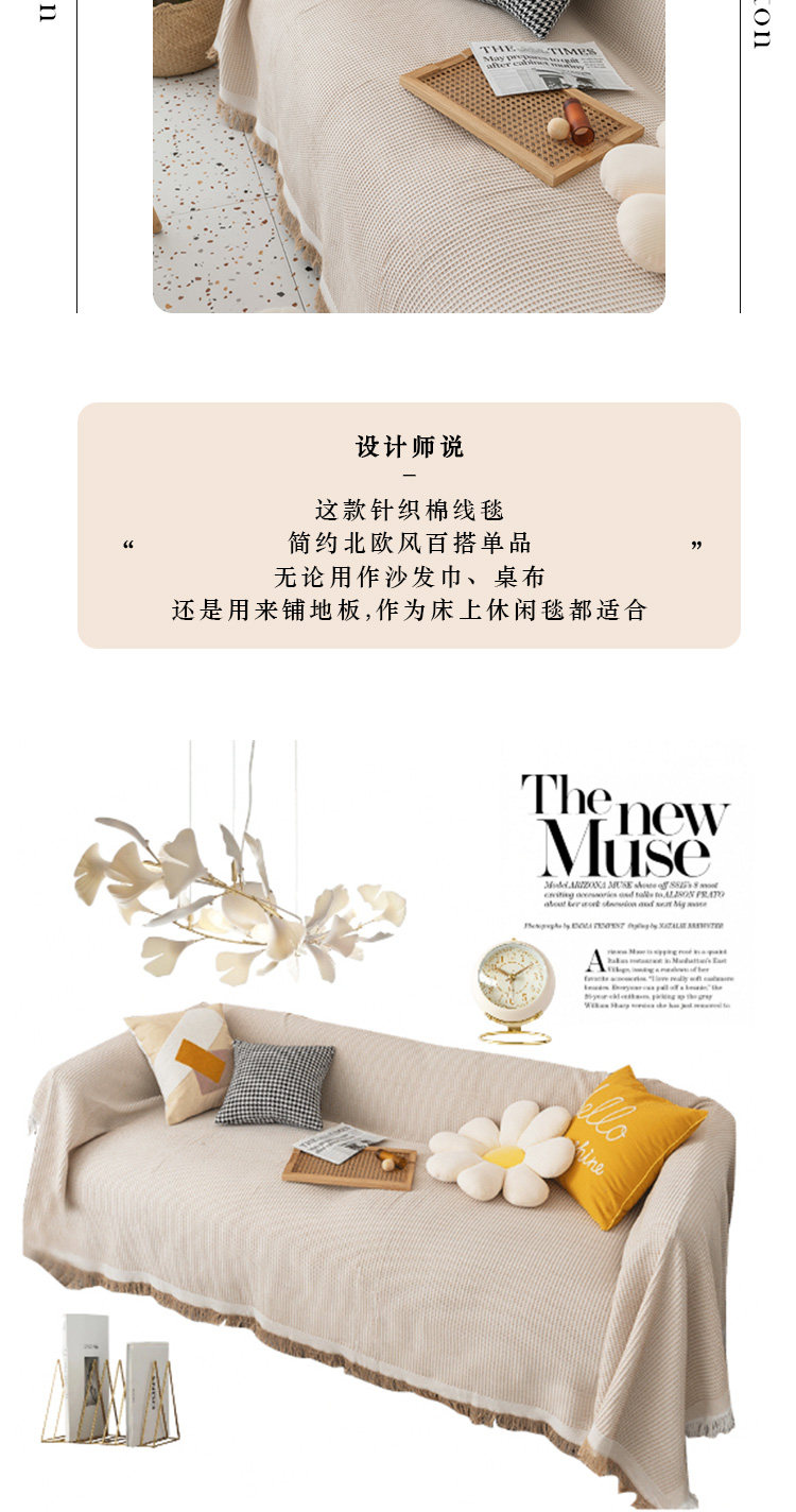 【跨境批发】北欧纯色四季棉线毯简约坐垫ins风沙发巾 时尚午休毯