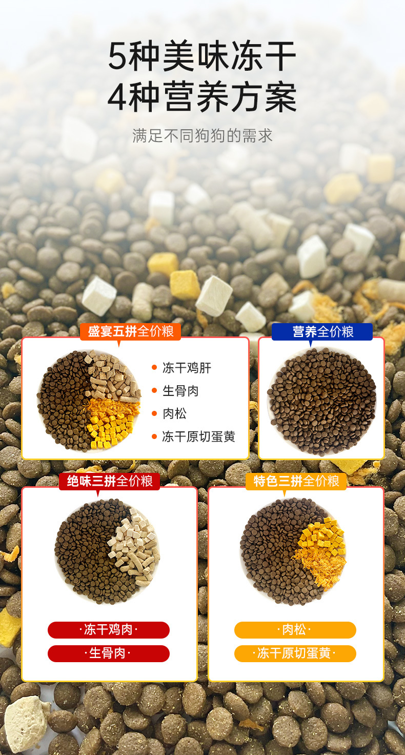 笑宠狗粮工厂批发小型犬冻干多拼蛋黄鸡肉鸡肝生骨肉幼犬粮成犬粮