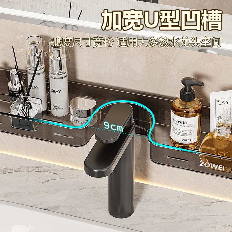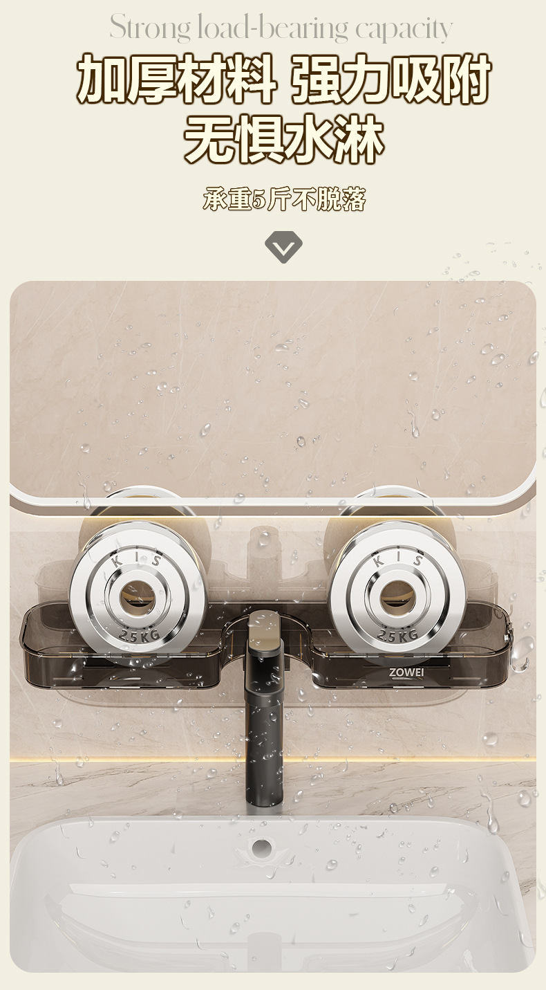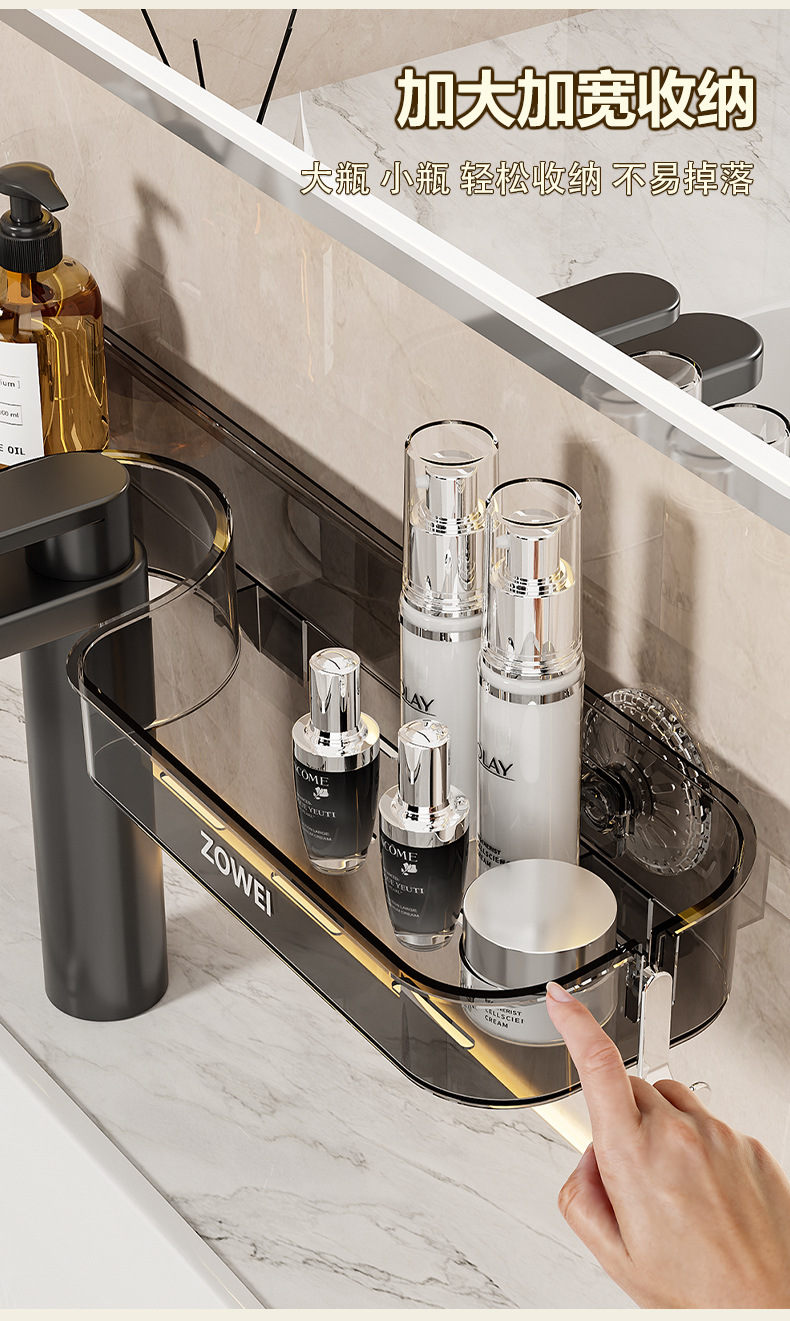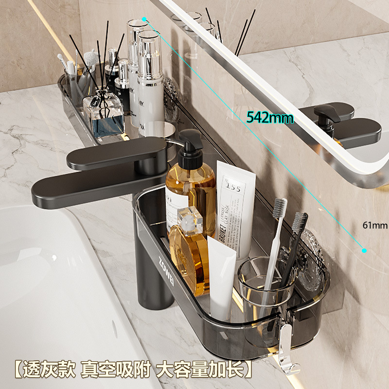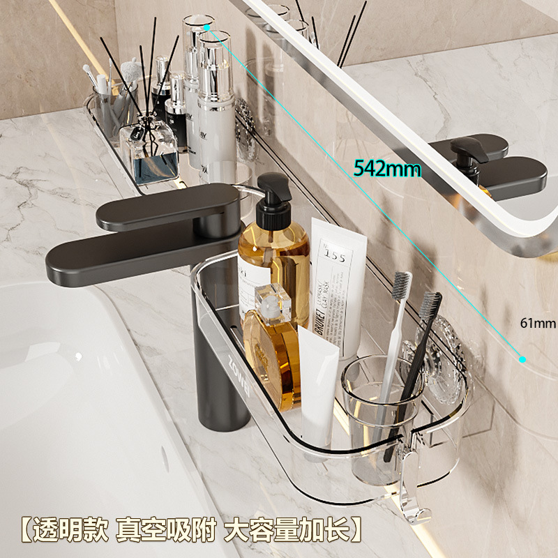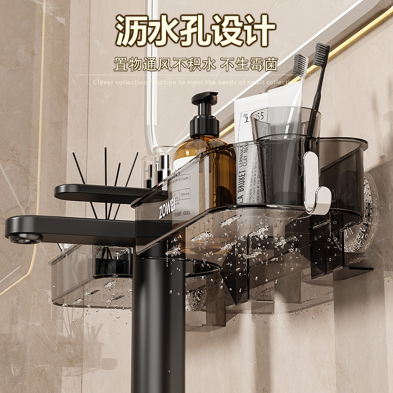 壁挂免打孔卫生间浴室洗手池镜前收纳架子吸盘洗漱台水龙头置物架