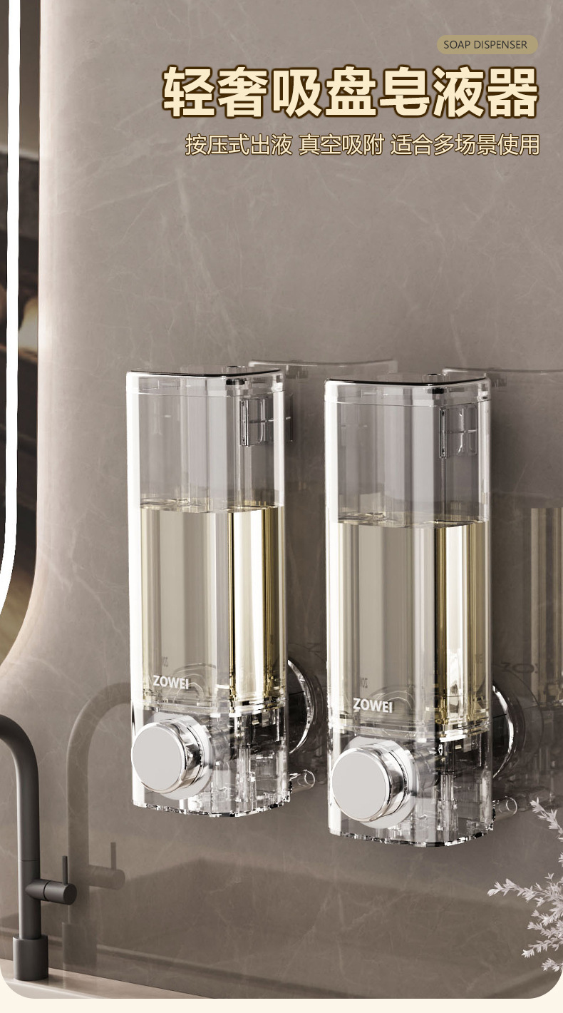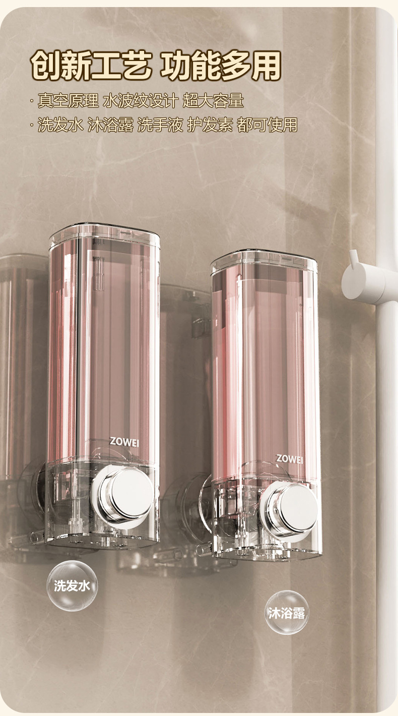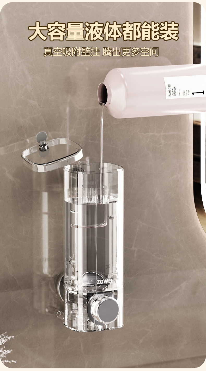 免打孔吸盘皂液器沐浴露盒沐浴液瓶壁挂式洗手液瓶子按压洗发水瓶