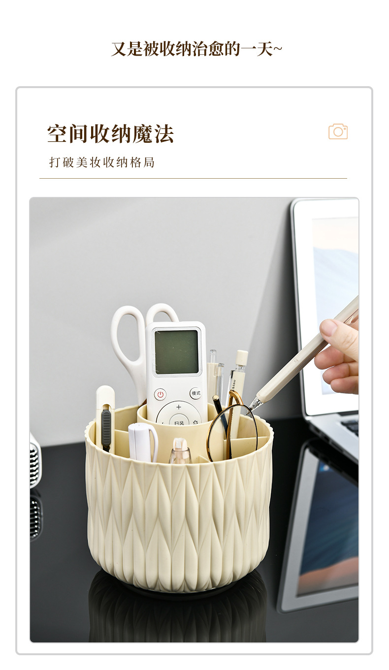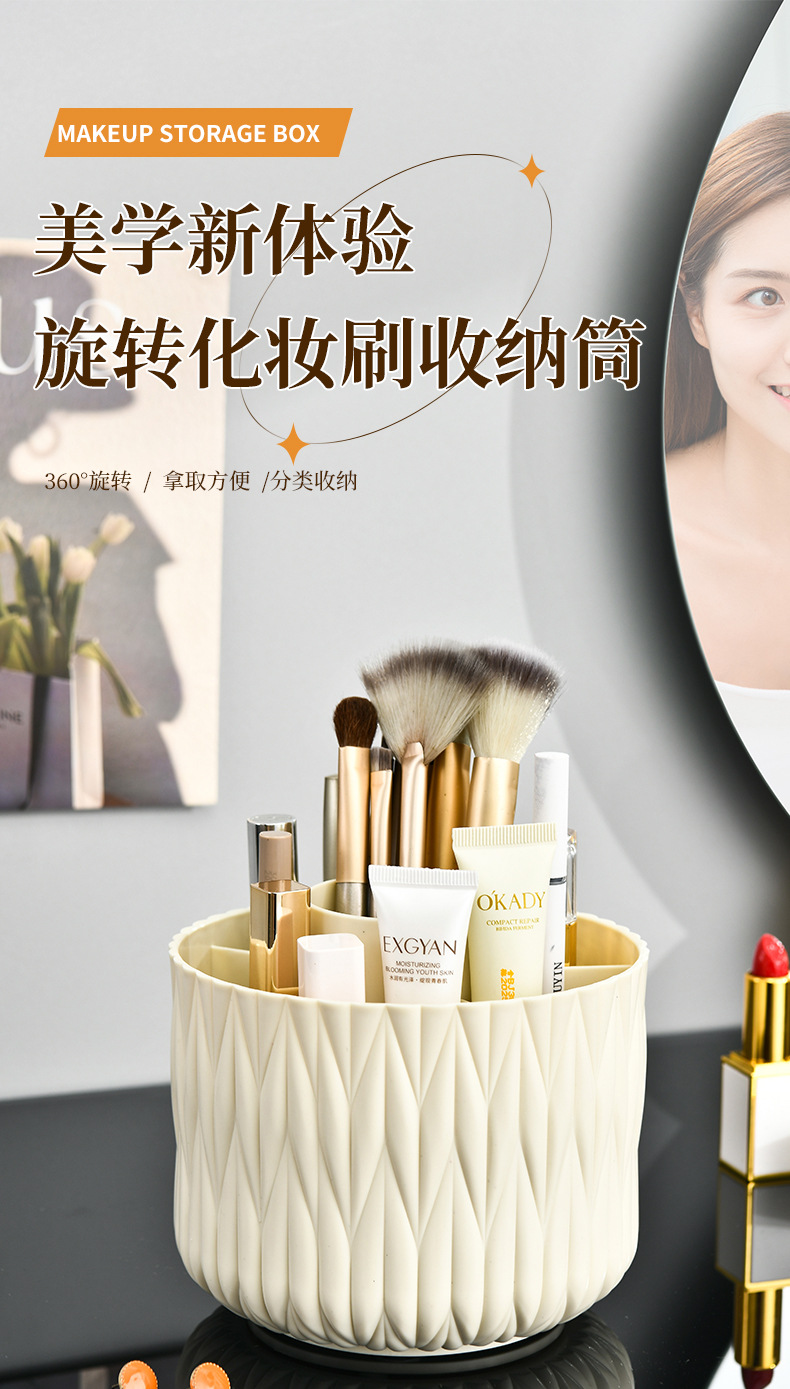化妆笔筒360旋转大容量化妆刷桶梳妆台刷子收纳盒口红眉笔整理盒