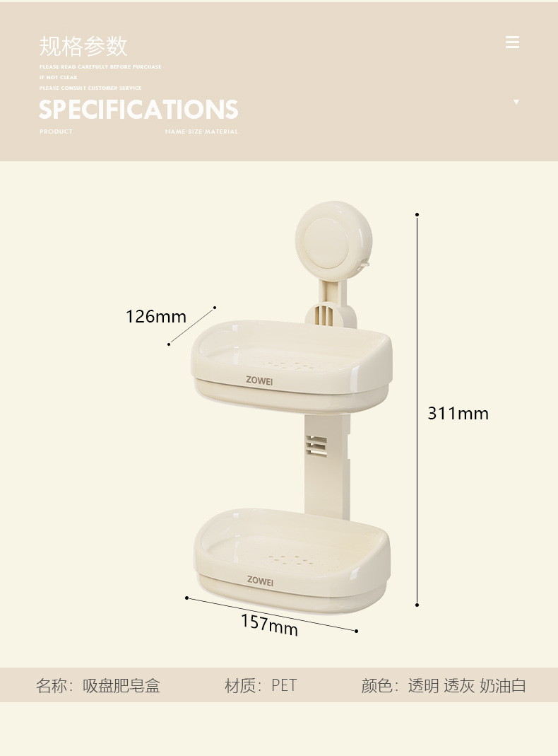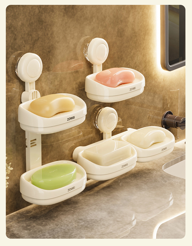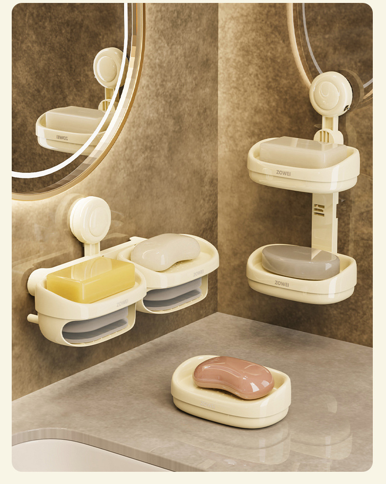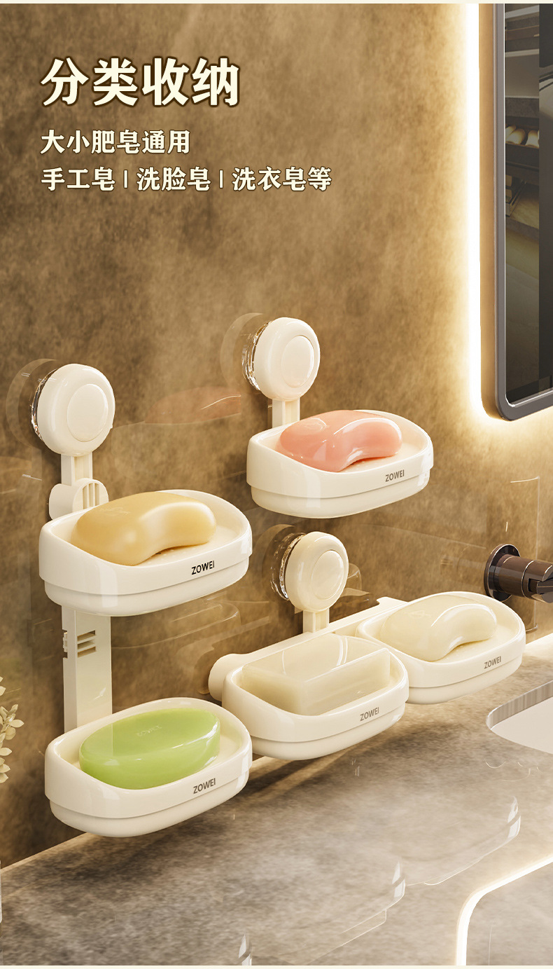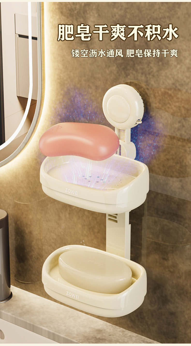 肥皂盒壁挂式免打孔沥水卫生间宿舍轻奢香皂盒双层真空吸盘置物架