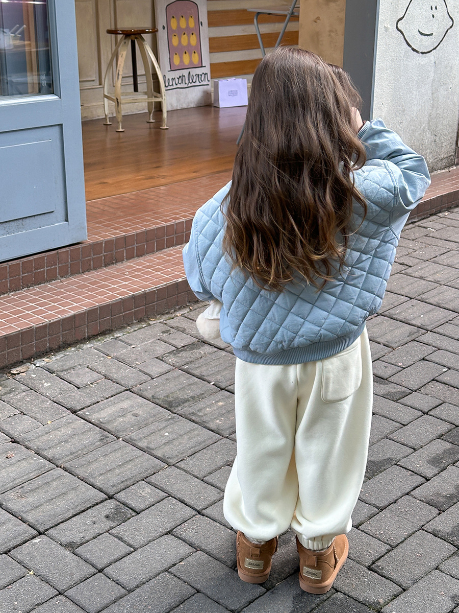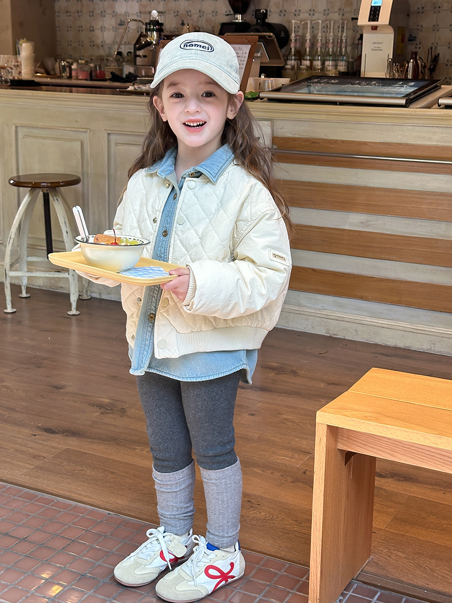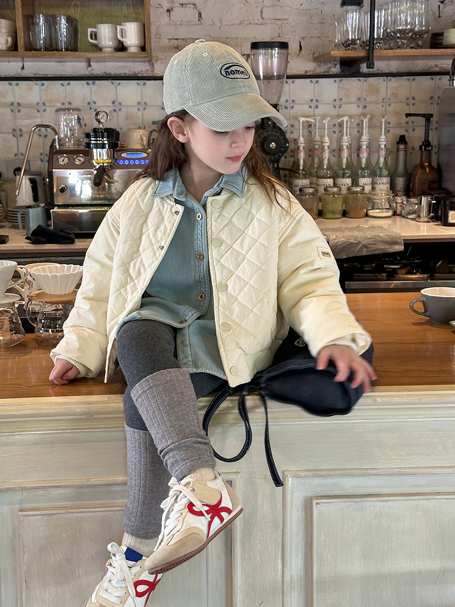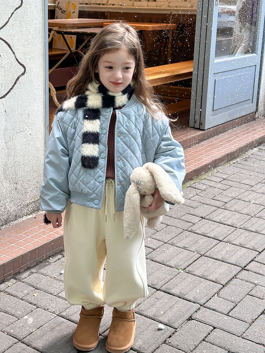 【夹棉】艾摩贝贝女童冬季洋气短款棉衣儿童韩版贴标菱格棉服外套
