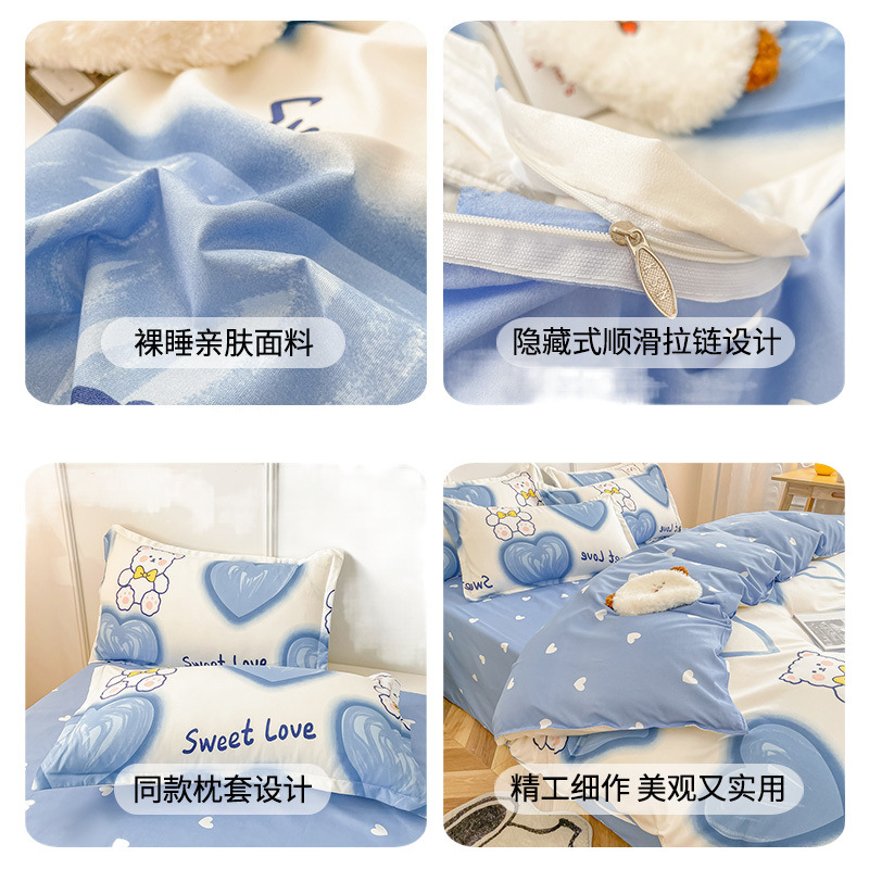 亲肤裸睡被套单件水洗棉被罩单人床三件套被单150x200x230四件套