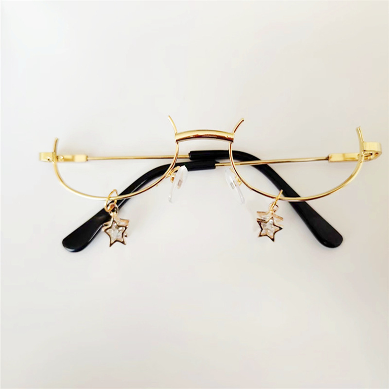 二次元无镜片金属半框眼镜女ins纯欲风日系软妹网红cos眼镜带链条