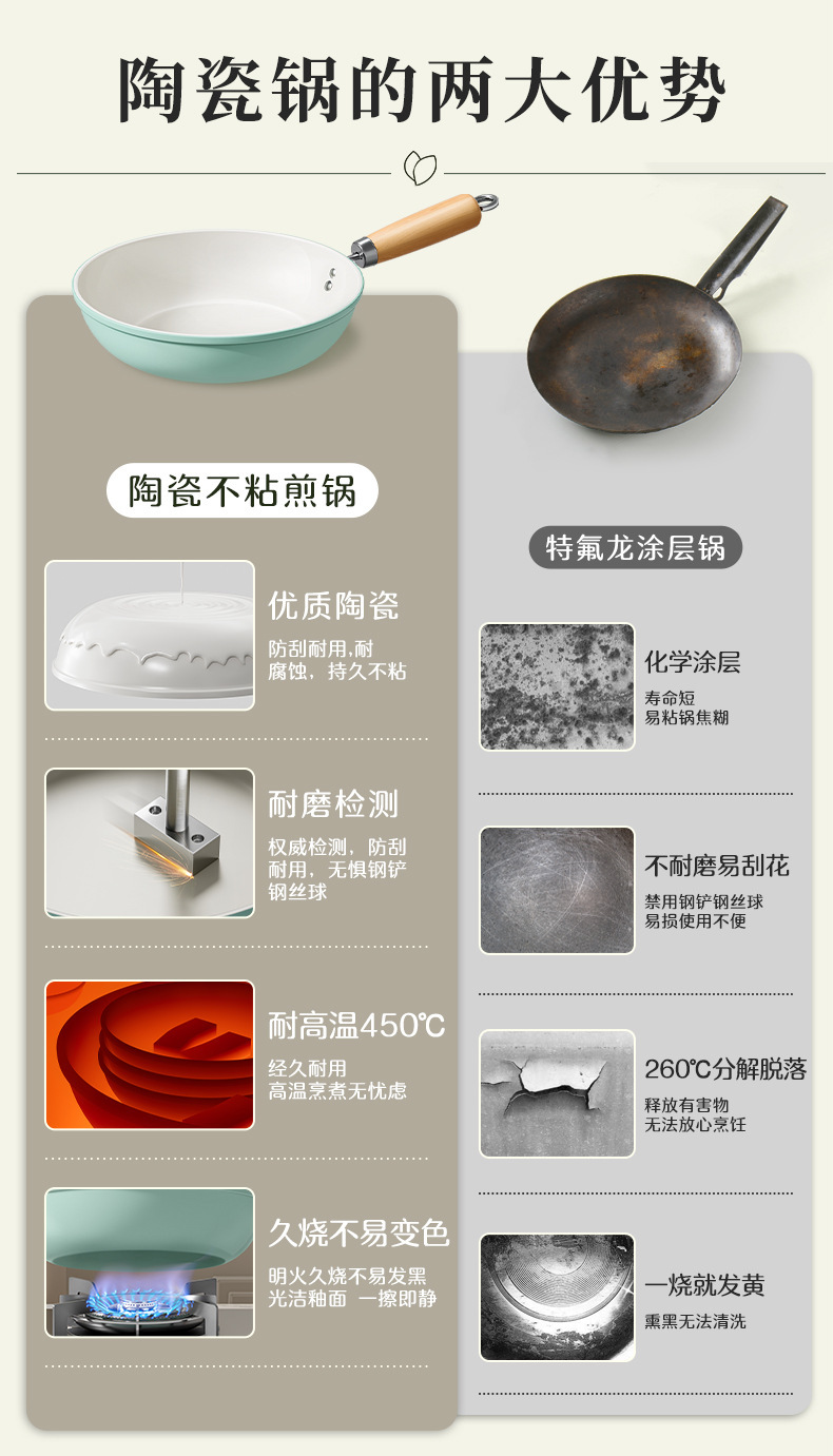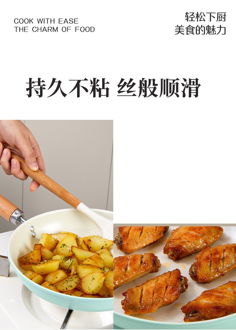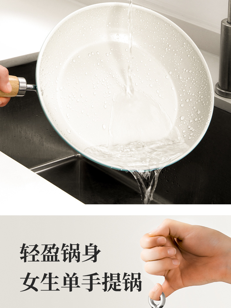 下游热卖秋波蓝陶瓷煎锅家用不粘锅平底煎锅通用炉灶平底锅批发