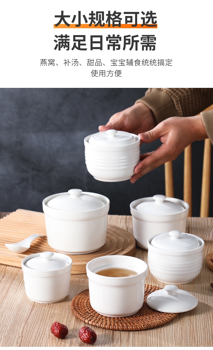 分销燕窝炖盅陶瓷炖盅汤盅隔水带盖小炖罐甜品盅酒店蒸炖汤