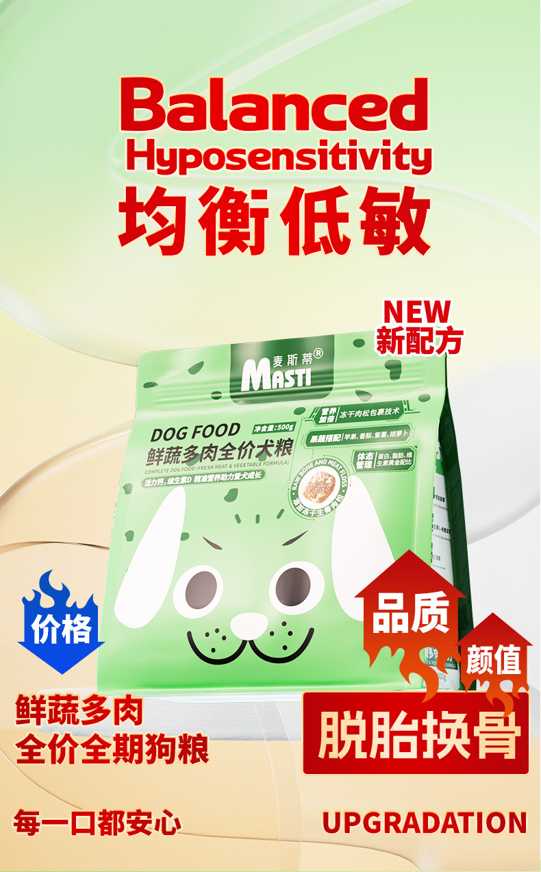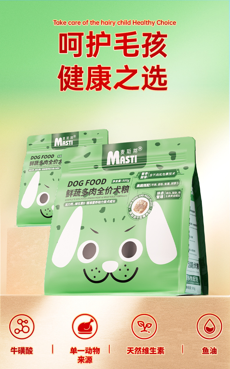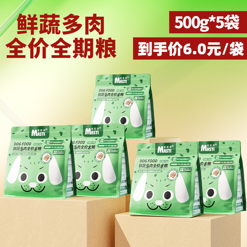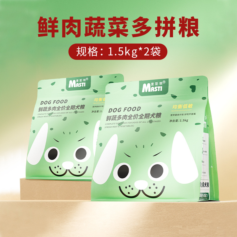 厂家直销麦斯蒂狗粮500g/1.5kg蔬菜多肉成幼犬全价通用型狗粮批发