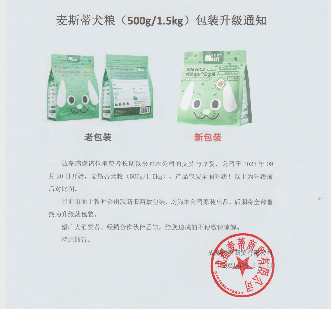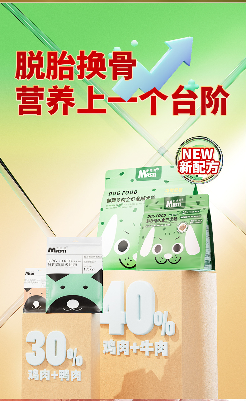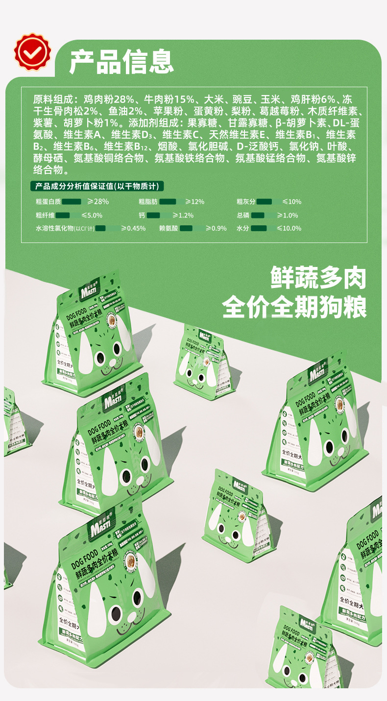 厂家直销麦斯蒂狗粮500g/1.5kg蔬菜多肉成幼犬全价通用型狗粮批发