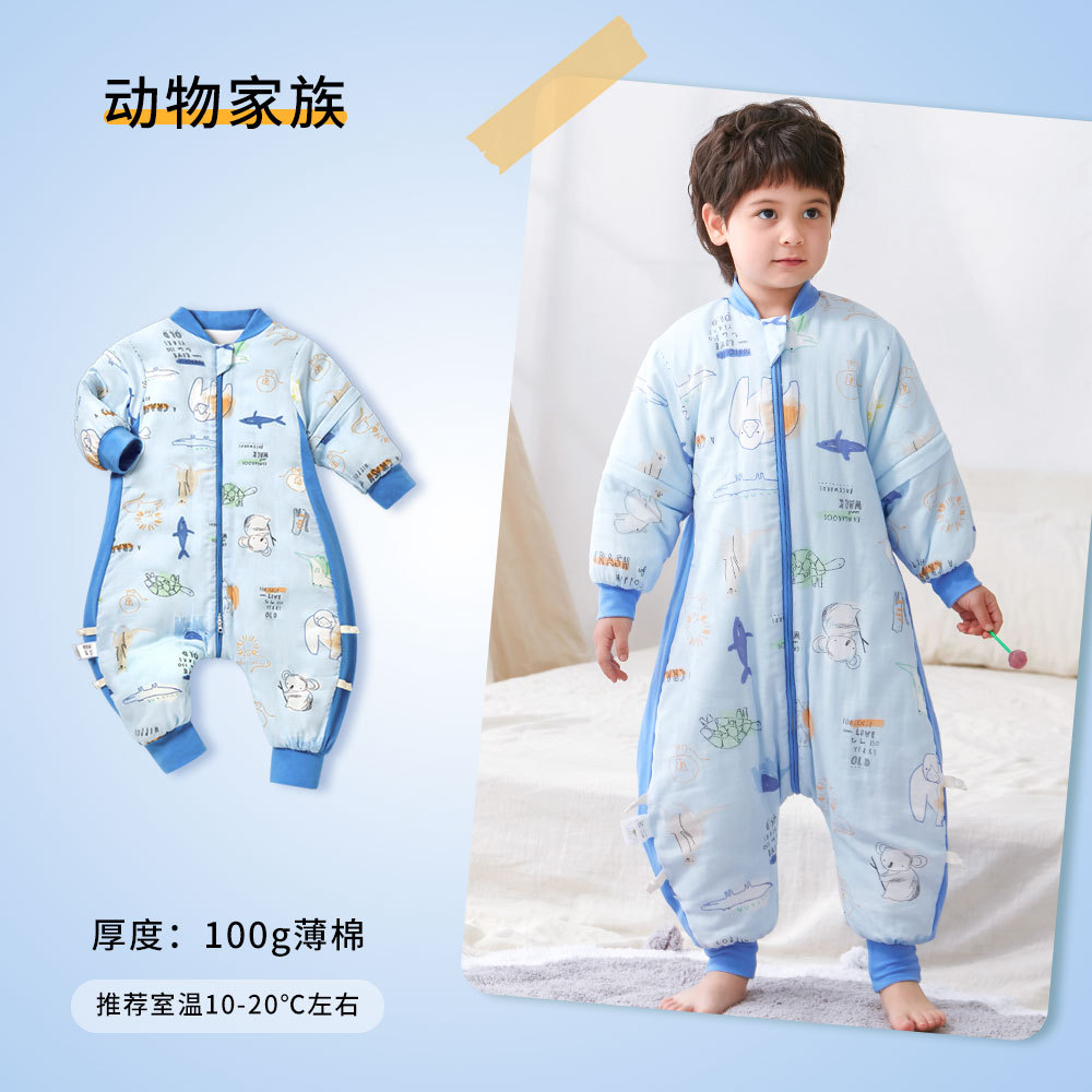 婴儿纱布夹棉分腿睡袋纯棉纱布婴儿睡袍宝宝空调房护肚防踢被神器