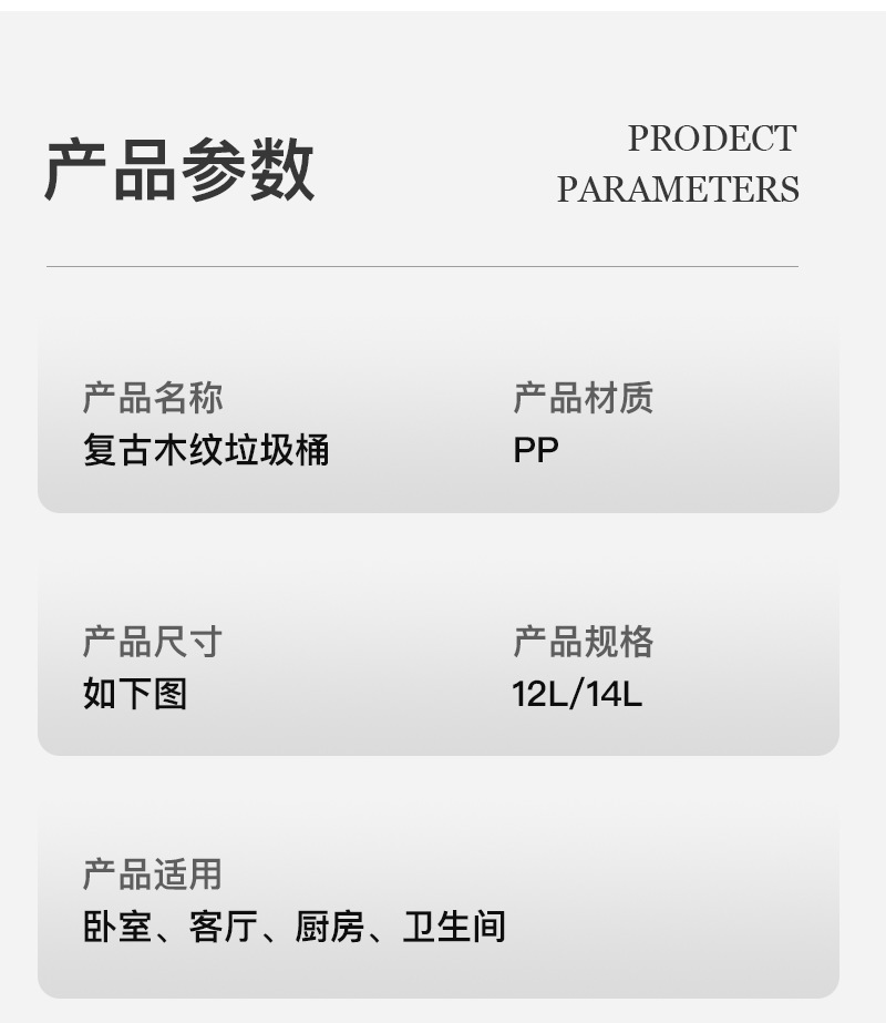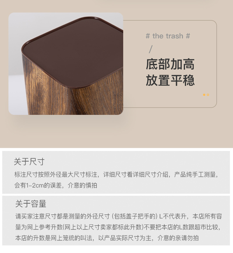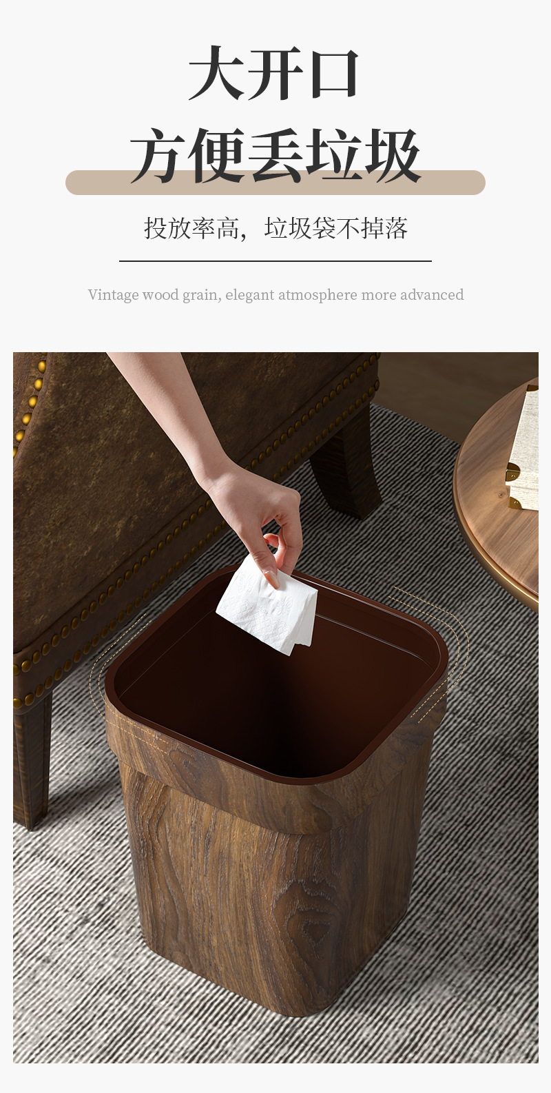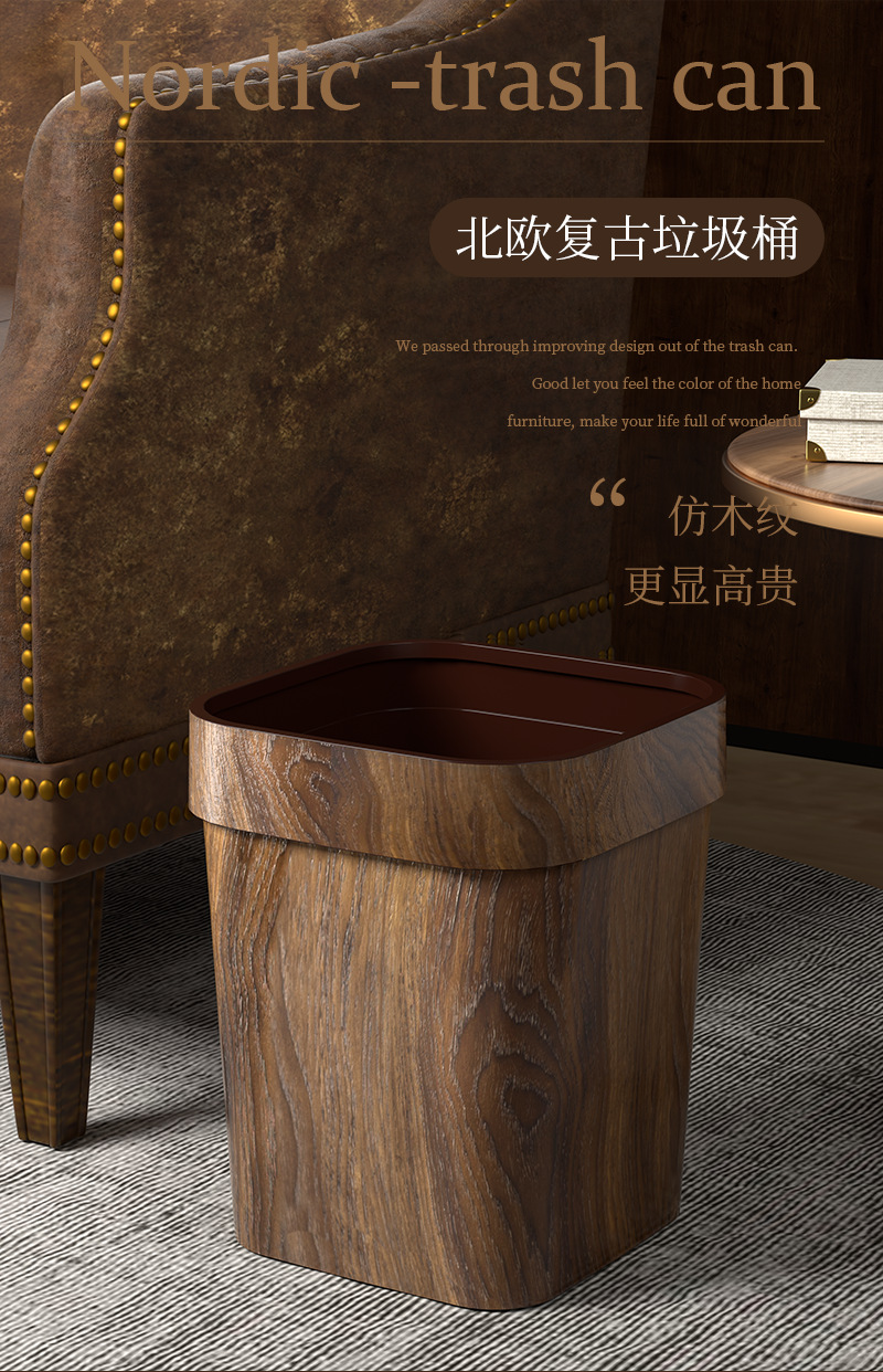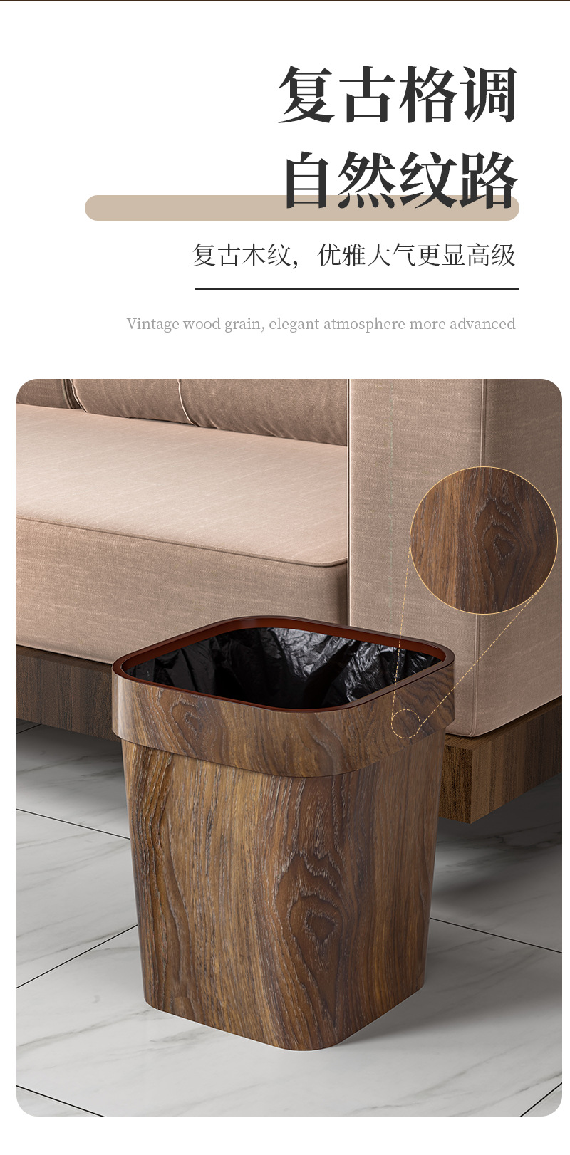 厨房卫生间卧室大容量高颜值简约纸篓家用客厅方形创意木纹垃圾桶
