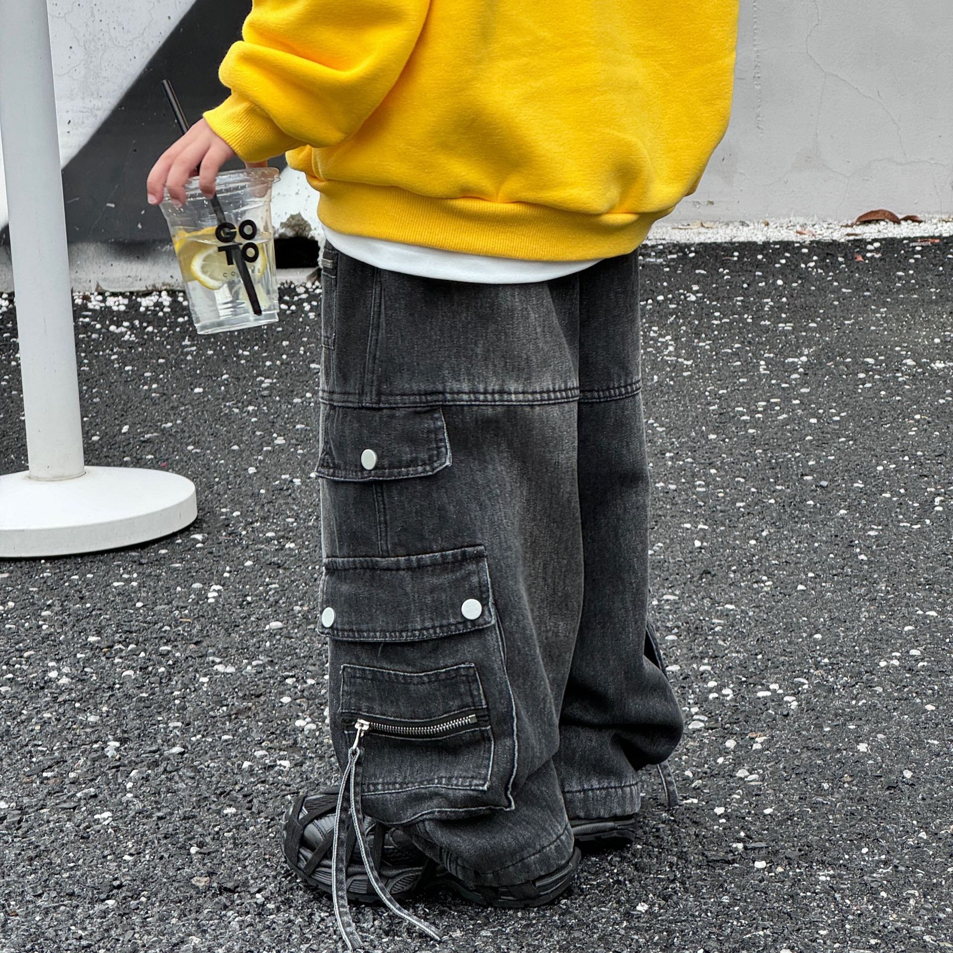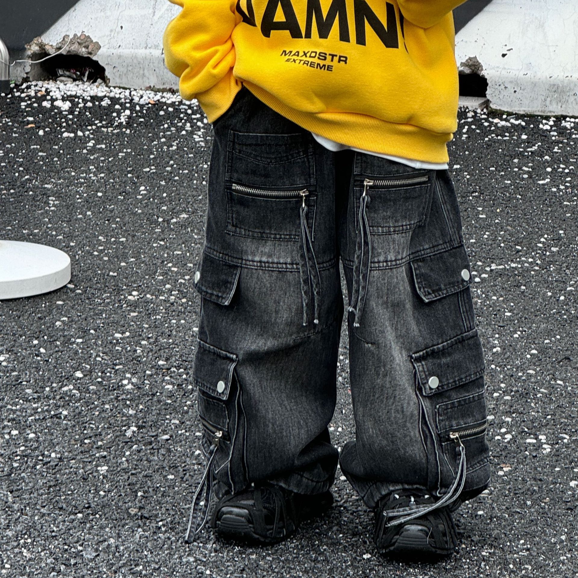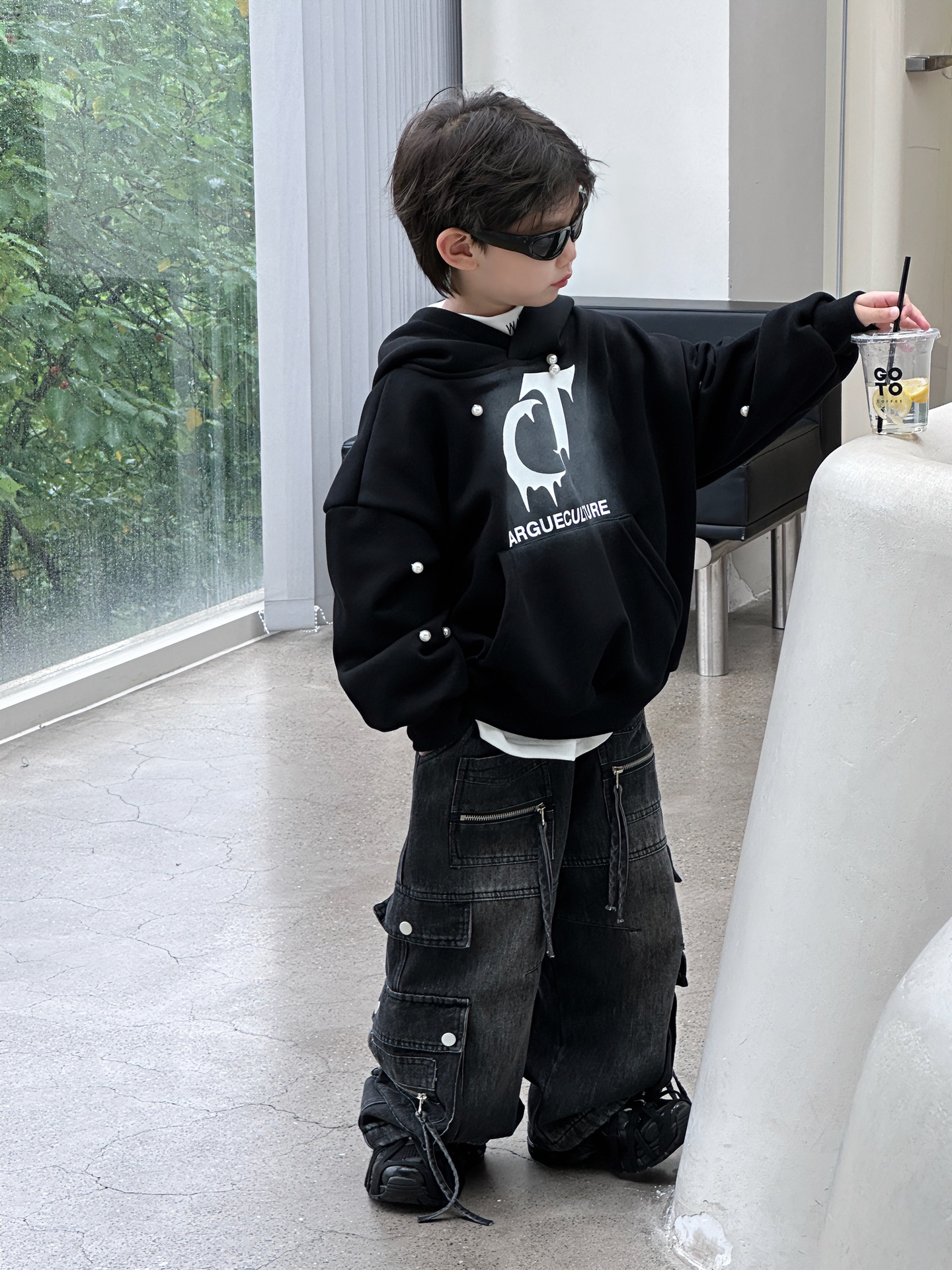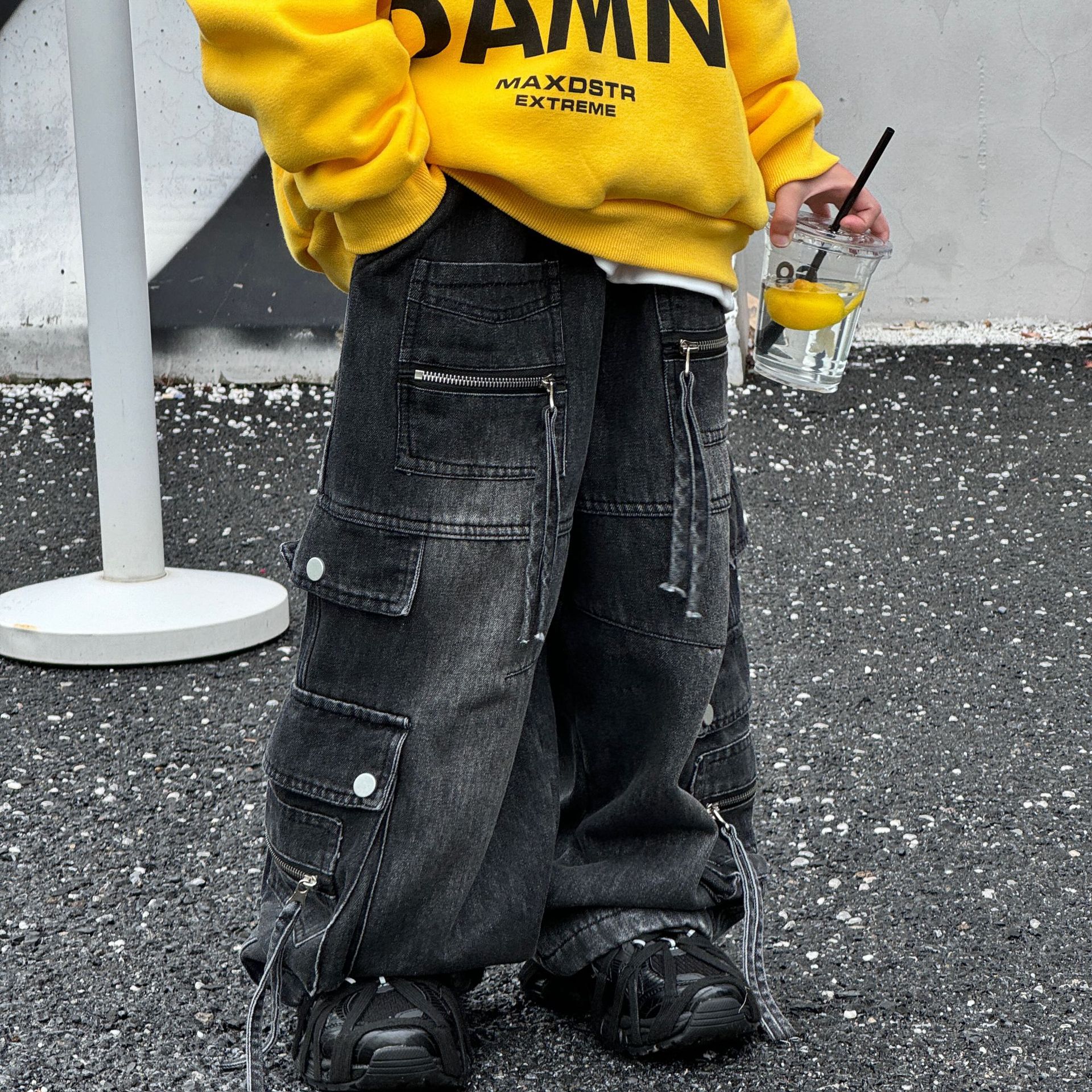泰如2024冬季新款韩版男童时尚百搭美式高街做旧加绒牛仔裤儿童潮