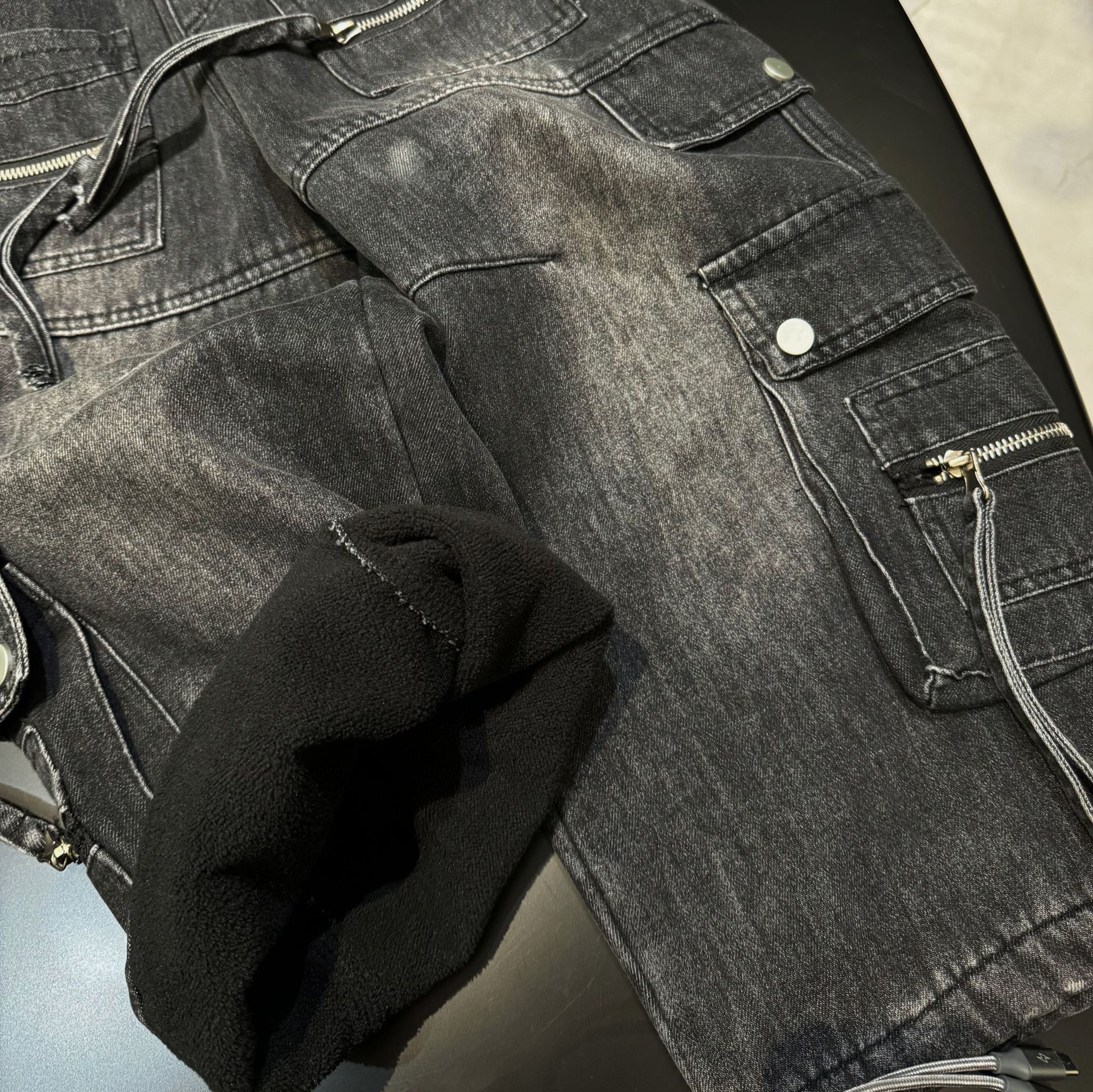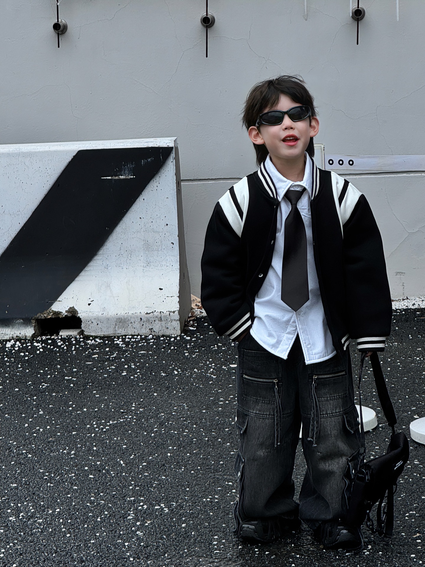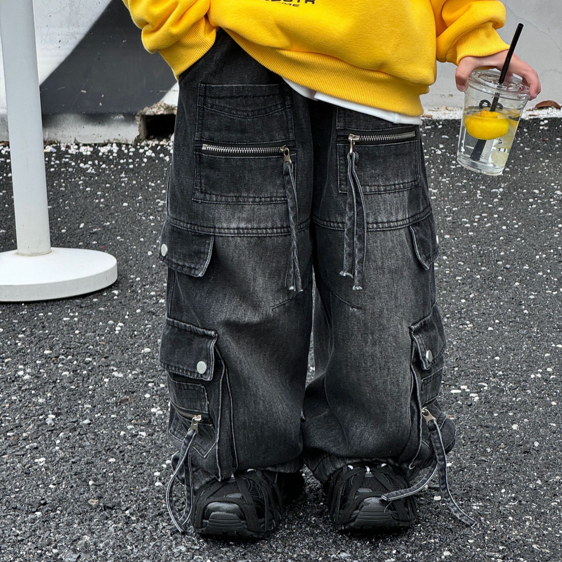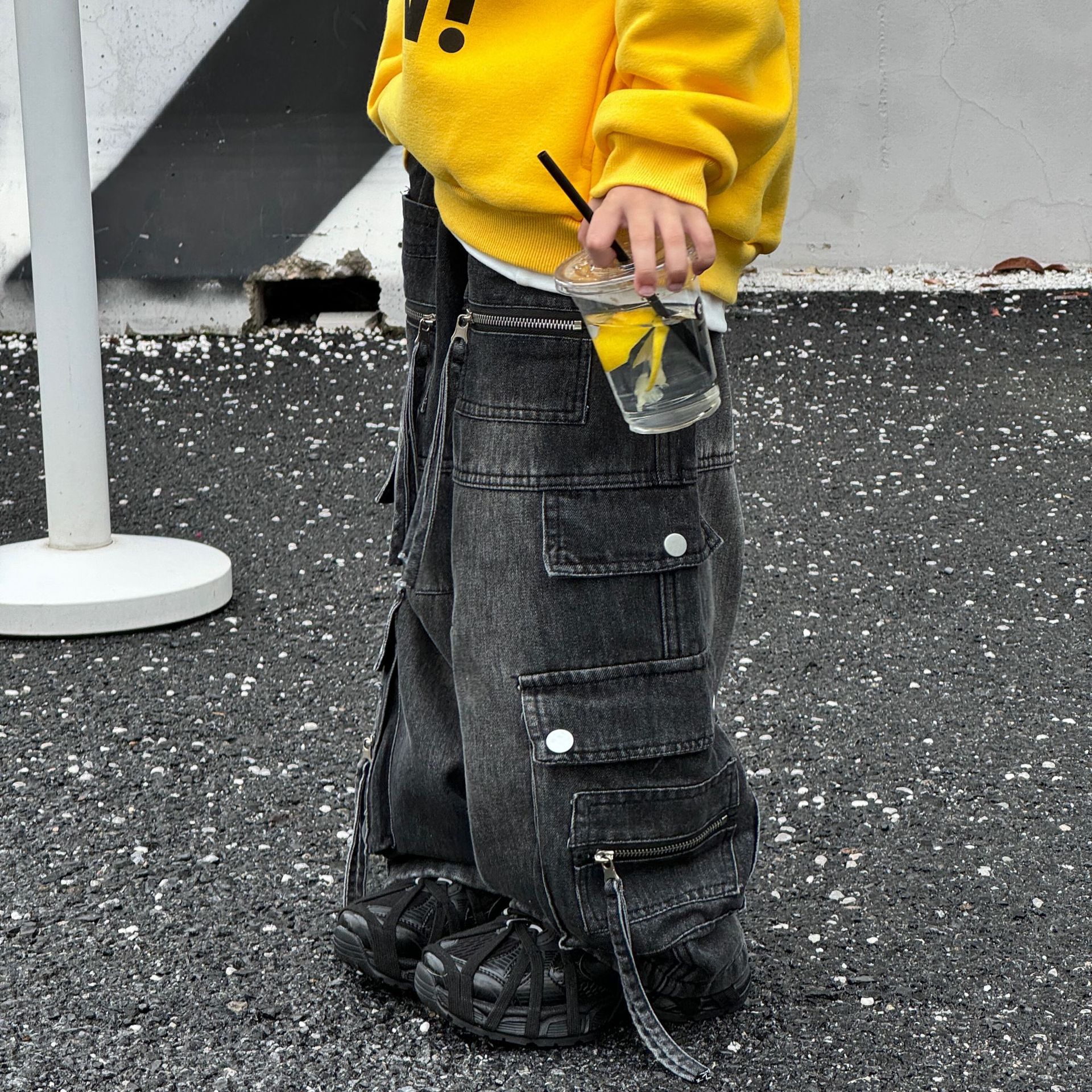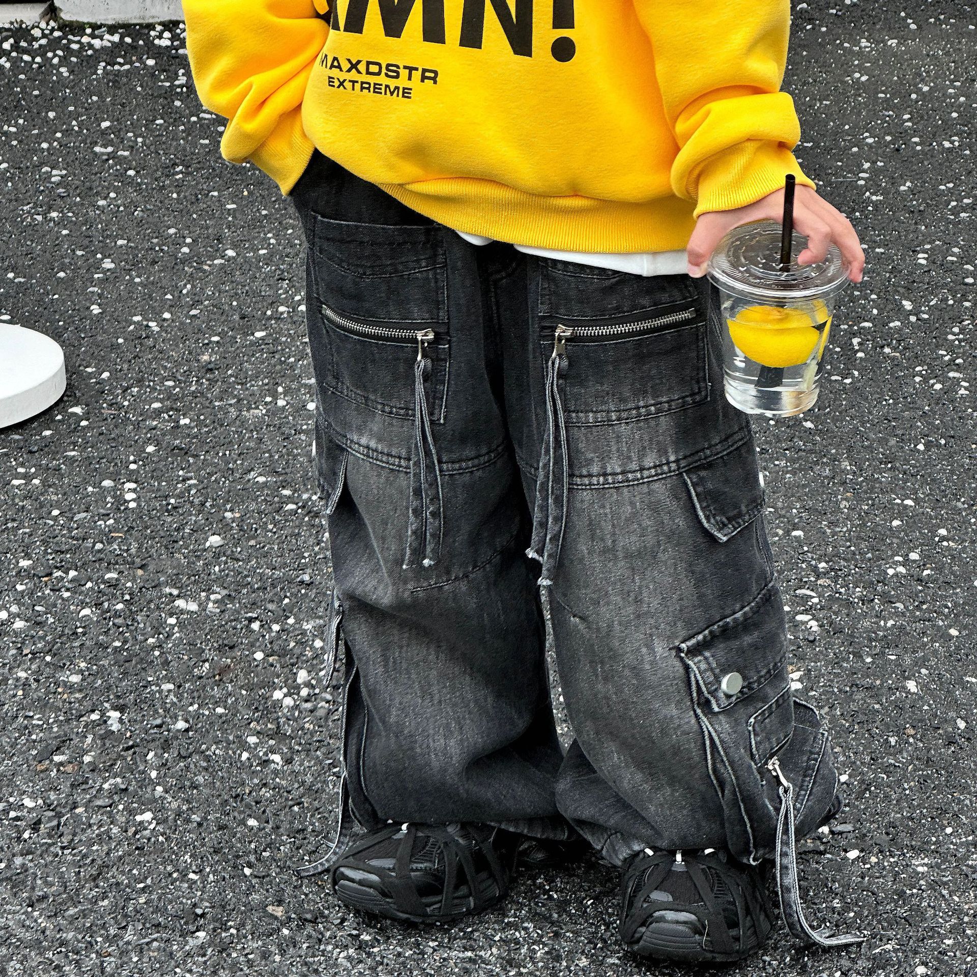泰如2024冬季新款韩版男童时尚百搭美式高街做旧加绒牛仔裤儿童潮