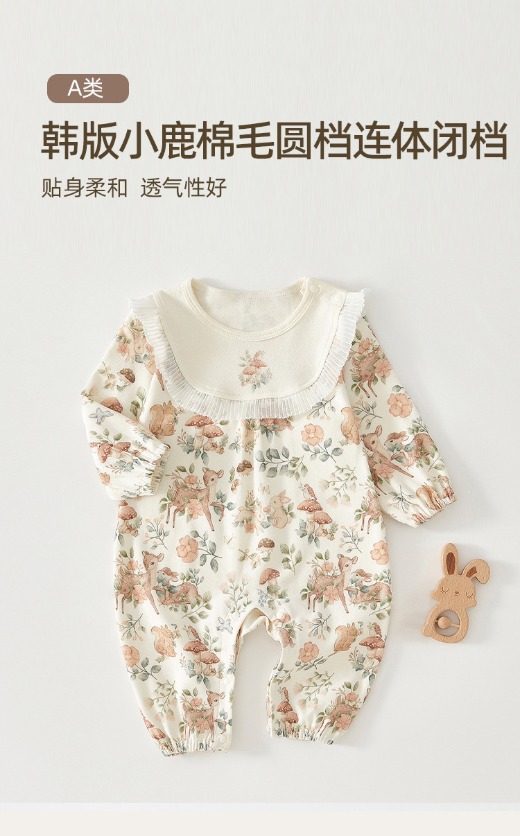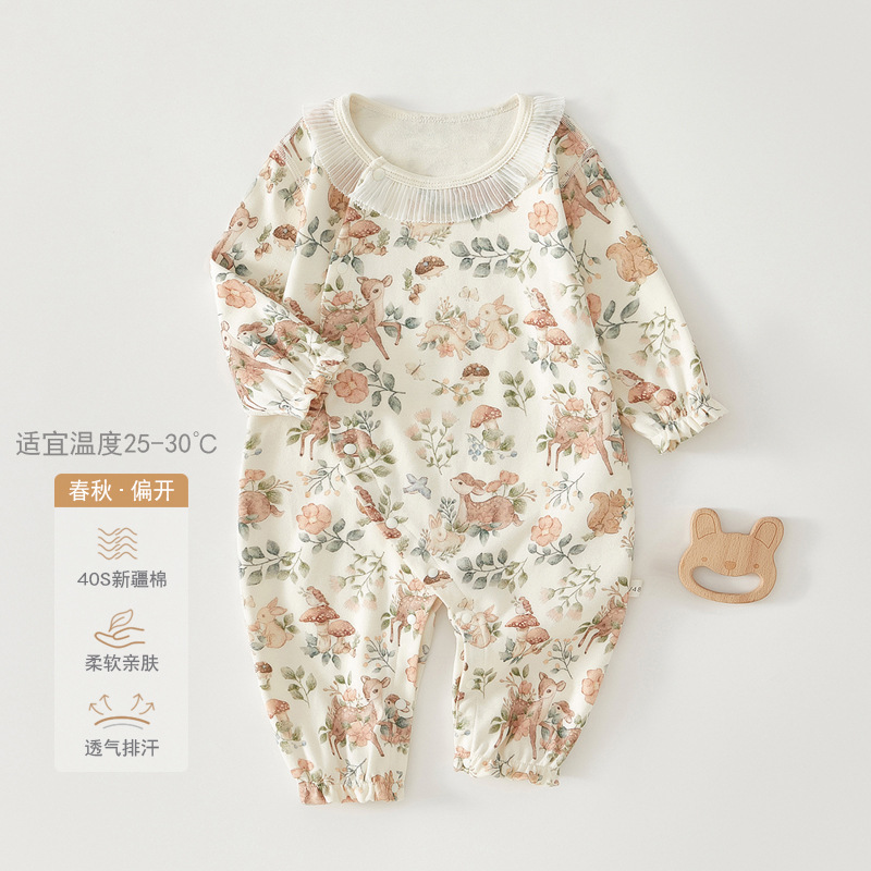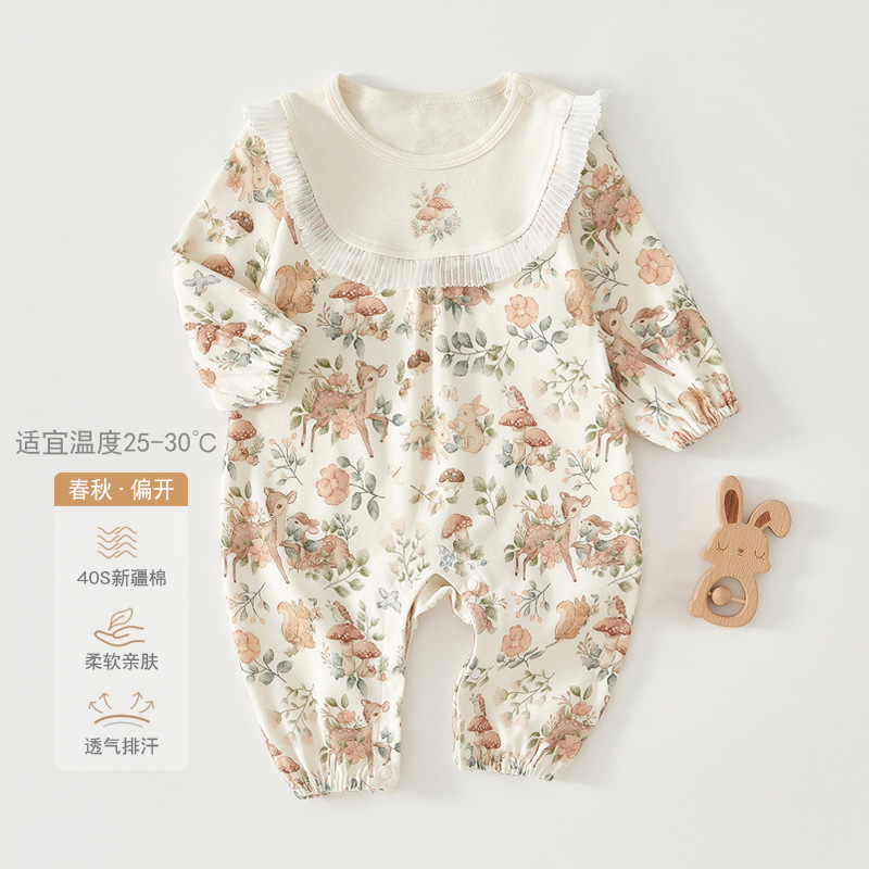 婴儿连体衣纯棉春秋款女宝宝碎花公主四季衣服新生儿月子服包屁衣