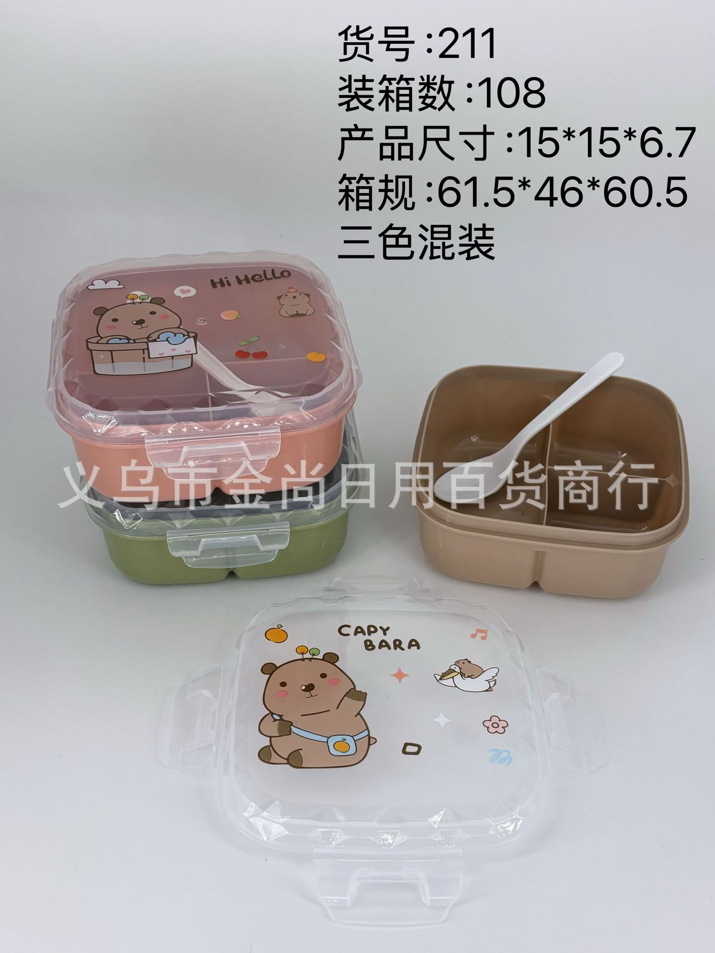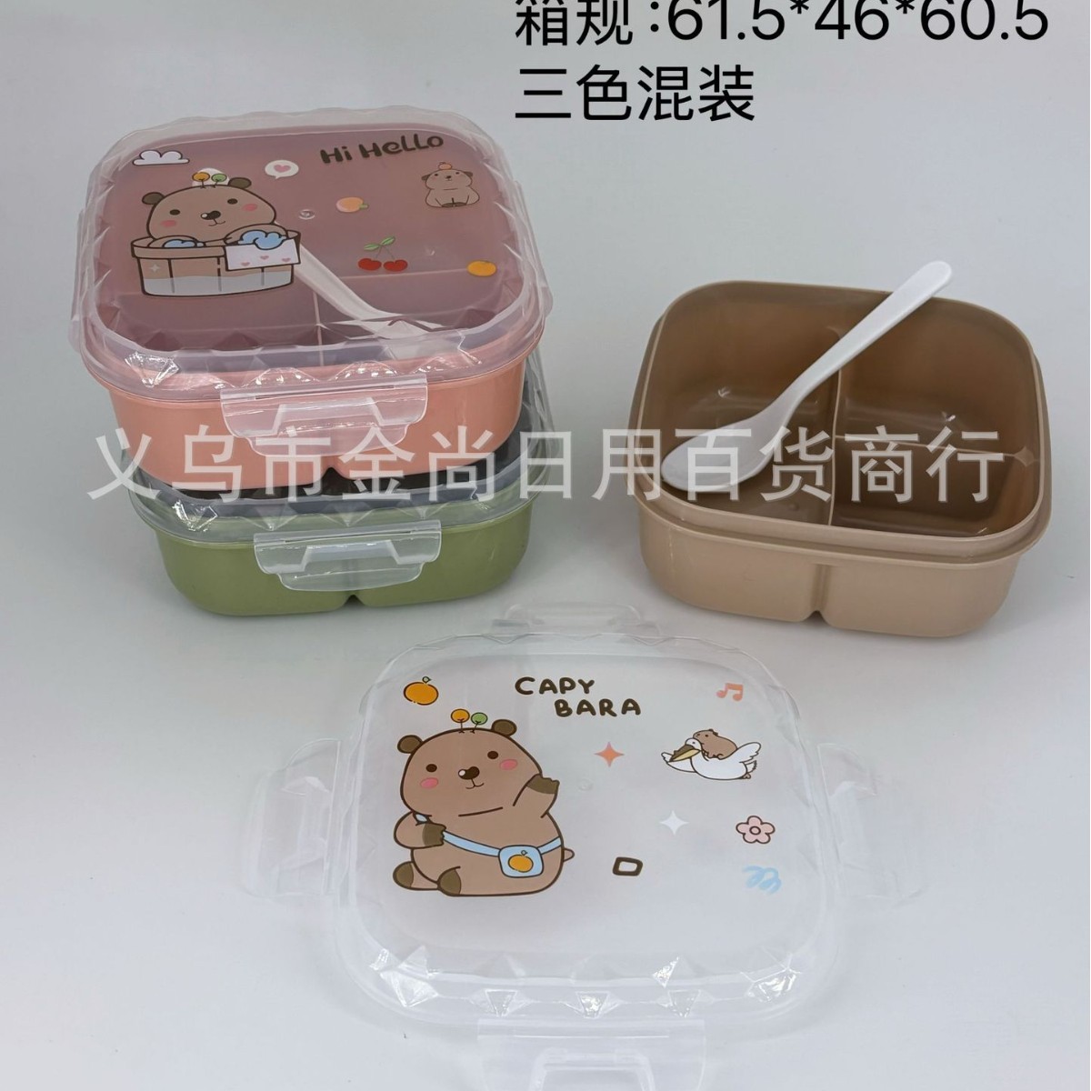 卡皮巴拉方形饭盒儿童饭盒大容量卡通可爱保温餐盒卡皮巴拉便当盒