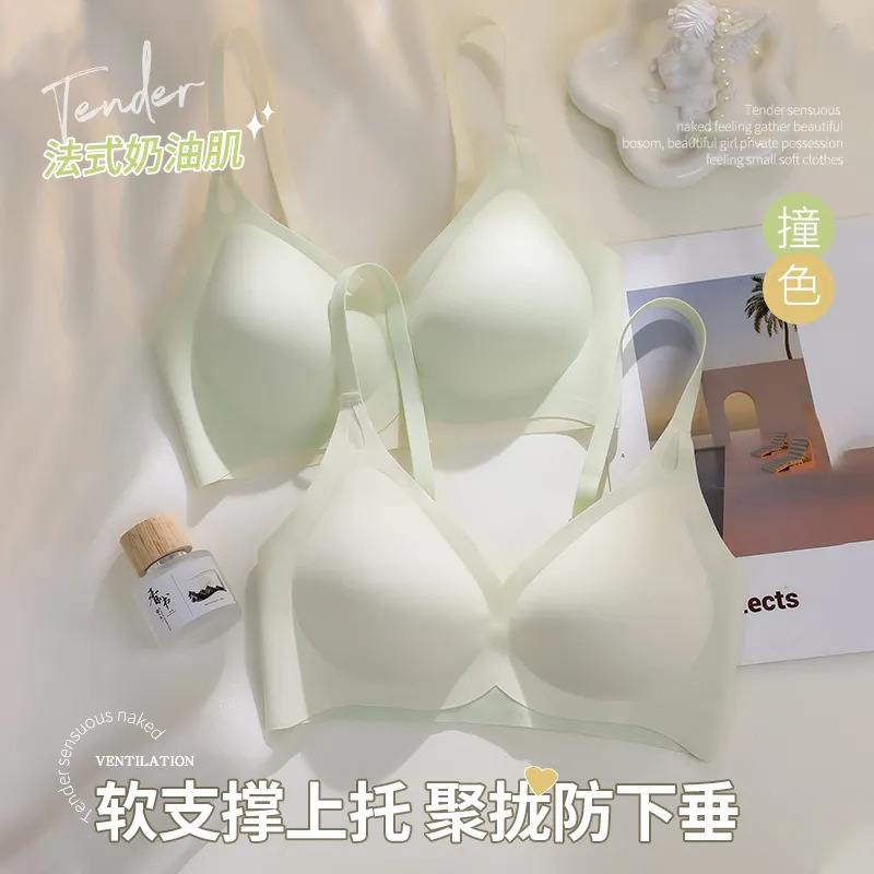 云朵无痕内衣女小胸上托聚拢透气防下垂无钢圈一片式薄款美背文胸
