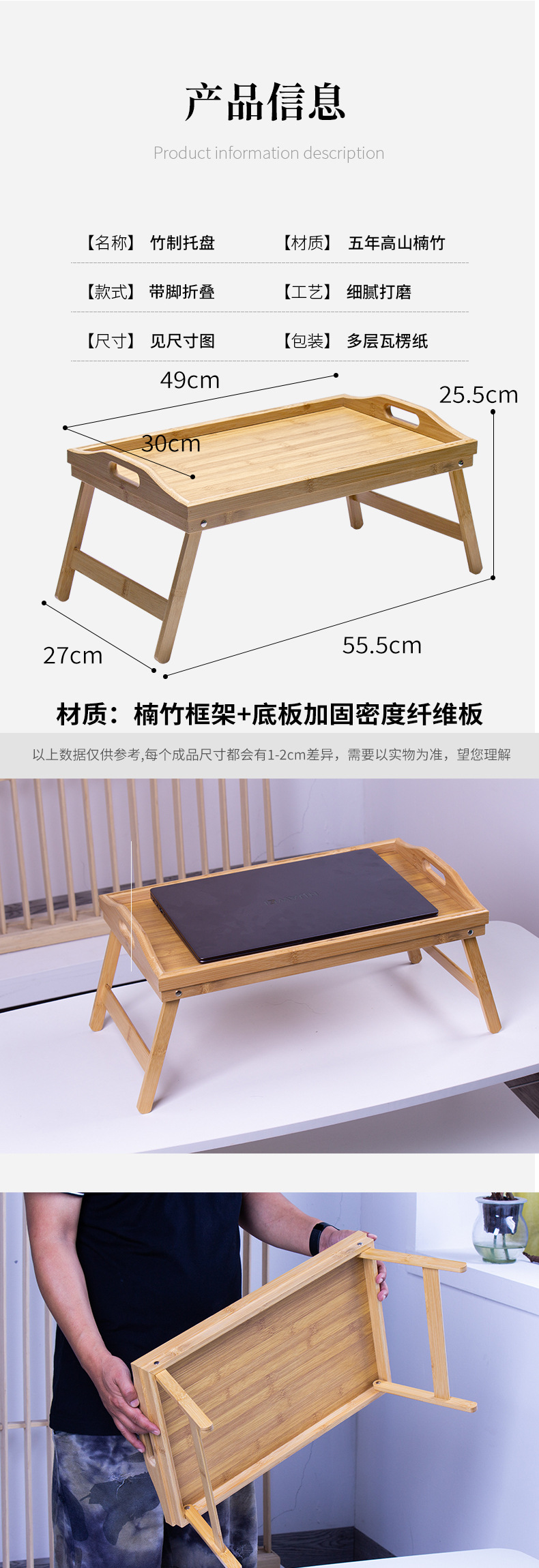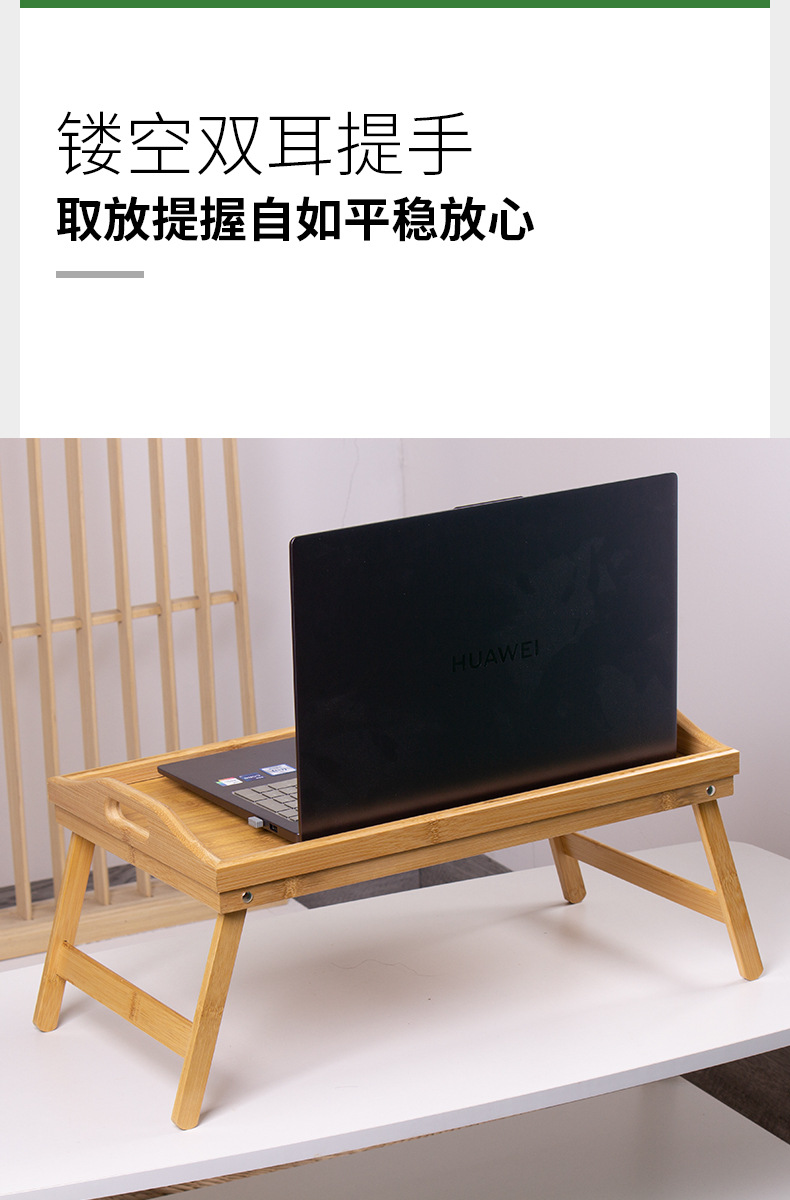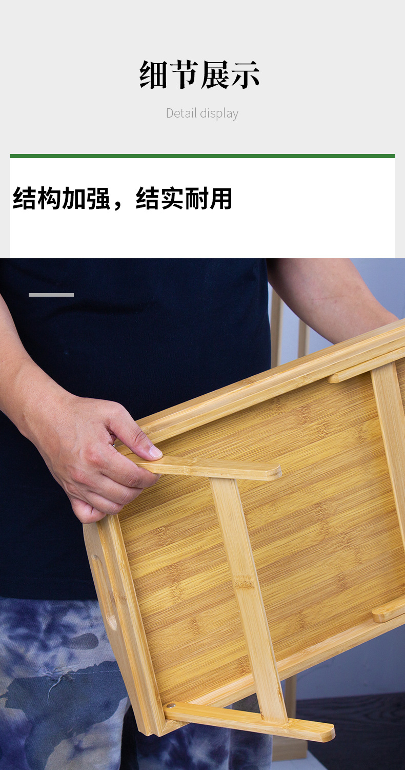 竹制带脚折叠茶盘简易早餐盘床上飘窗收纳懒人小桌子长方形竹托盘