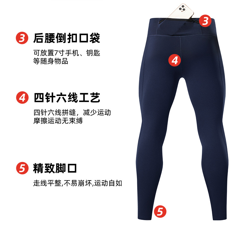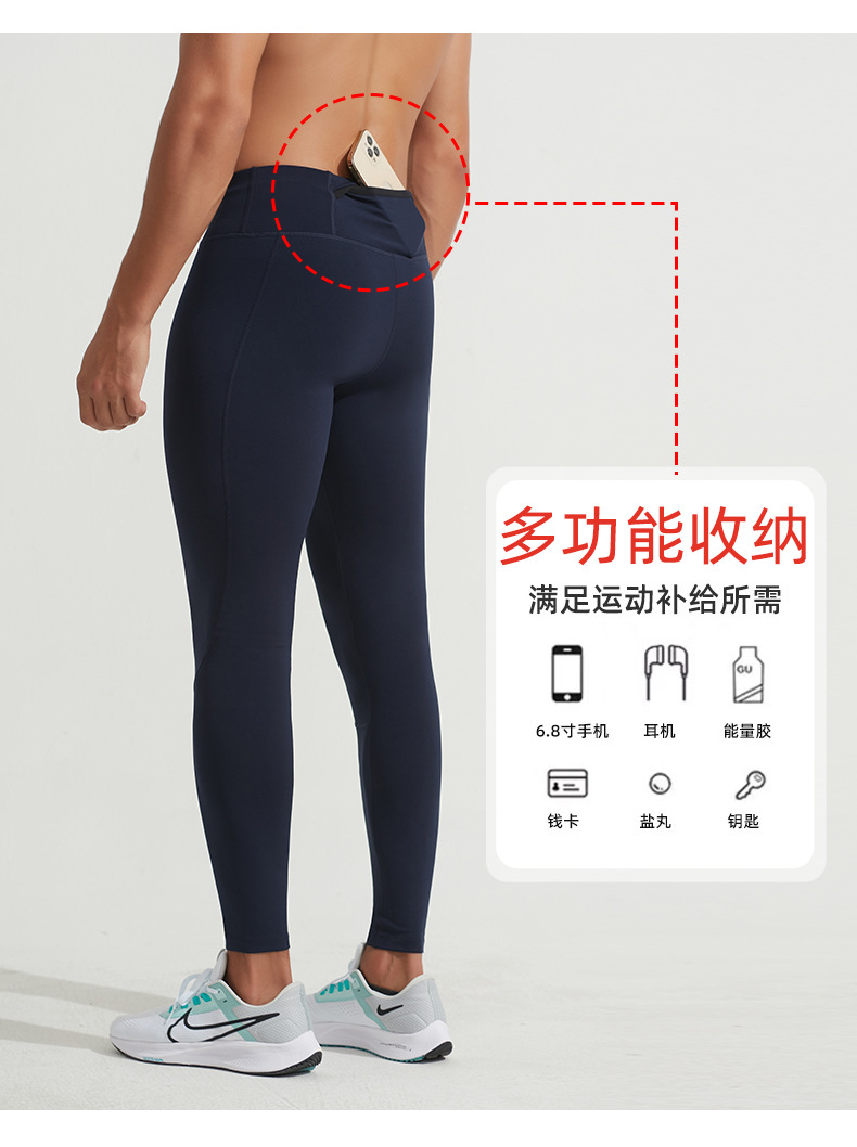 高弹篮球运动紧身裤男 后腰口袋速干压缩裤户外跑步训练健身长裤
