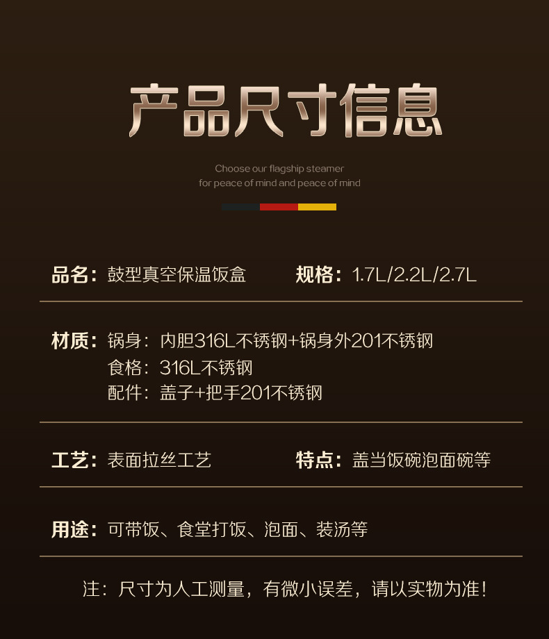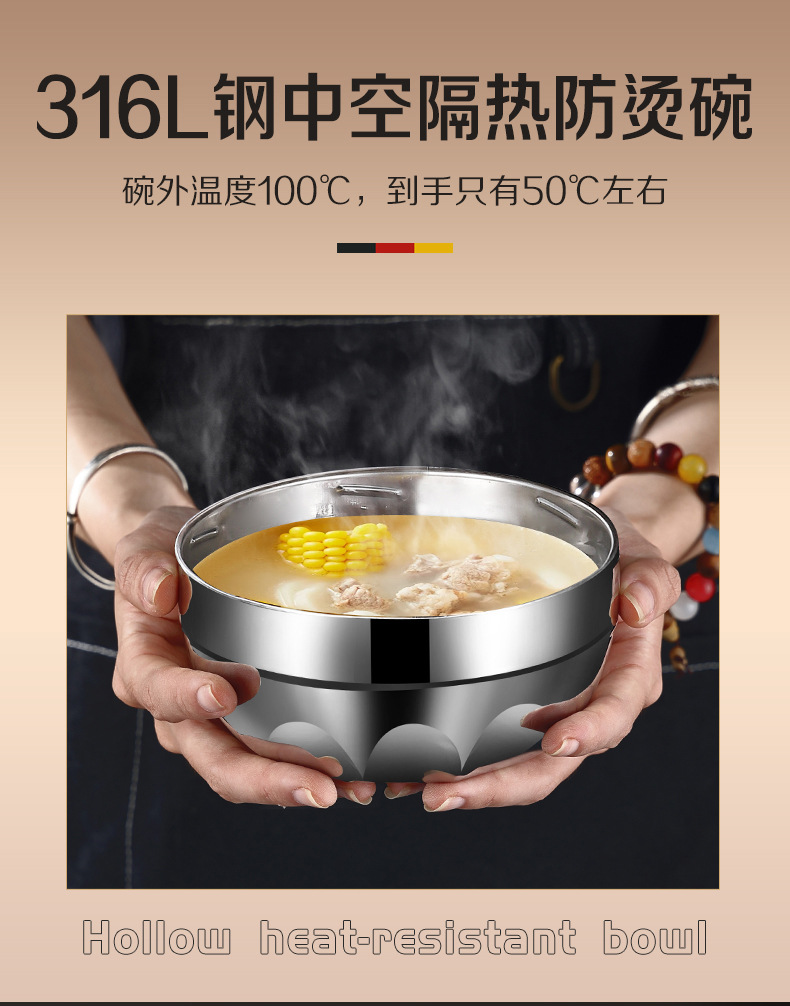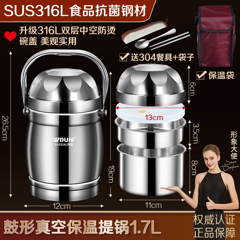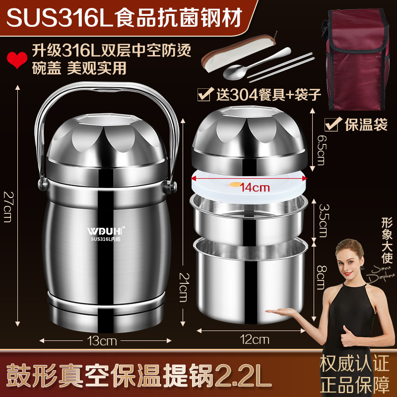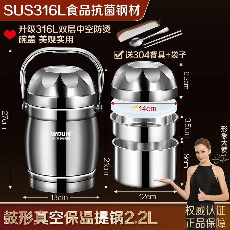 工厂直销316L不锈钢保温提锅鼓型真空饭桶大容量饭盒上班族便当盒