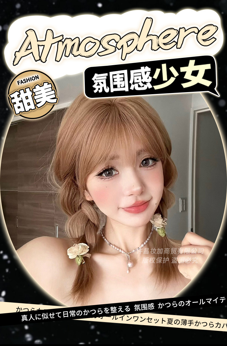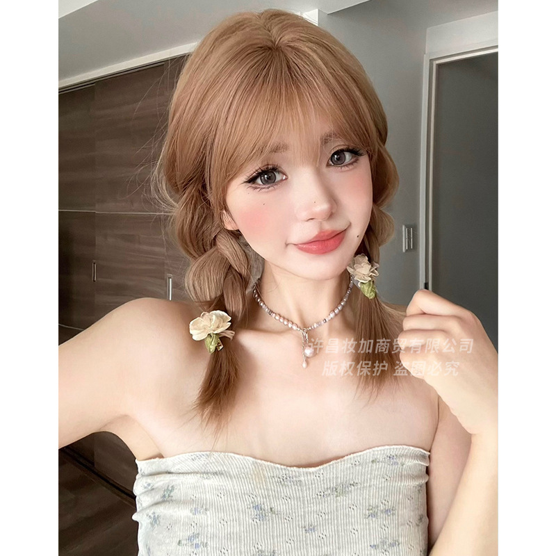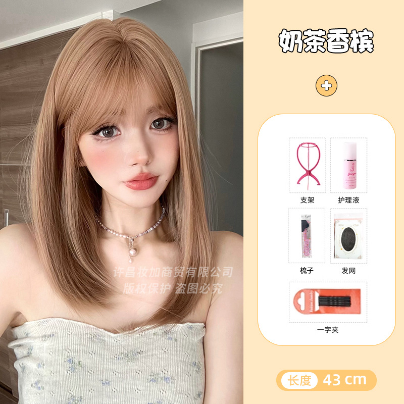 妆加假发新款女奶茶香槟色中长款直发修饰脸型网红自然日常假发