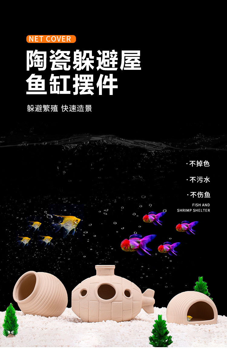 鱼缸造景繁殖罐水族箱装饰粗陶鱼虾异形躲避屋产卵罐繁殖陶罐摆件