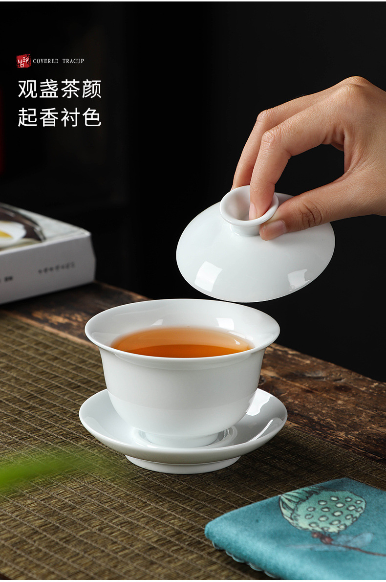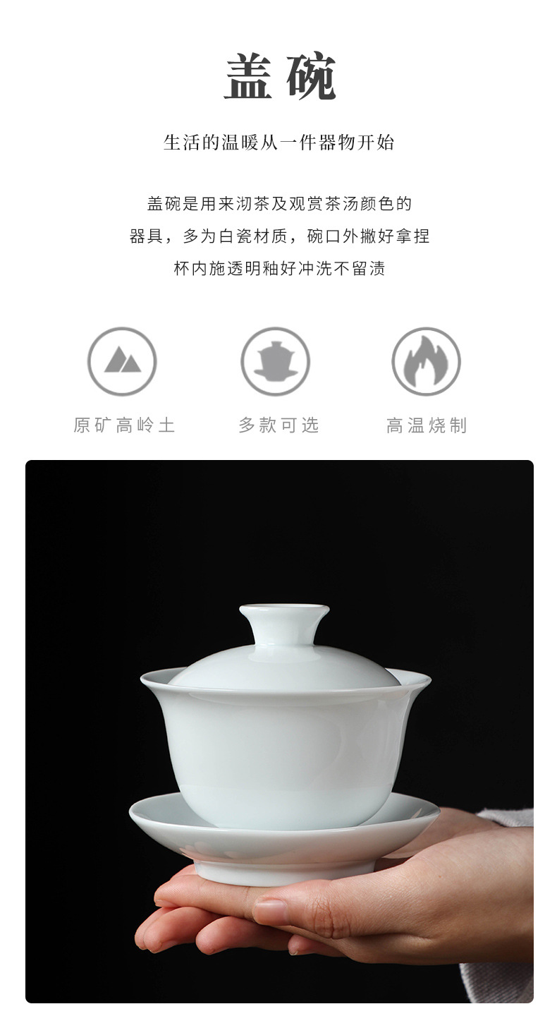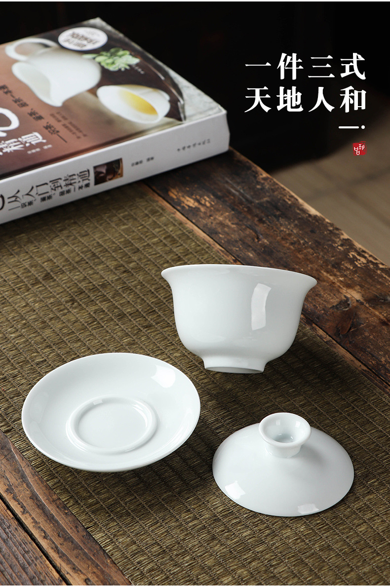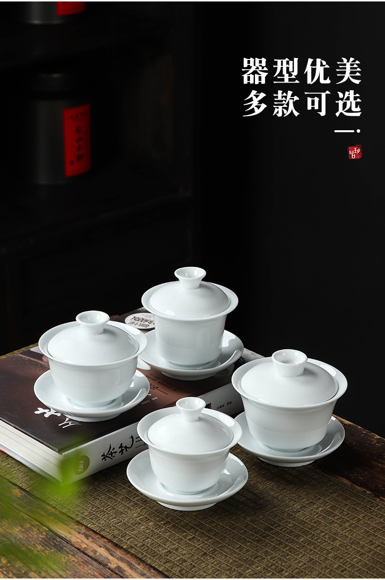 高白瓷三才盖碗羊脂玉瓷纯白大小号茶杯公司活动店铺开业LOGO礼品