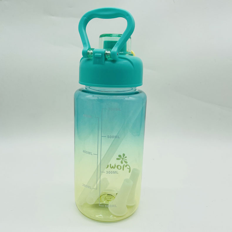 渐变色塑料杯四色水杯四季通用家用办公塑料杯吸管刻度杯直销批发
