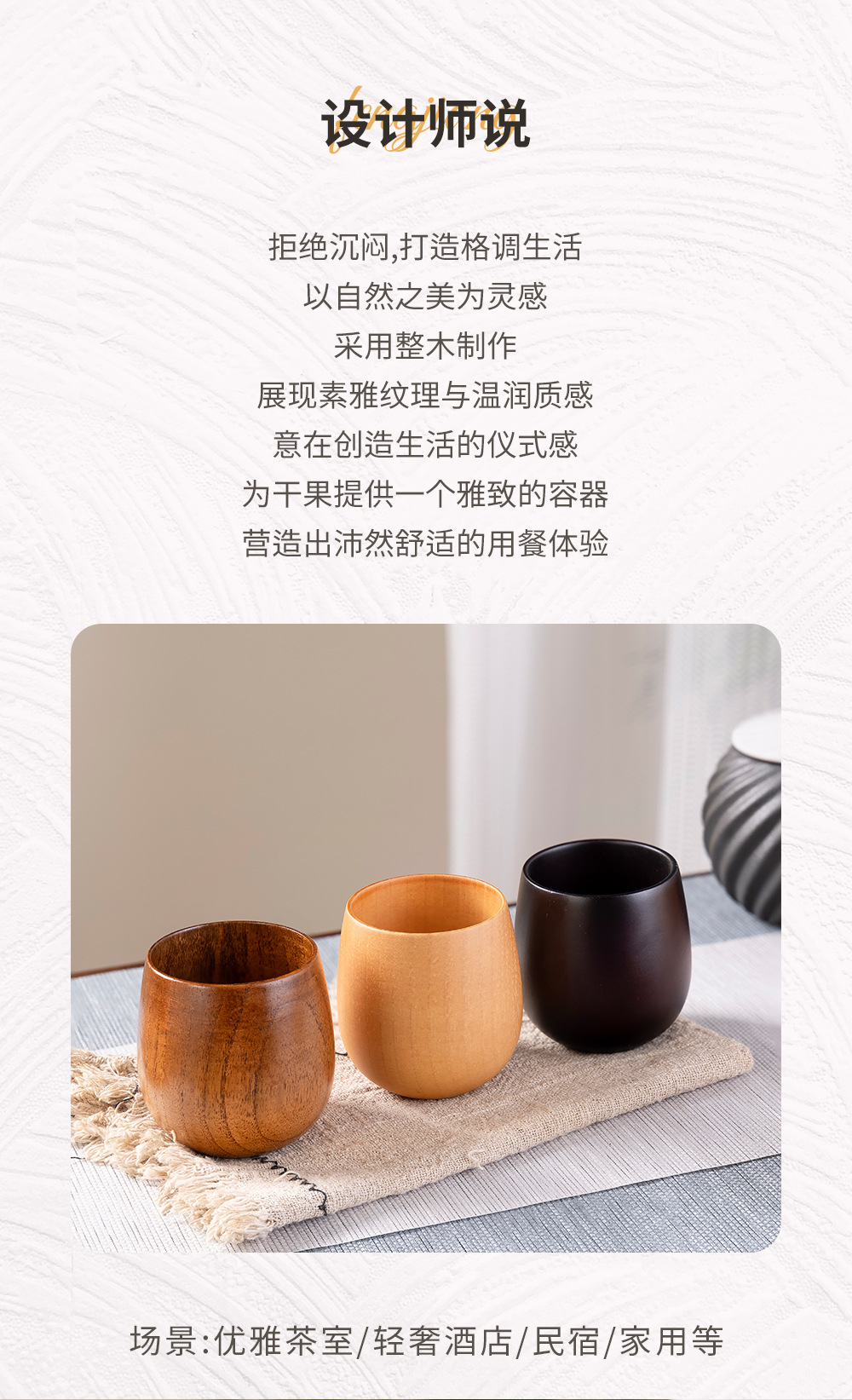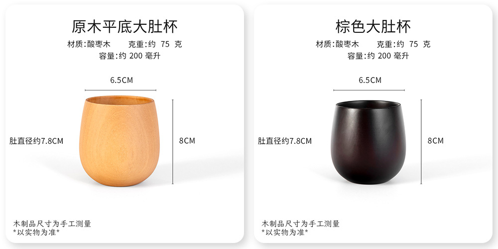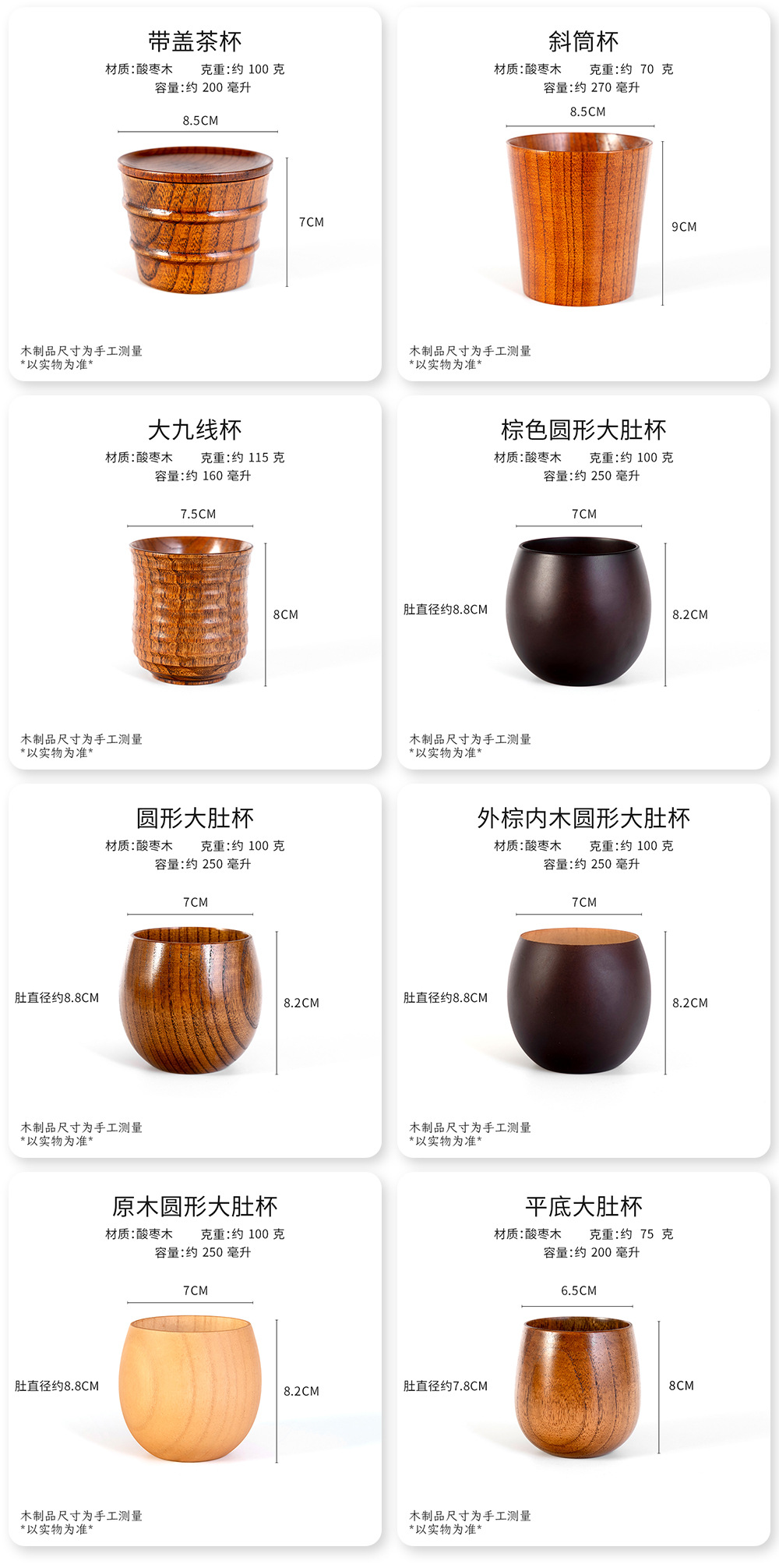 酸枣木大肚杯日式创意木杯实木防烫茶杯北欧木质杯子茶具厂家批发