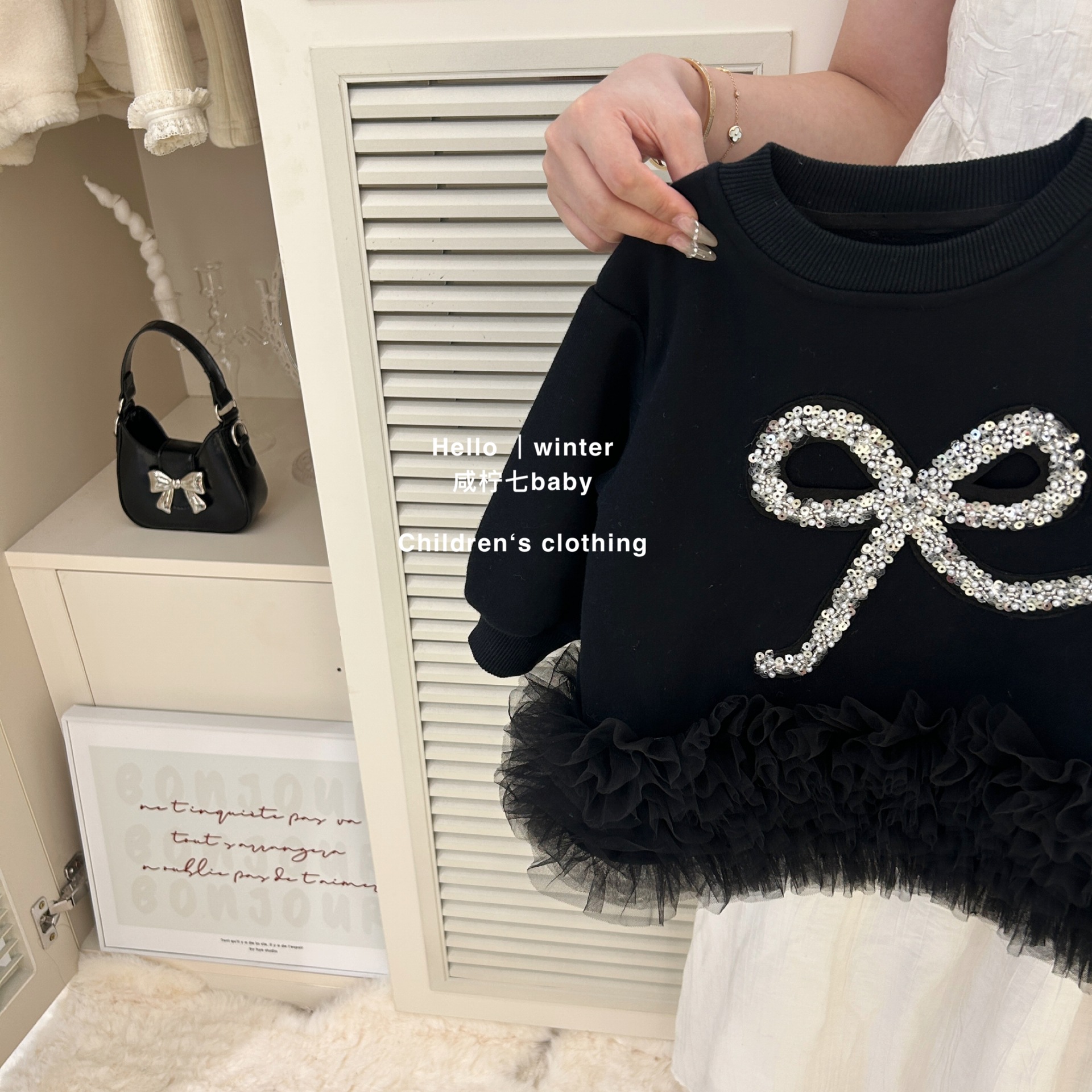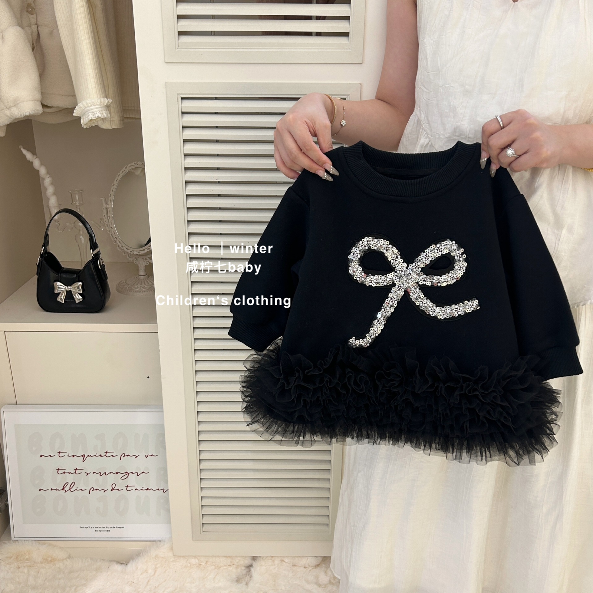 咸柠七原创儿童卫衣24秋季新款女童拼接纱裙加绒连衣裙宝宝韩版