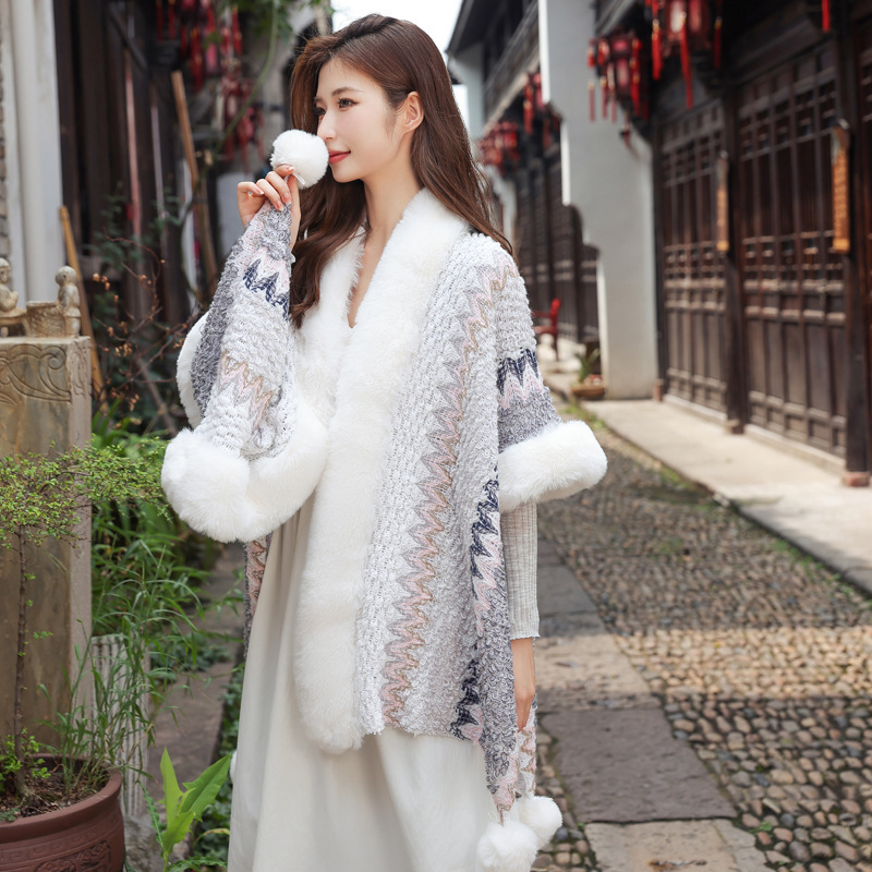 云南丽江旅游外搭针织披肩民族风复古斗篷披风流苏围巾度假穿搭
