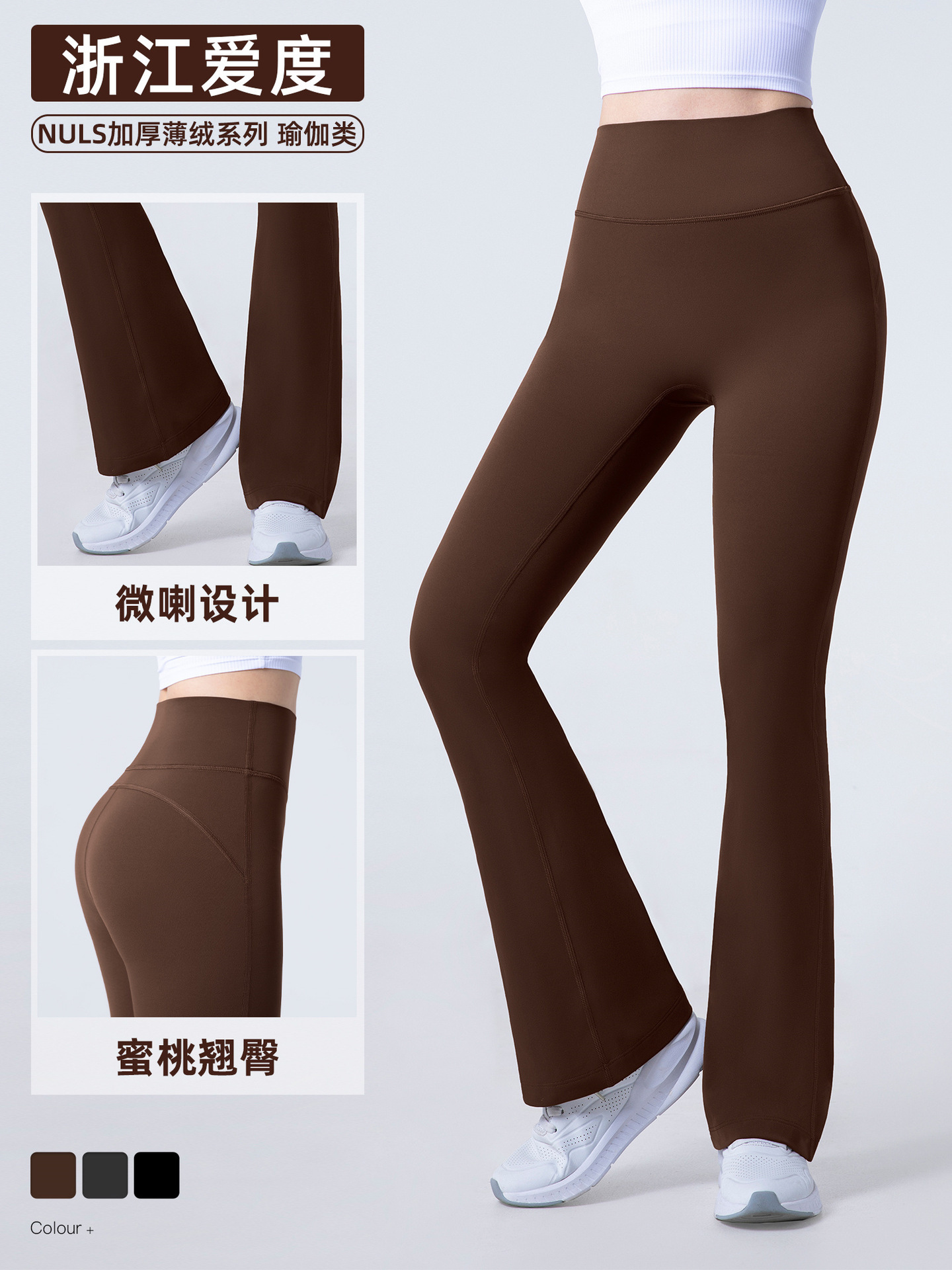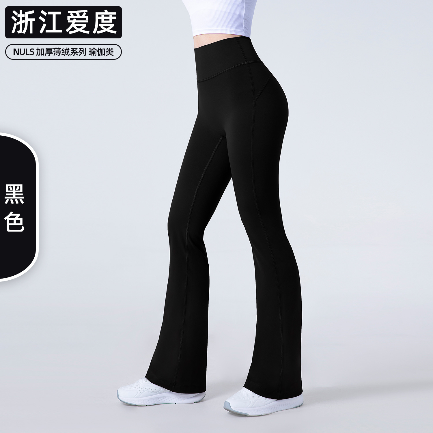 秋冬加厚薄绒恒温瑜伽裤裸感高腰收腹喇叭裤蜜桃臀显瘦修身运动裤