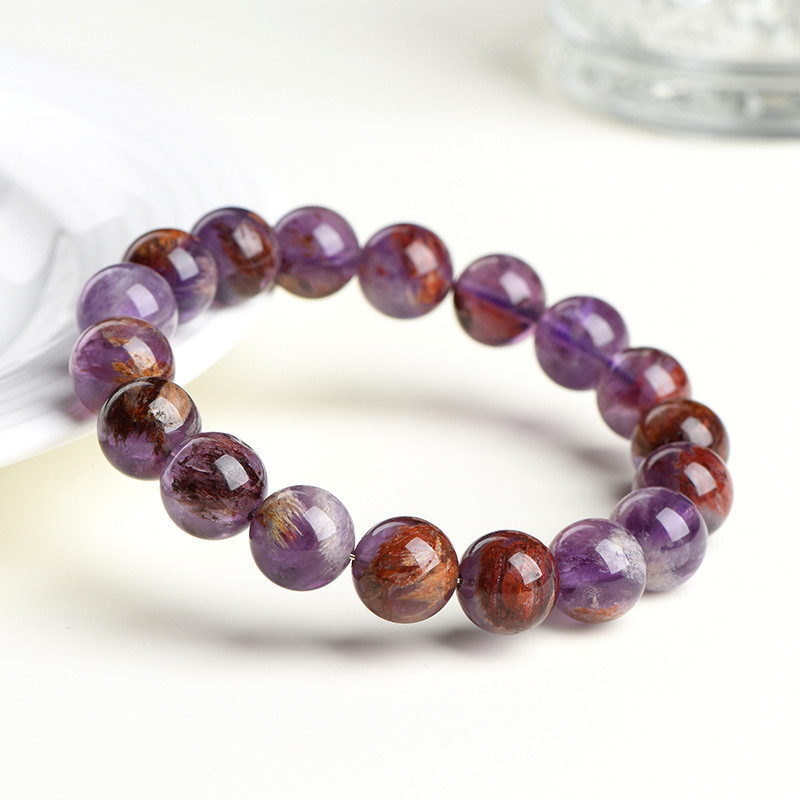 久雅水晶 天然紫幽灵手串 能量款时尚紫色极光手链 厂家直销